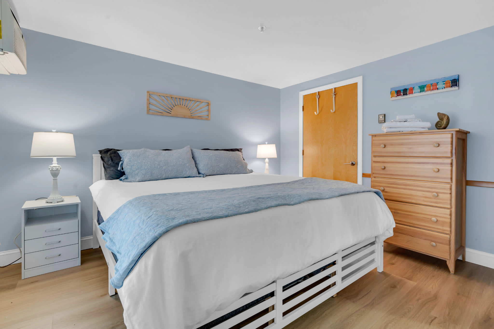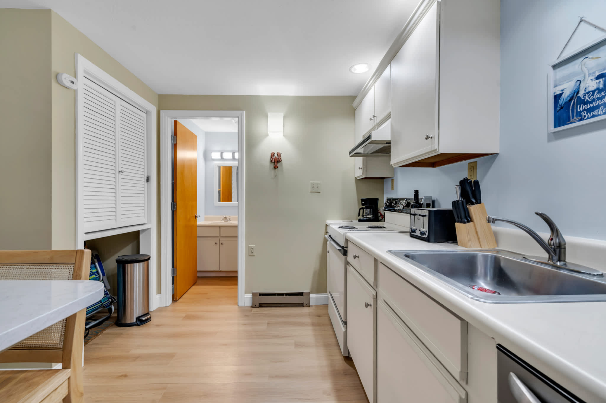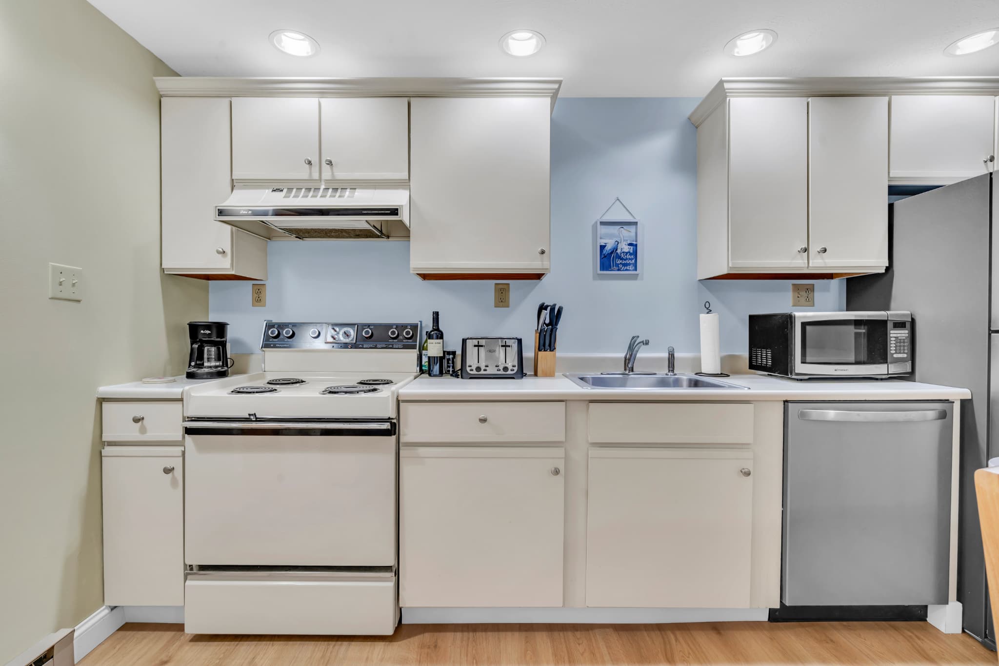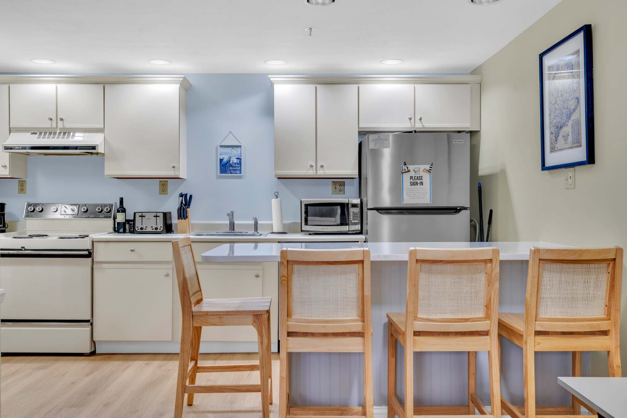 The home’s coastal charm blended with the comfortable furnishings and thoughtful décor creates an inviting seaside atmosphere. Curl up on the plush living room sofa as you stream a new movie or episodes of your favorite show on the smart TV. The fully equipped kitchen offers ample counterspace and cabinetry for meal preparation and storage. Vacation is also the perfect excuse to allow others to do the cooking and cleaning up, and with an abundance of delicious local restaurants to choose from, there will something new to try every day! The Keurig coffee maker will be your first stop in the morning, afterward taking your fresh cup onto the balcony to relax in the fresh air.