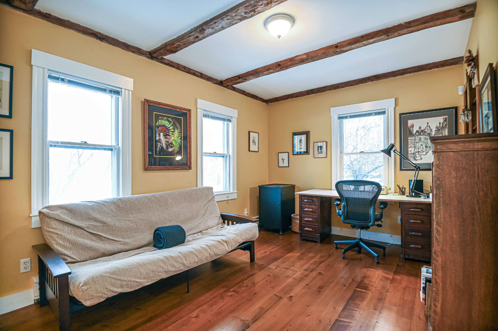 Bedroom #1 includes a queen futon and a dedicated workspace with desk and chair.