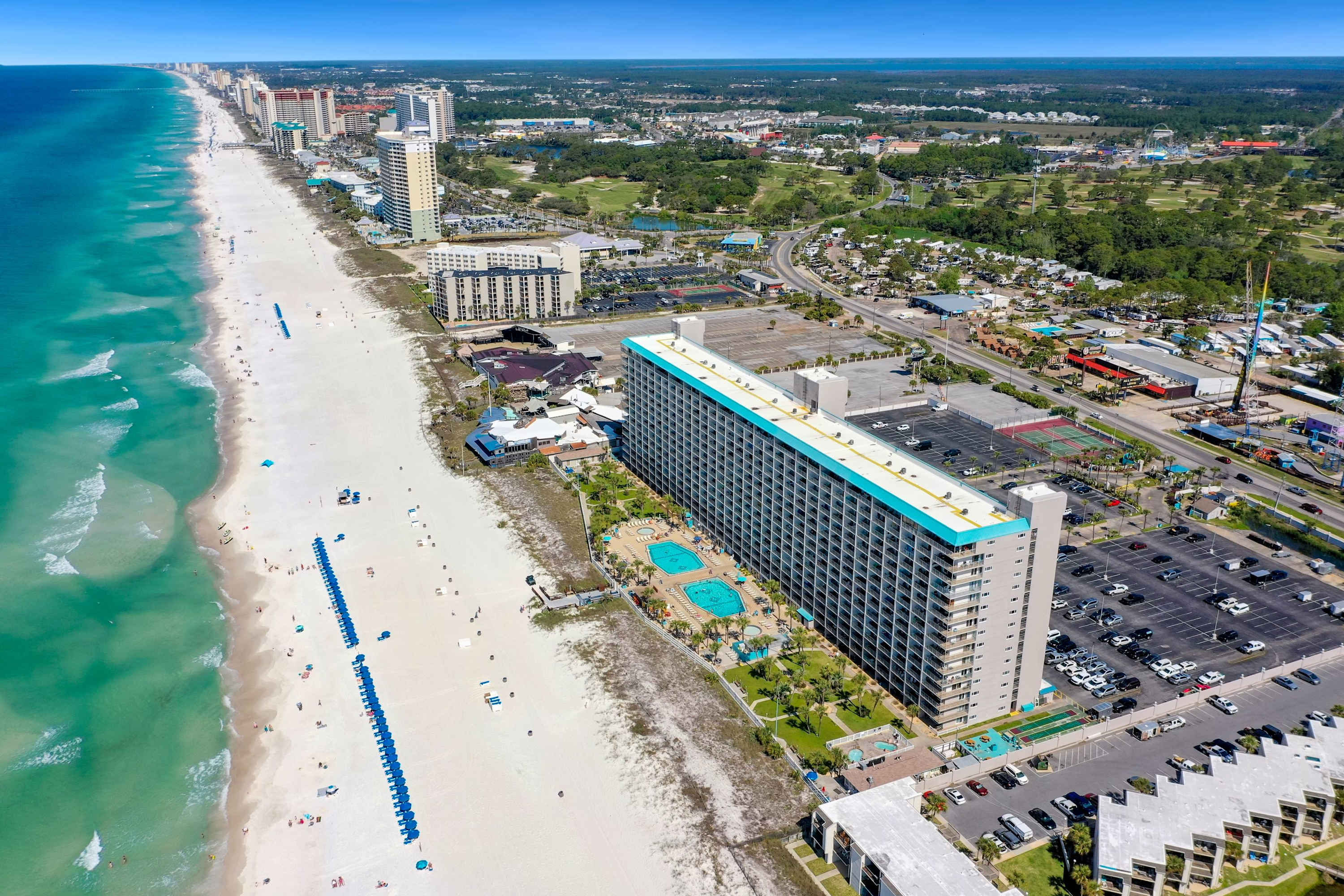 Located in the heart of the Florida Panhandle, Panama City Beach is a popular vacation destination and it’s easy to see why. With more than 27 miles of coastline, PCB is known for its white, sandy beaches and stunning ocean views. Life is organized around the unbeatable beaches with delicious food, inspired shopping, and live entertainment up and down the coast. There is something for everyone in your group to enjoy from PCB’s 4 championship golf courses to the weekly Grand Lagoon Waterfront Farmers Market and epic chartered fishing trips.
