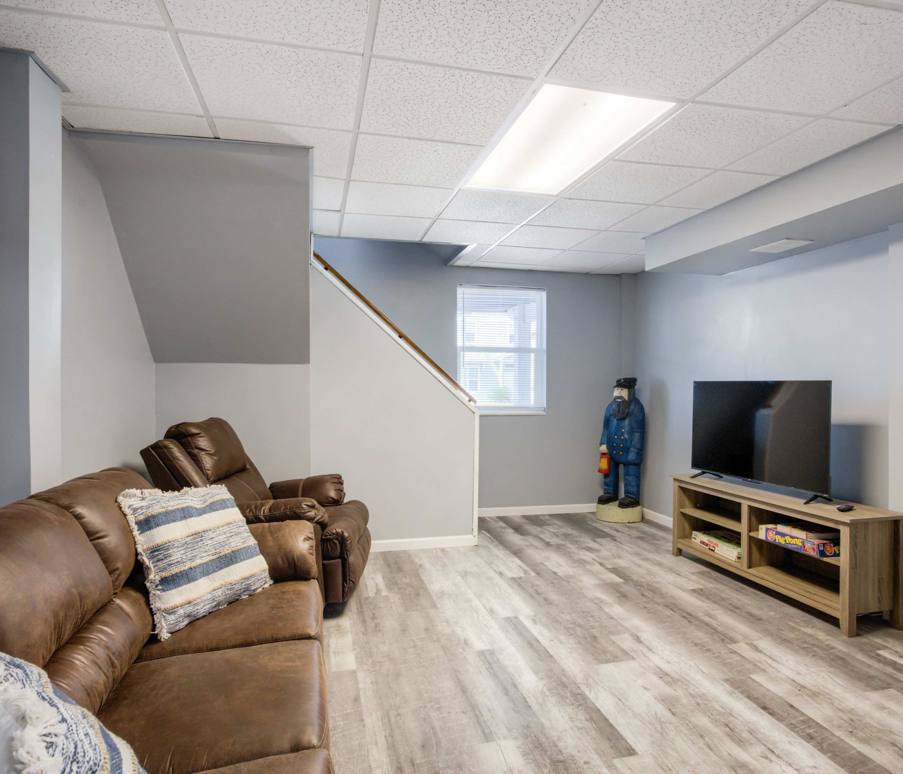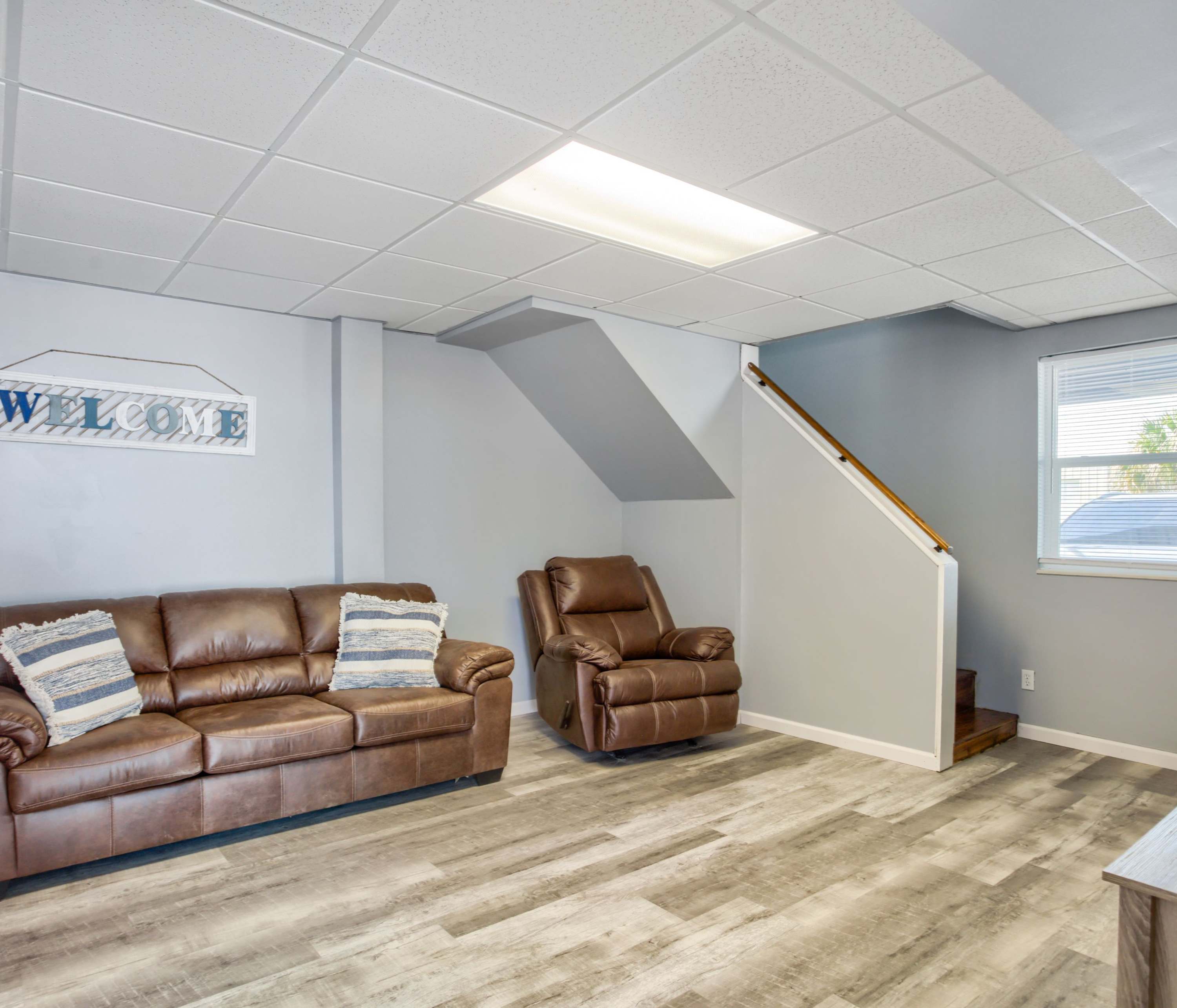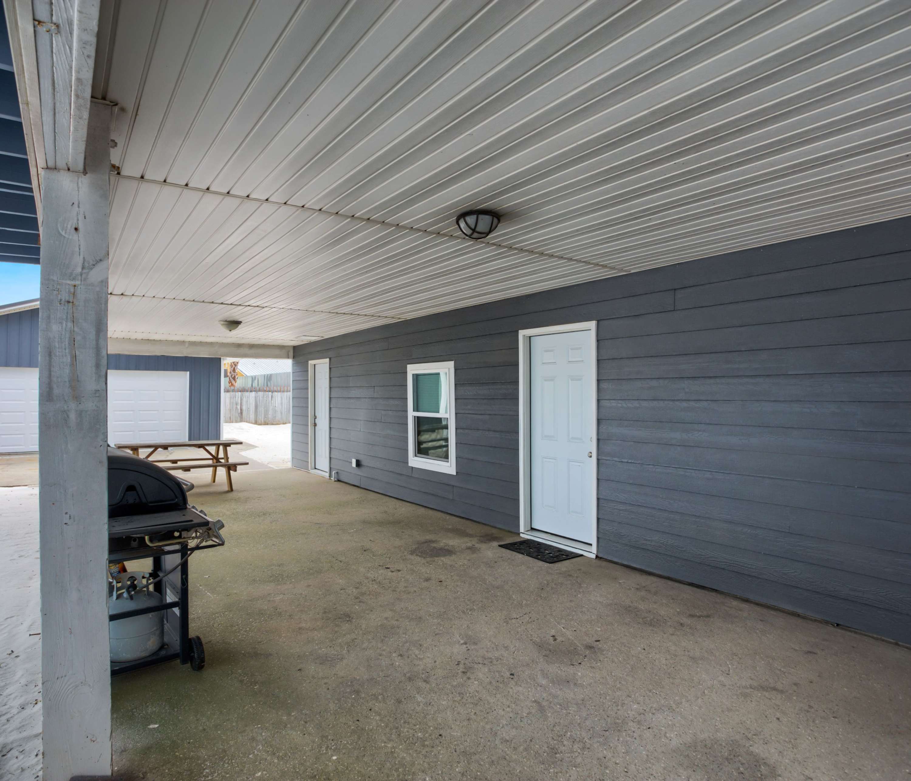 Relax with your crew in the living room featuring comfortable seating and a smart TV, while the lucky chef gets to enjoy working their magic in the adjacent kitchen. This home is fully equipped for all culinary needs - from stainless steel appliances to coffee maker and cookware – ensuring an effortless preparation of beachside picnics or family-style meals to share at the dining table. And don't forget about movie nights either; snuggle up around another smart TV downstairs on cozy couches. Finish off your days outside under sunset skies at our ground-level patio equipped with grill and picnic table—perfect for BBQs and al fresco meals!