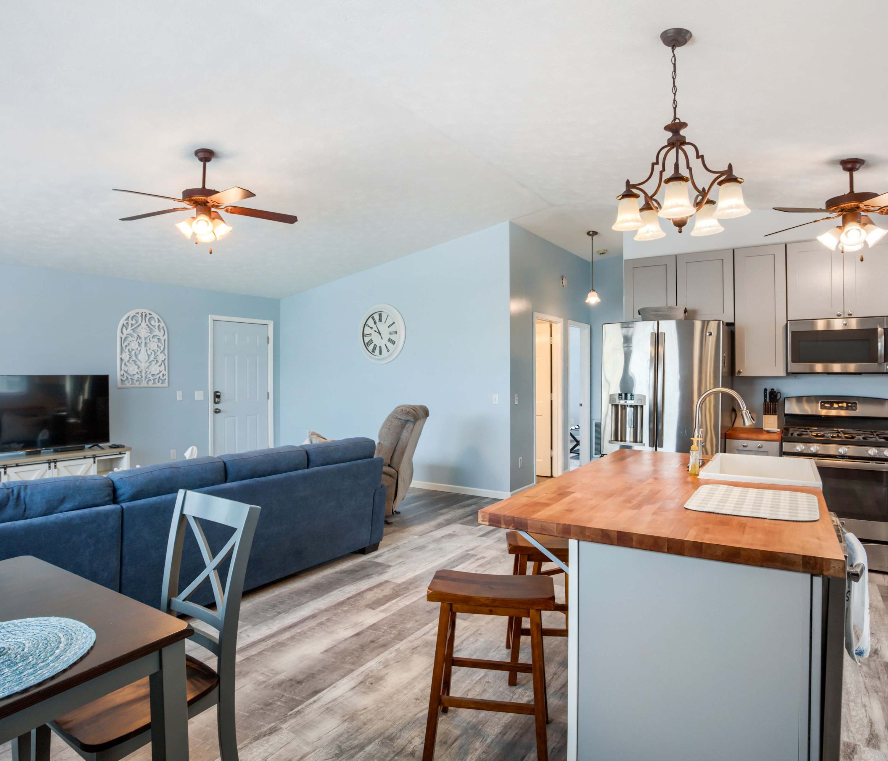 This home sleeps 8 guests between 3 private bedrooms and a full size sleeper sofa.