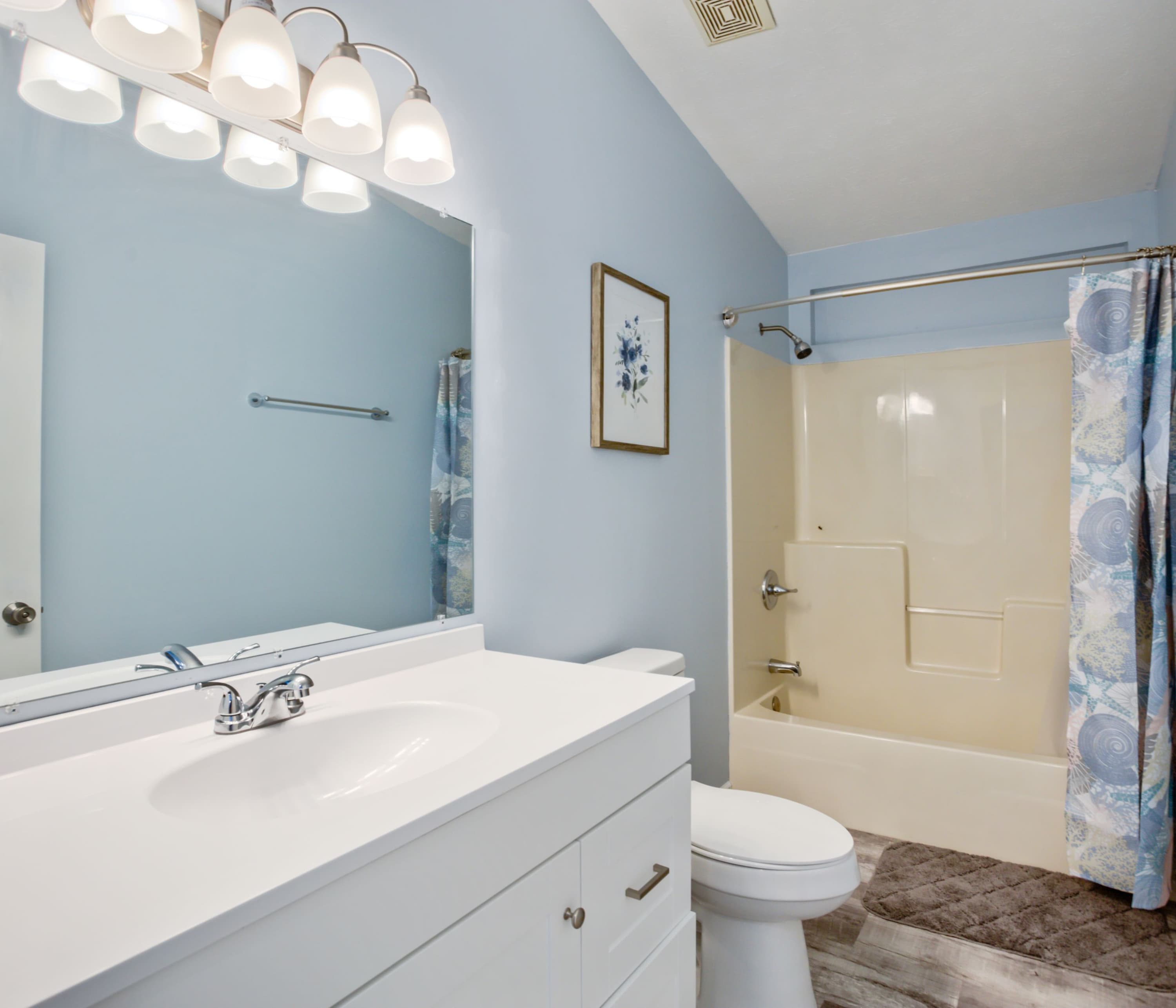 - The home has an additional bathroom with shower/tub combo.