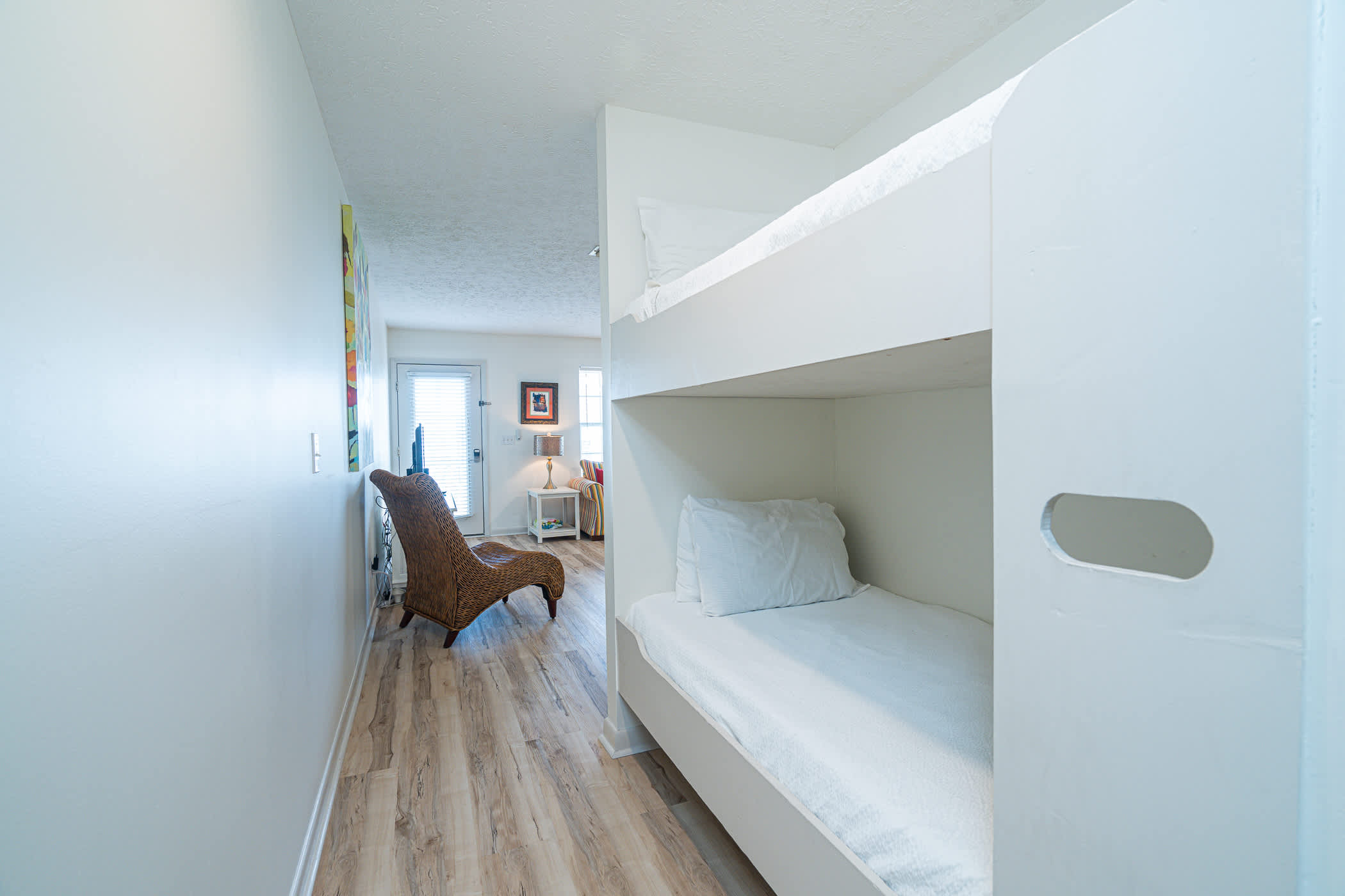 A kid-friendly home for 6, the hallway features a bright, colorful bunk bed for the little ones. Bedroom #1 comes with a king-size bed and shared bathroom that is updated too!