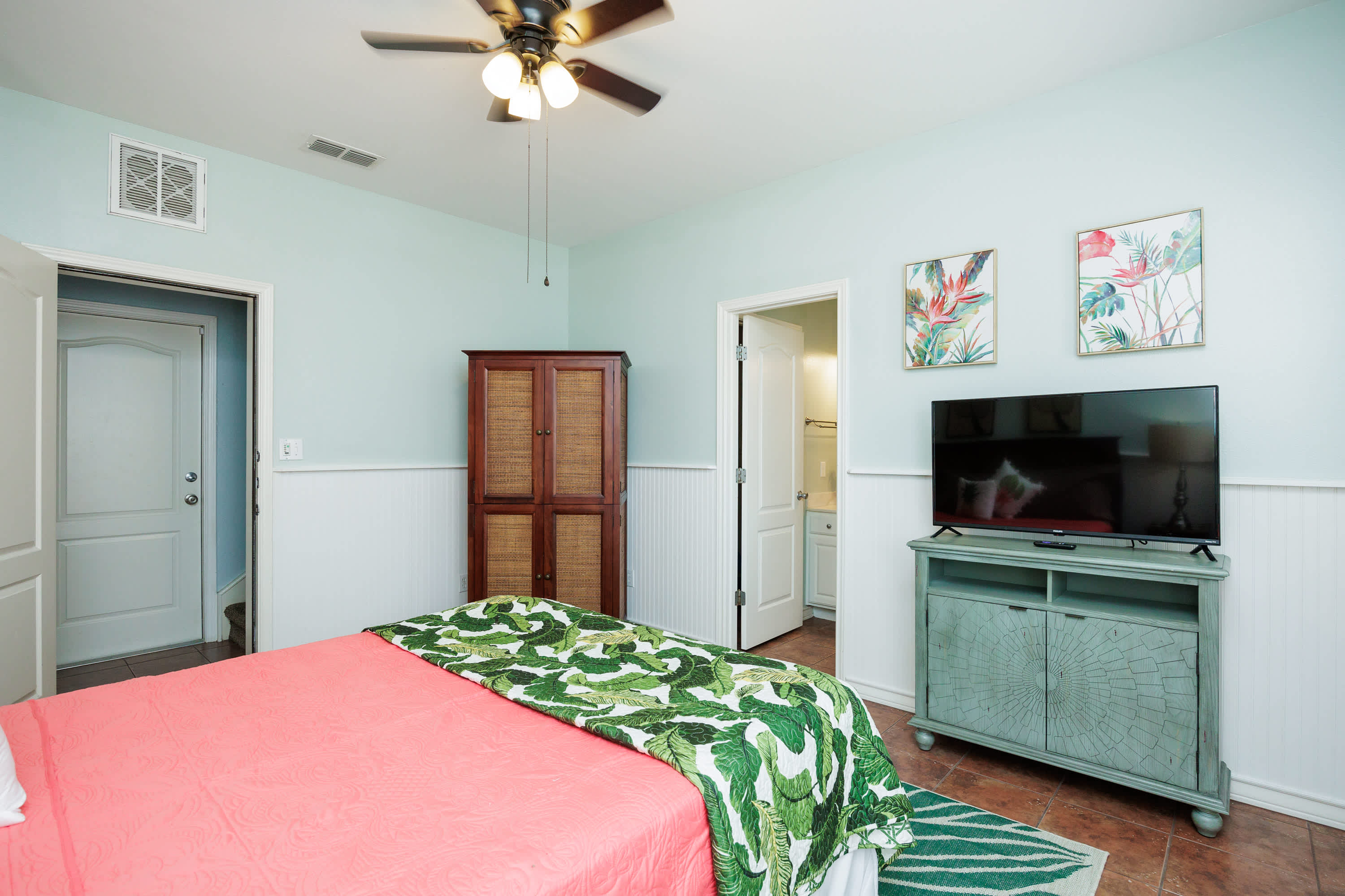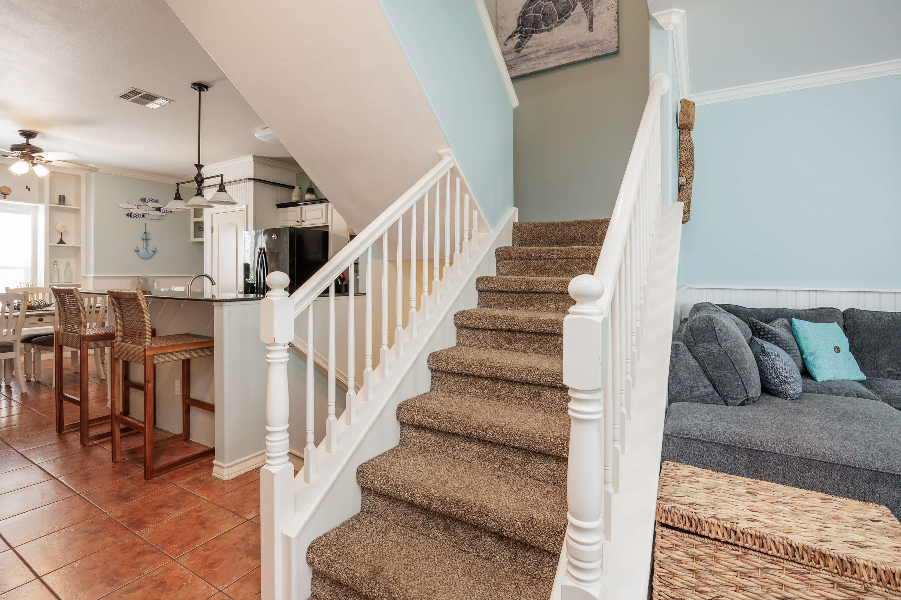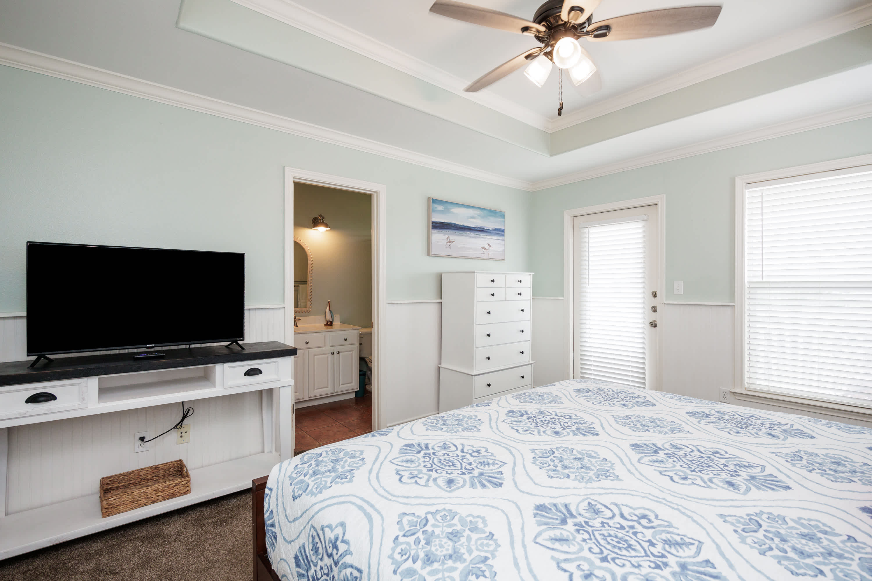 At the home, you’ll be within walking distance of the sandy beaches and sparkling waters of the Texas Gulf and the North Padre Island Seawall. For cooling off a little closer, the complex’s outdoor pool is a tropical oasis, enveloped by palm trees inviting you to feel the refreshing breeze while you take a dip or stretch out in one of the loungers. Dining and shopping are just a stone’s throw away from your front door, and you can opt to explore by foot or via the included, optional 6-person golf cart.