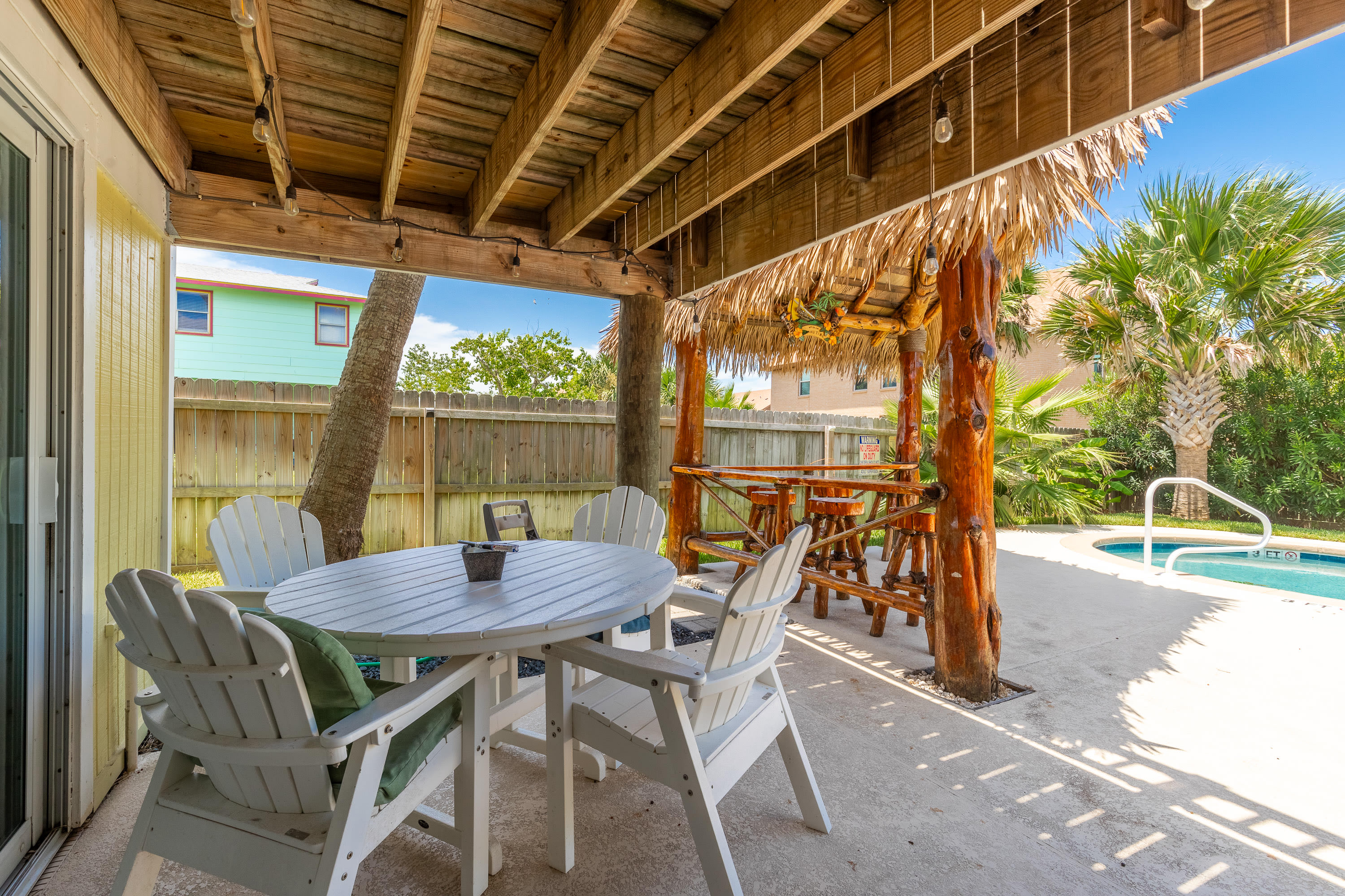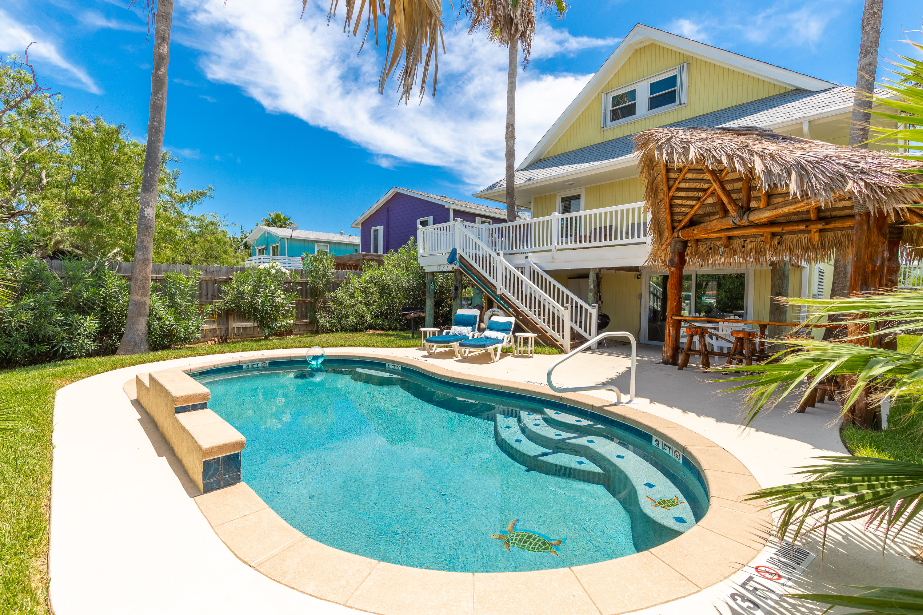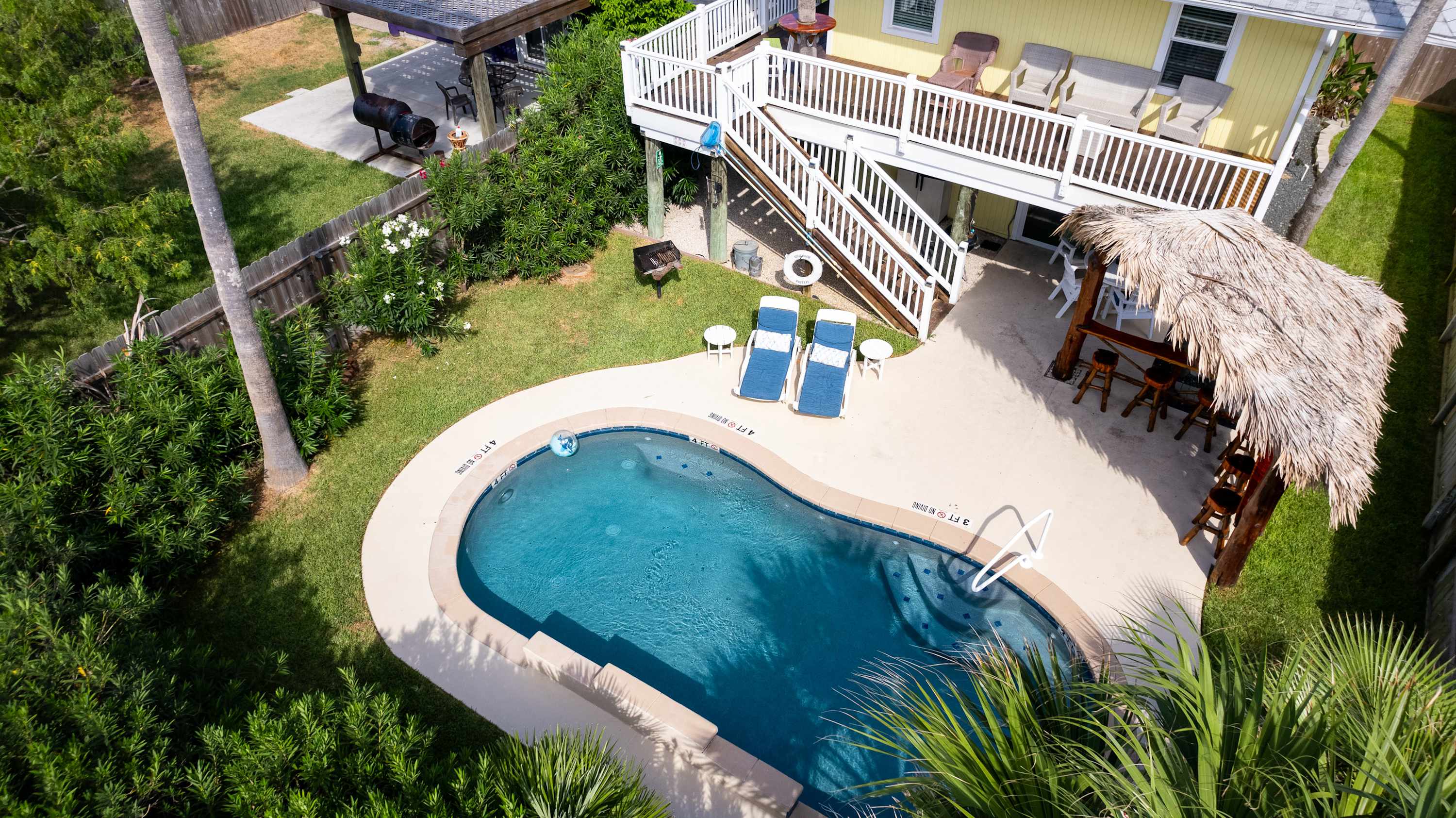 What more could you ask for? The Shell House is the quintessential beach retreat, offering everything you could possibly need to create the vacation of your dreams. Spend endless hours basking in the warm Texas sun, whether you pack up and head out for a day on the beach, or lounge poolside with the relief of air conditioning just steps away. The spacious patio is surrounded by lush landscaping and includes a fun, shaded palapa with barstool seating, ideal for those moments when you want to enjoy an afternoon cocktail and listen to some music. If you’d rather watch the festivities from afar, the home’s wraparound deck provides you with ample views of the pool and the area beyond, complete with relaxed seating options. Apart from being close to the beach, you’ll also be within walking distance of several restaurants, bars, and shops. A leisurely stroll through the neighborhood sounds like just the thing to cap off a fun-filled day.