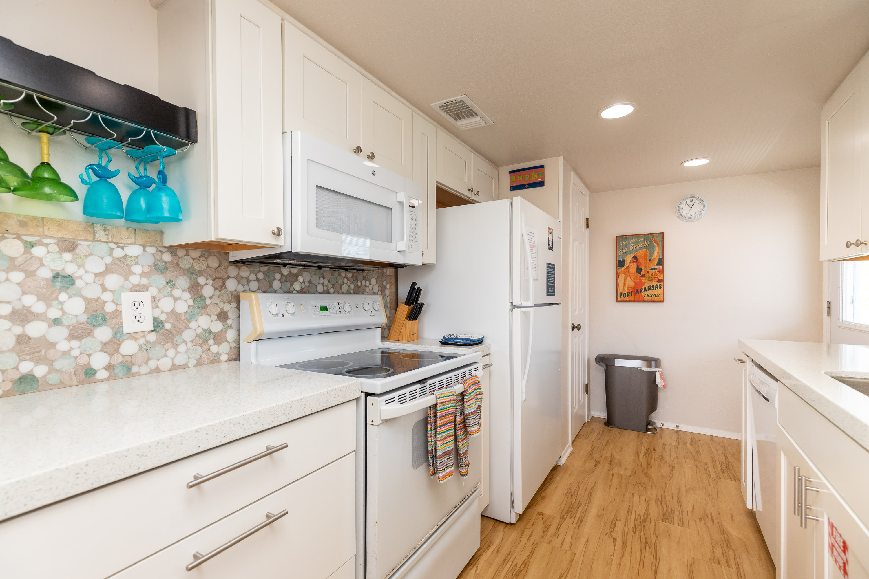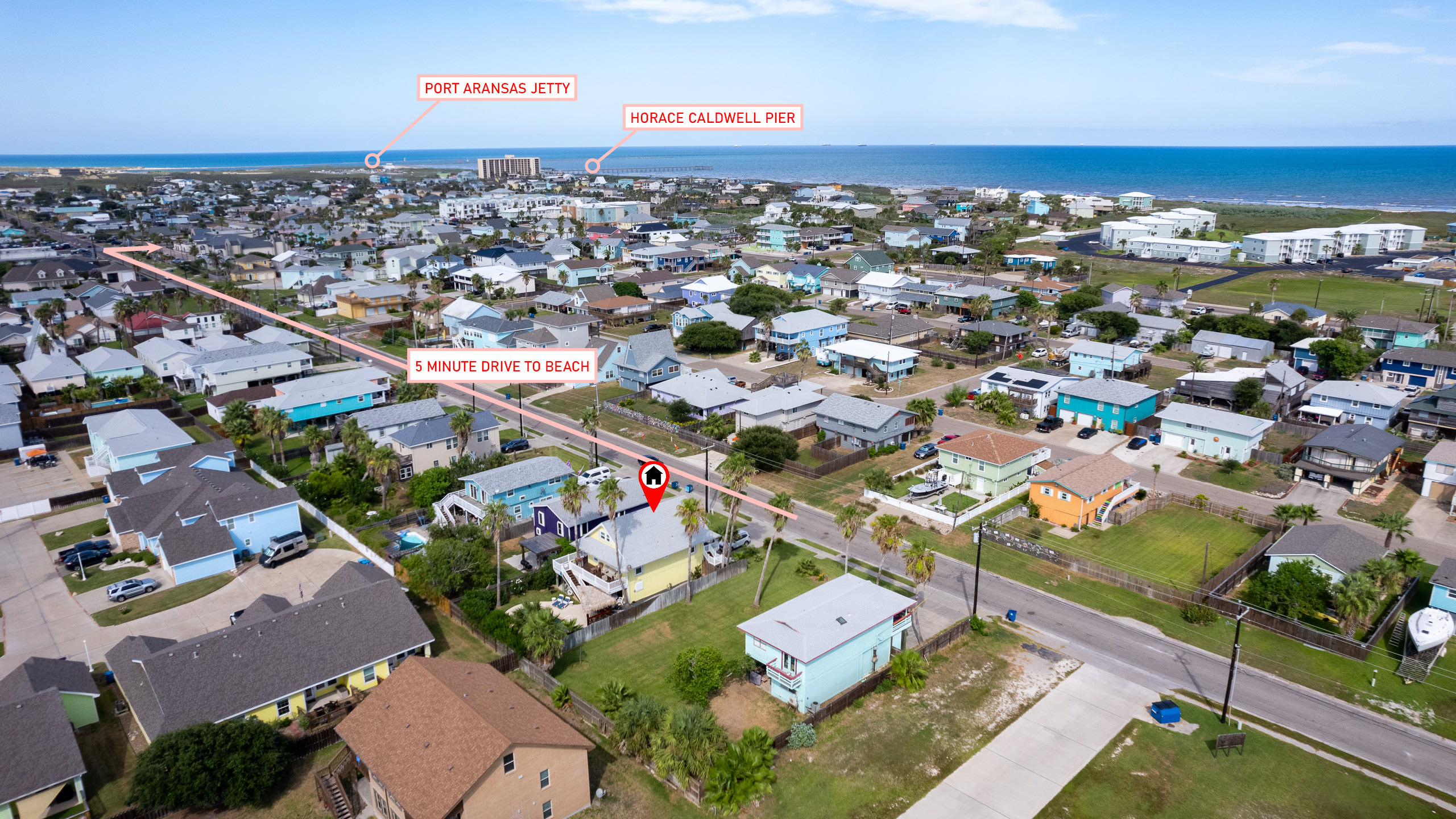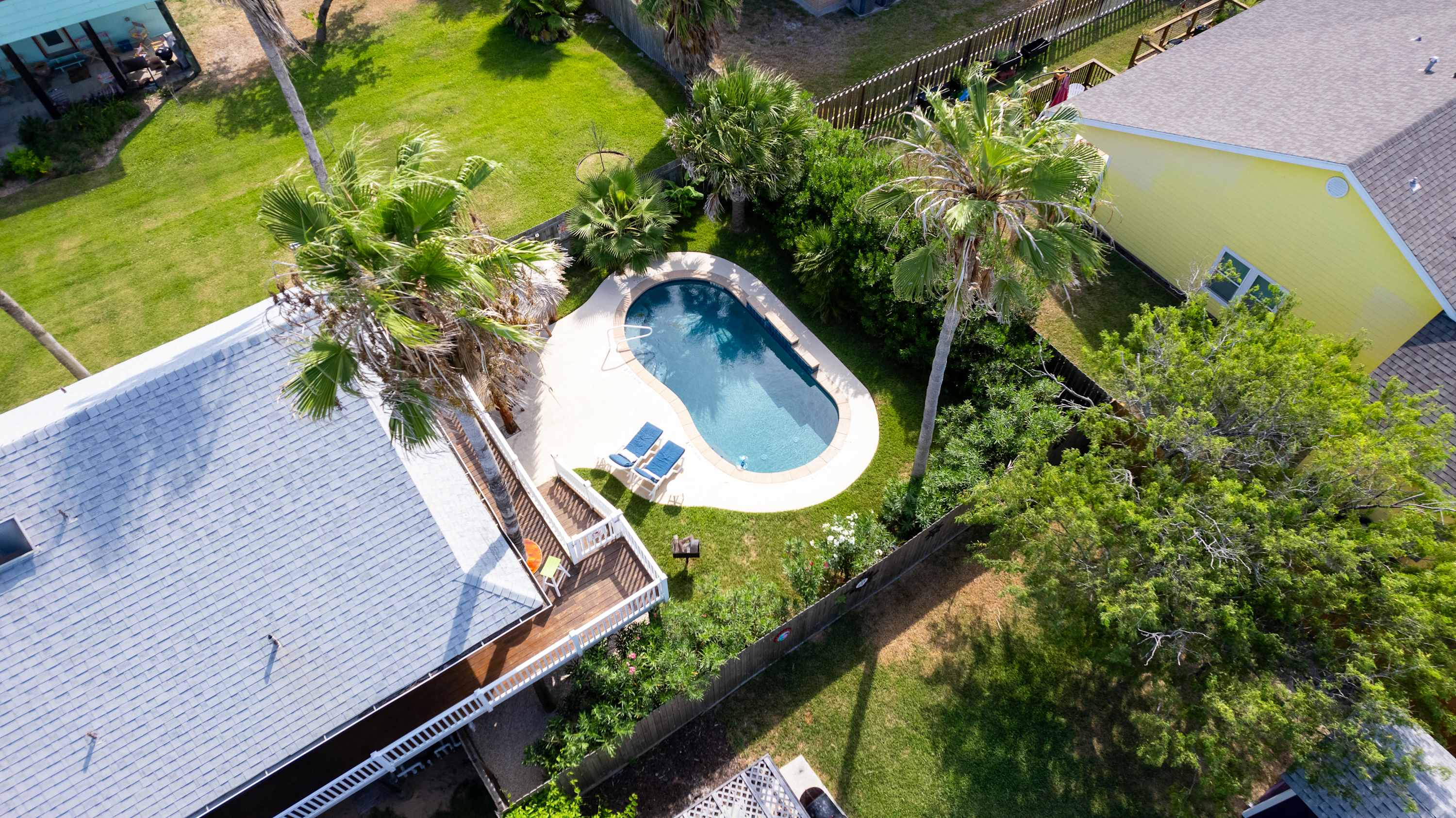 What more could you ask for? The Shell House is the quintessential beach retreat, offering everything you could possibly need to create the vacation of your dreams. Spend endless hours basking in the warm Texas sun, whether you pack up and head out for a day on the beach, or lounge poolside with the relief of air conditioning just steps away. The spacious patio is surrounded by lush landscaping and includes a fun, shaded palapa with barstool seating, ideal for those moments when you want to enjoy an afternoon cocktail and listen to some music. If you’d rather watch the festivities from afar, the home’s wraparound deck provides you with ample views of the pool and the area beyond, complete with relaxed seating options. Apart from being close to the beach, you’ll also be within walking distance of several restaurants, bars, and shops. A leisurely stroll through the neighborhood sounds like just the thing to cap off a fun-filled day.