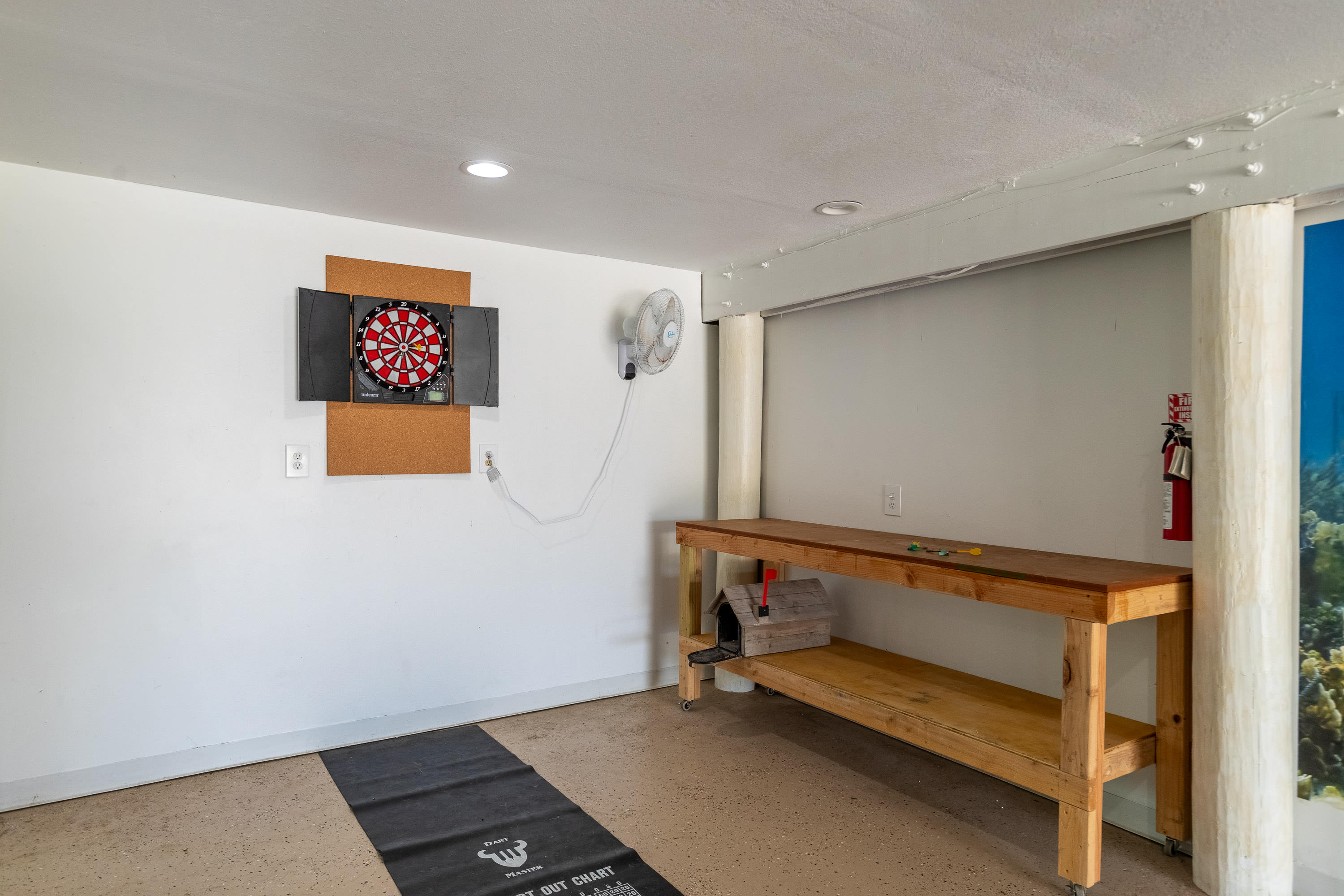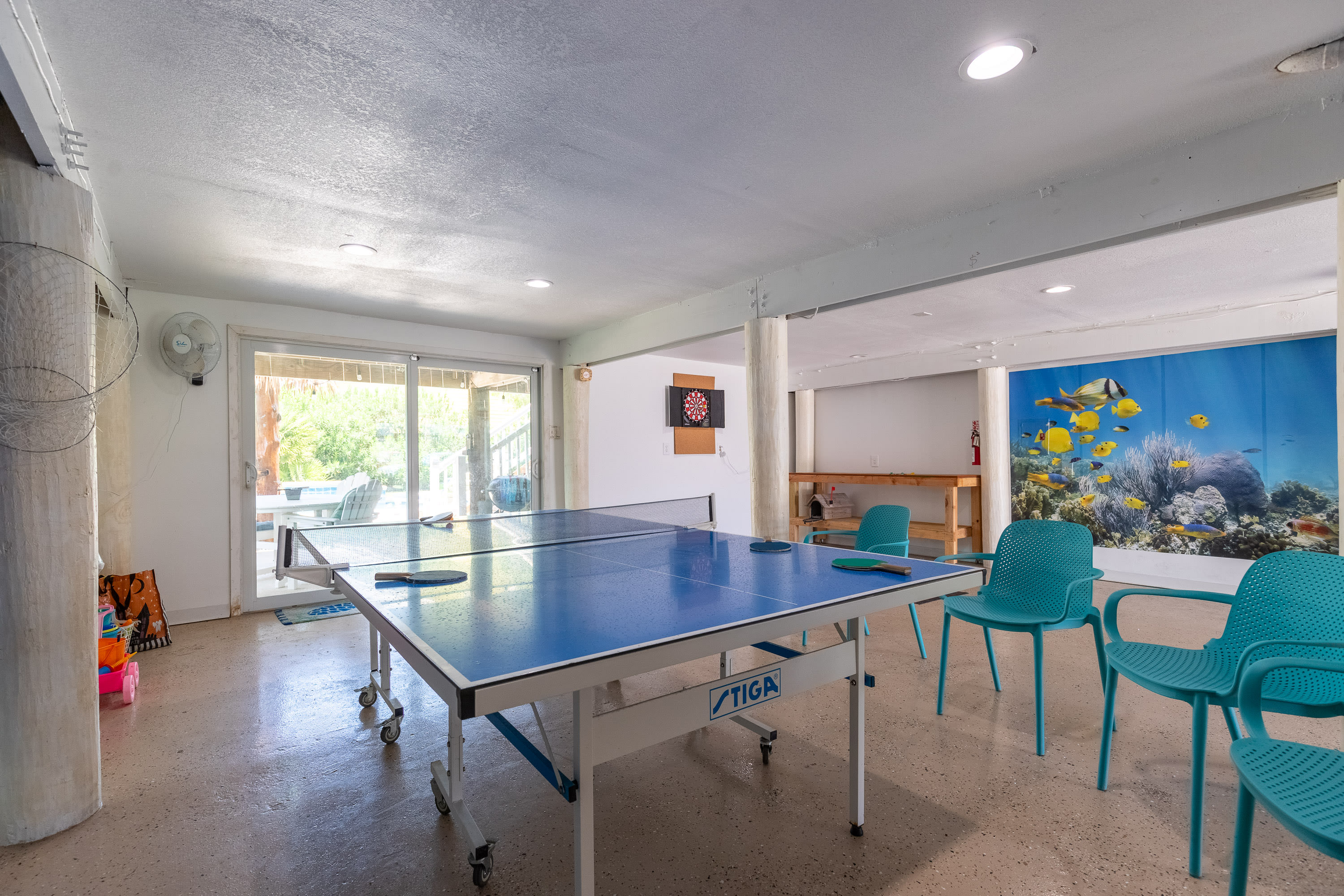 But wait, there’s more! Competitive and casual game guests alike will be delighted to find a game room on the lower level with a ping pong table, darts, and sliding door access onto to patio.
