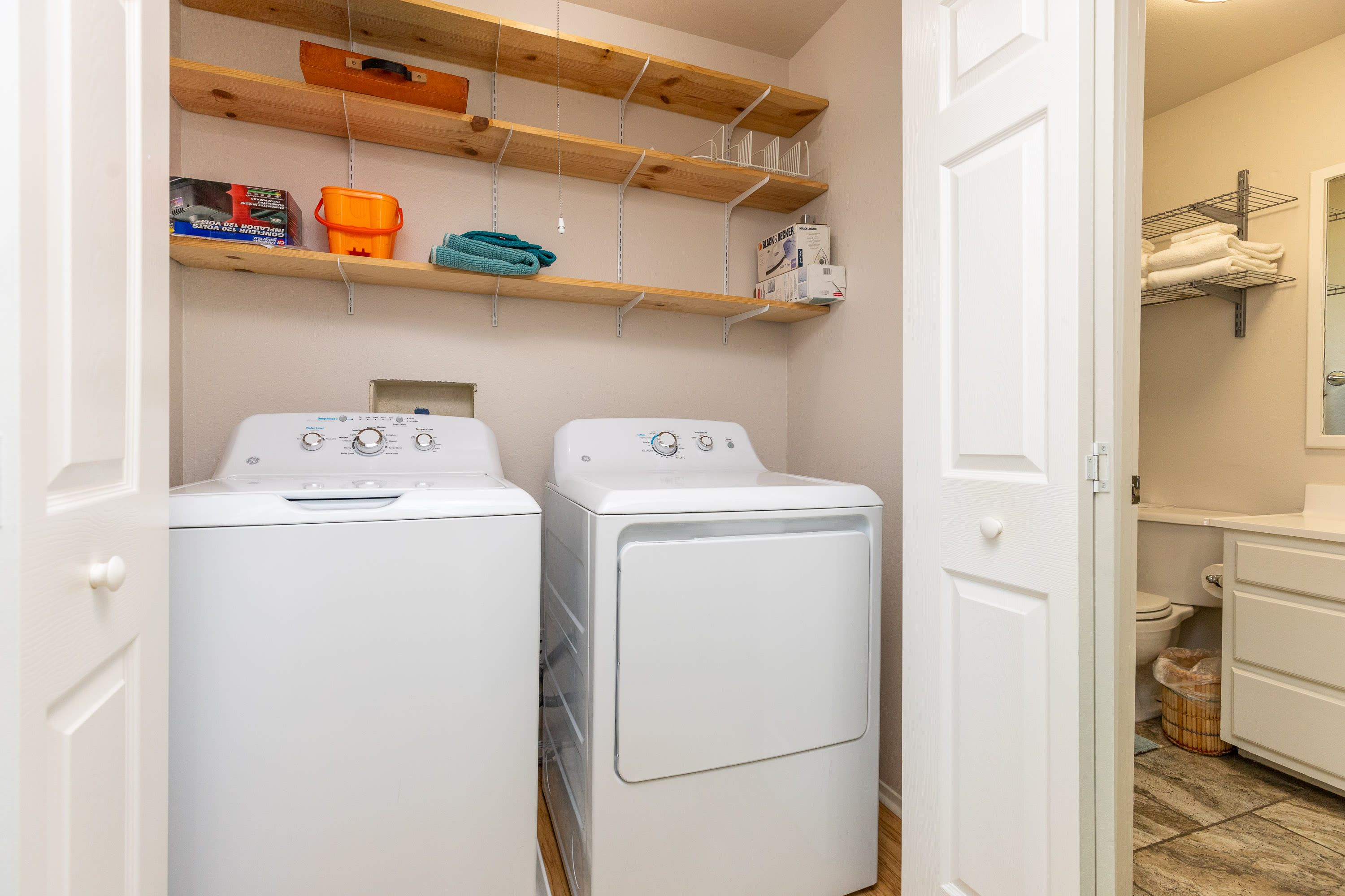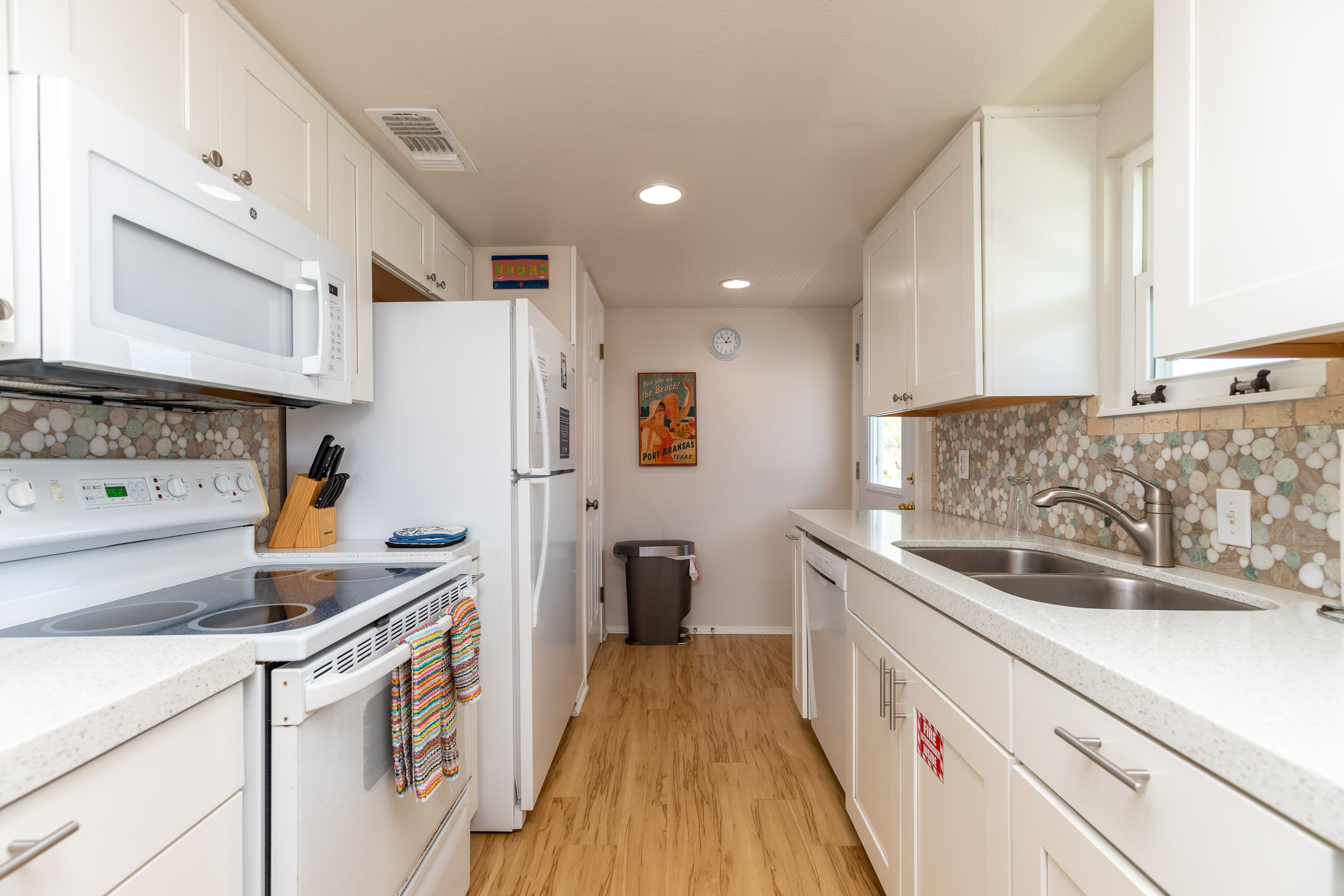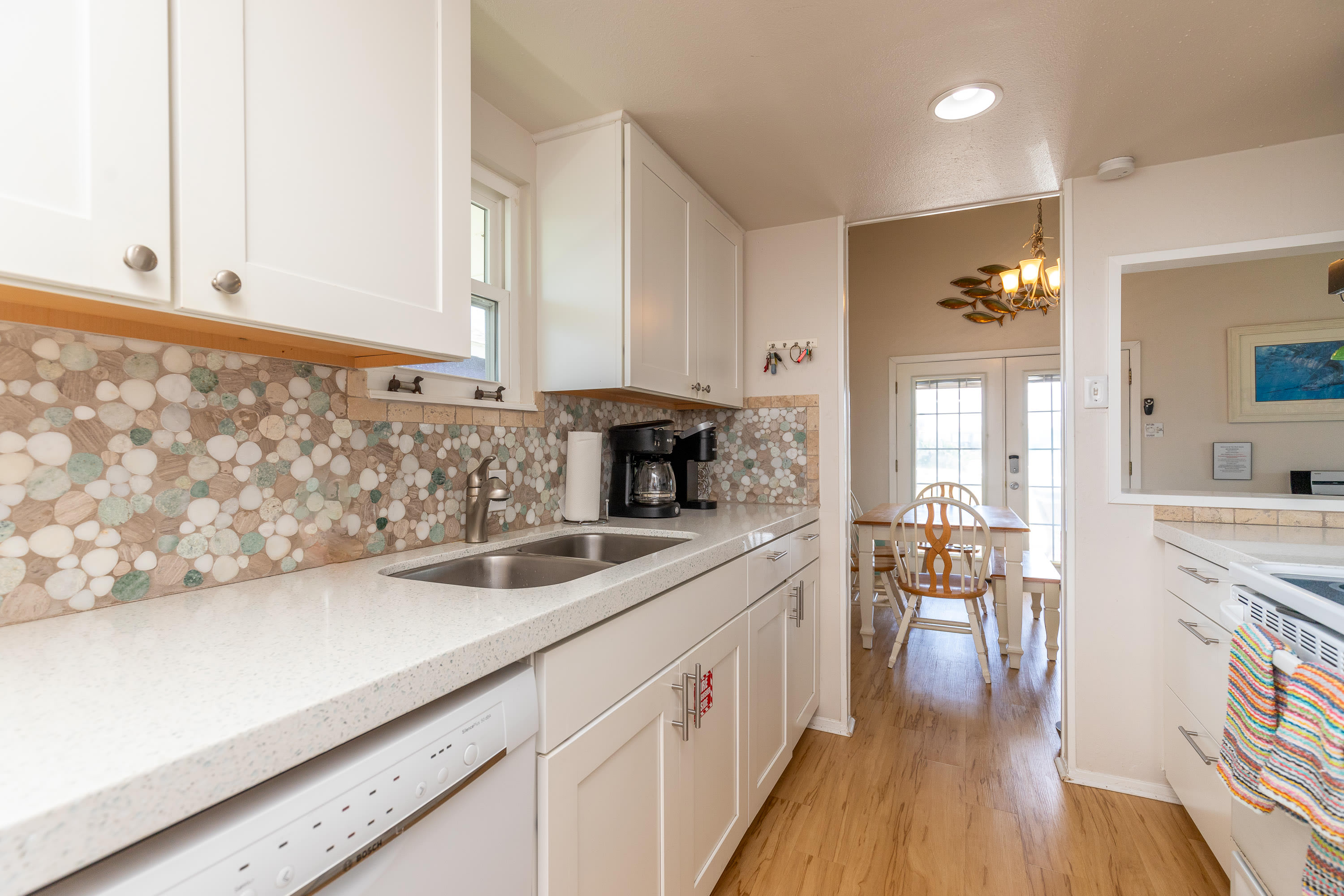 The interior of the home has been outfitted with everything you need for a complete, comfortable stay. A cozy living room offers plush sofa seating and a smart TV for quiet movie nights or family game time. Steps away, the dining room offers a table and chair set with room for 6, the open floor plan creating a synergistic space for entertainment between these two spaces. The fully equipped kitchen with updated counters and cabinetry is well-prepared for all types of meals, whether you choose to cook at home or prepare takeout from a local restaurant. Drip and Keurig coffee makers ensure that everyone will have their needed morning pick-me-up, taken outside to enjoy the fresh air and watch the sunrise on another beautiful day.