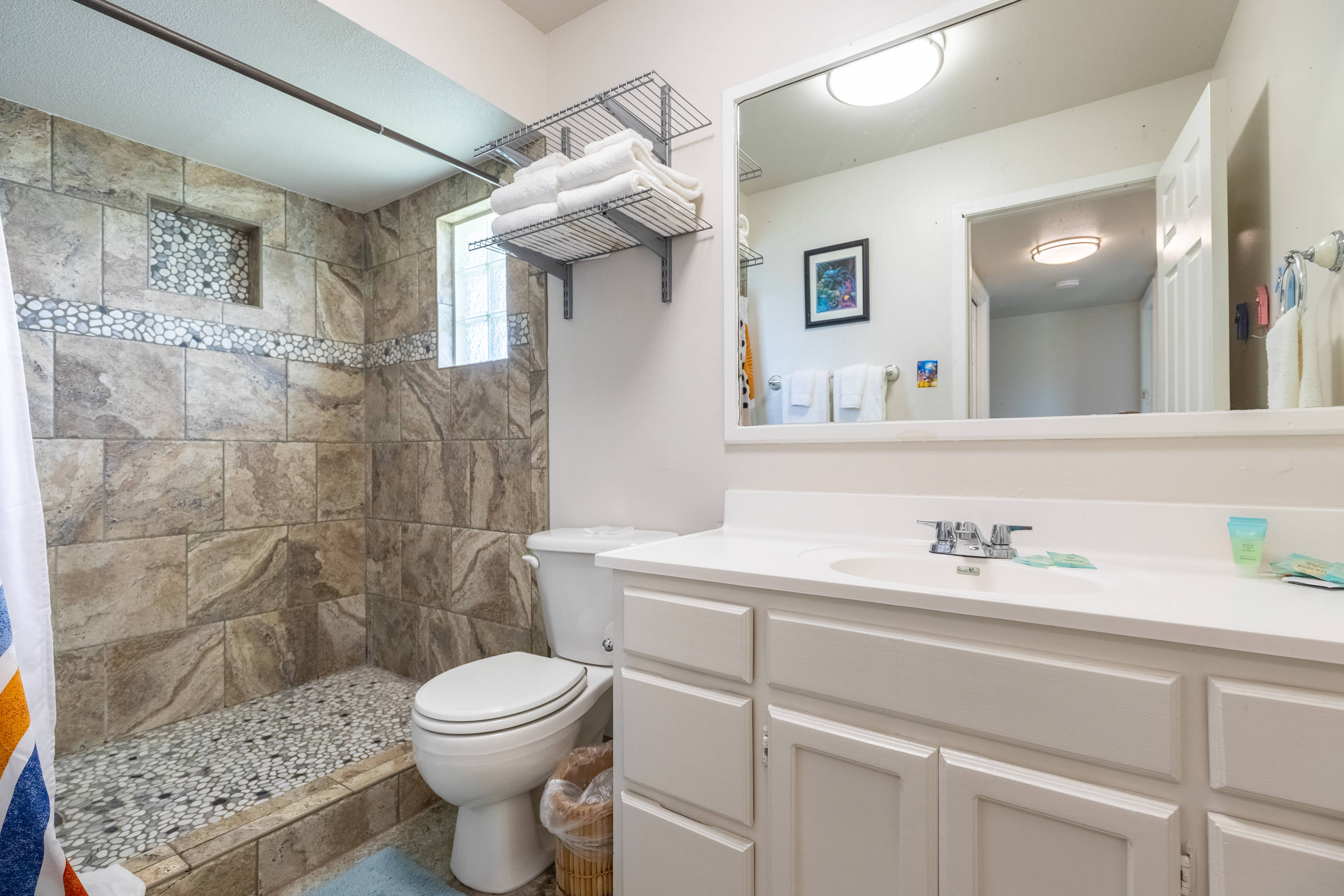 The home includes a second full guest bathroom with a single vanity and walk-in shower.