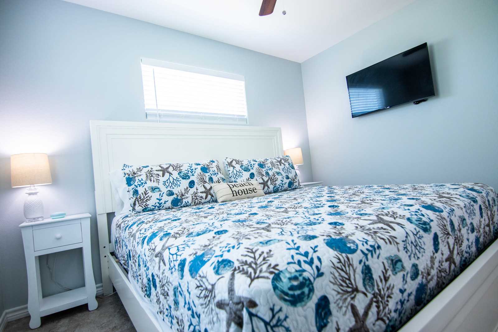 - Bedroom #4 has a king size bed, smart tv, and ensuite bathroom with shower/tub combo.