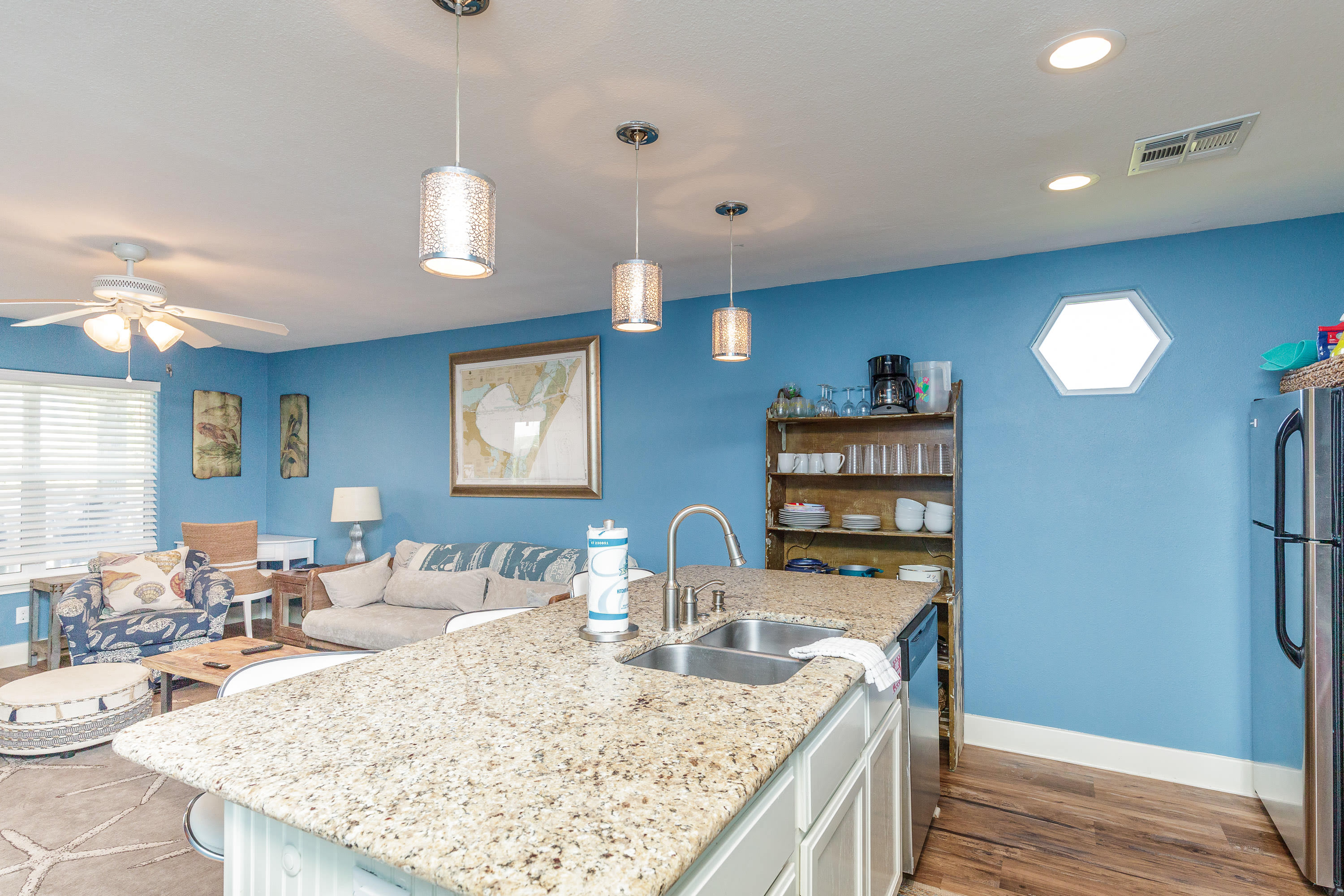 After a sun and sand-filled day at the beach, there's nothing quite like returning to the comfort of home and spending quality time with your loved ones. At the Oasis, we've designed our living space with this in mind. Our cozy and inviting living area is perfect for an evening of relaxing on the couches and watching your favorite movie on the smart TV. The spacious kitchen is equipped with everything you need to whip up a delicious family-style meal, which can be enjoyed around the kitchen island or outside on the patio. Even if each family member is doing their own thing, the open-concept design of the Oasis ensures that you still get to enjoy each other's company. From the moment you step foot in our home, you'll feel the hustle and bustle of daily life melt away as you sink deep into relaxation mode.