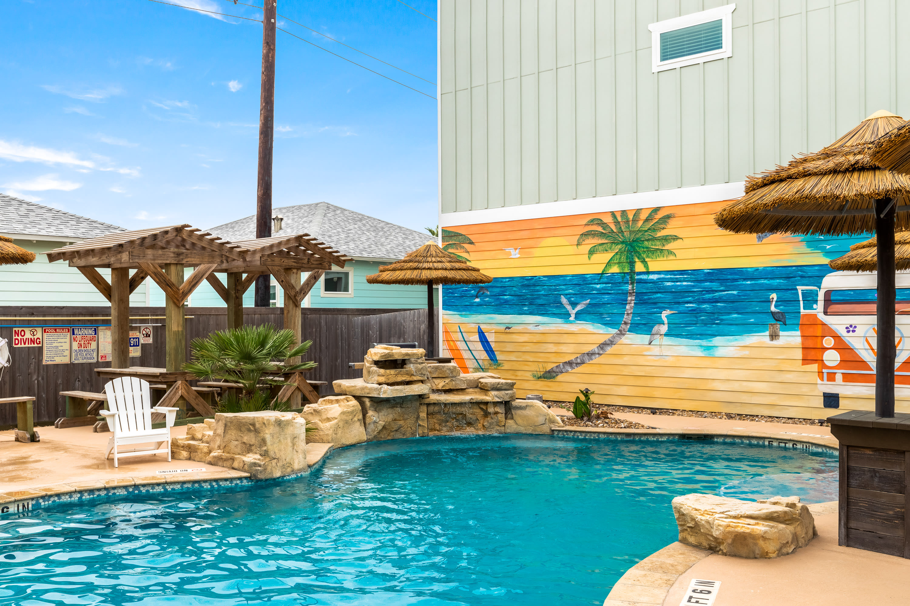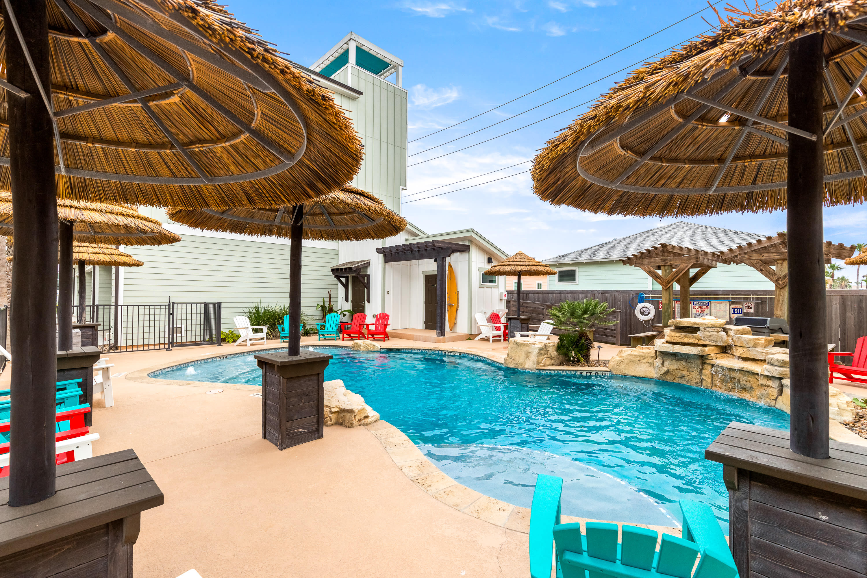 Perfect for families or groups, Norty's Paradise has exclusive access to the tiki-style community pool which offers poolside lounge chairs, picnic tables, and a grill. It’s an ideal space to relax and soak up the Texas sunshine, right outside your door!