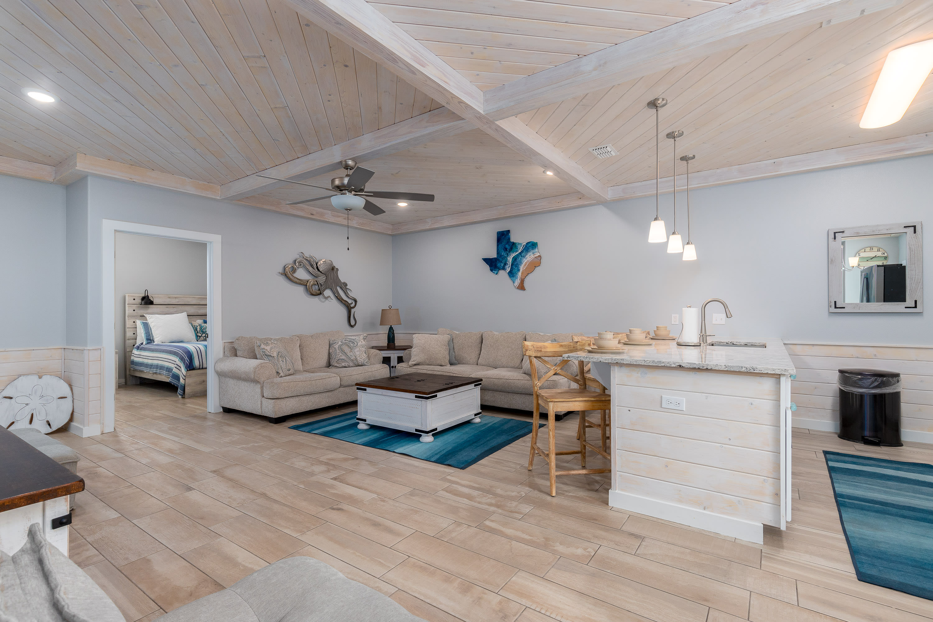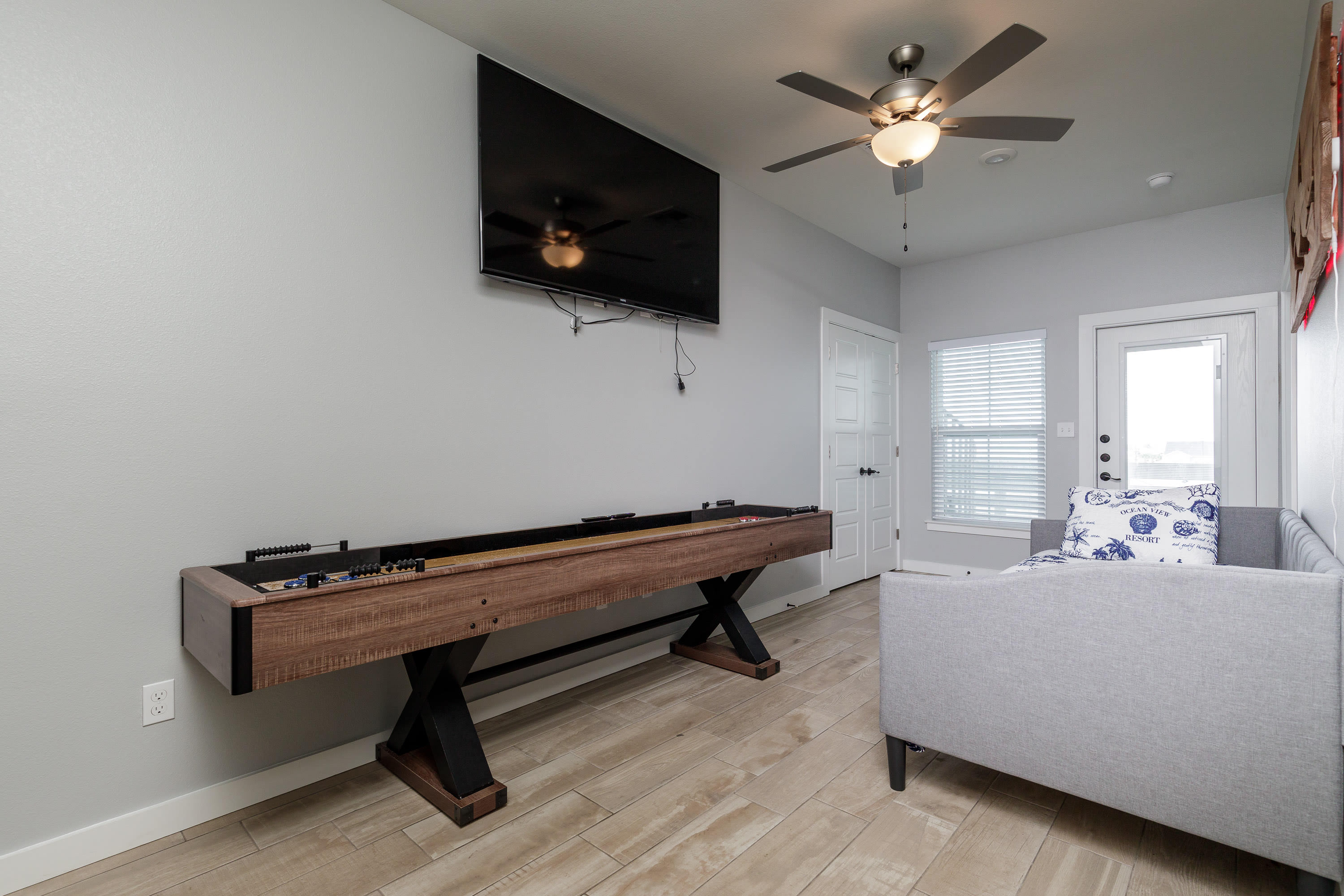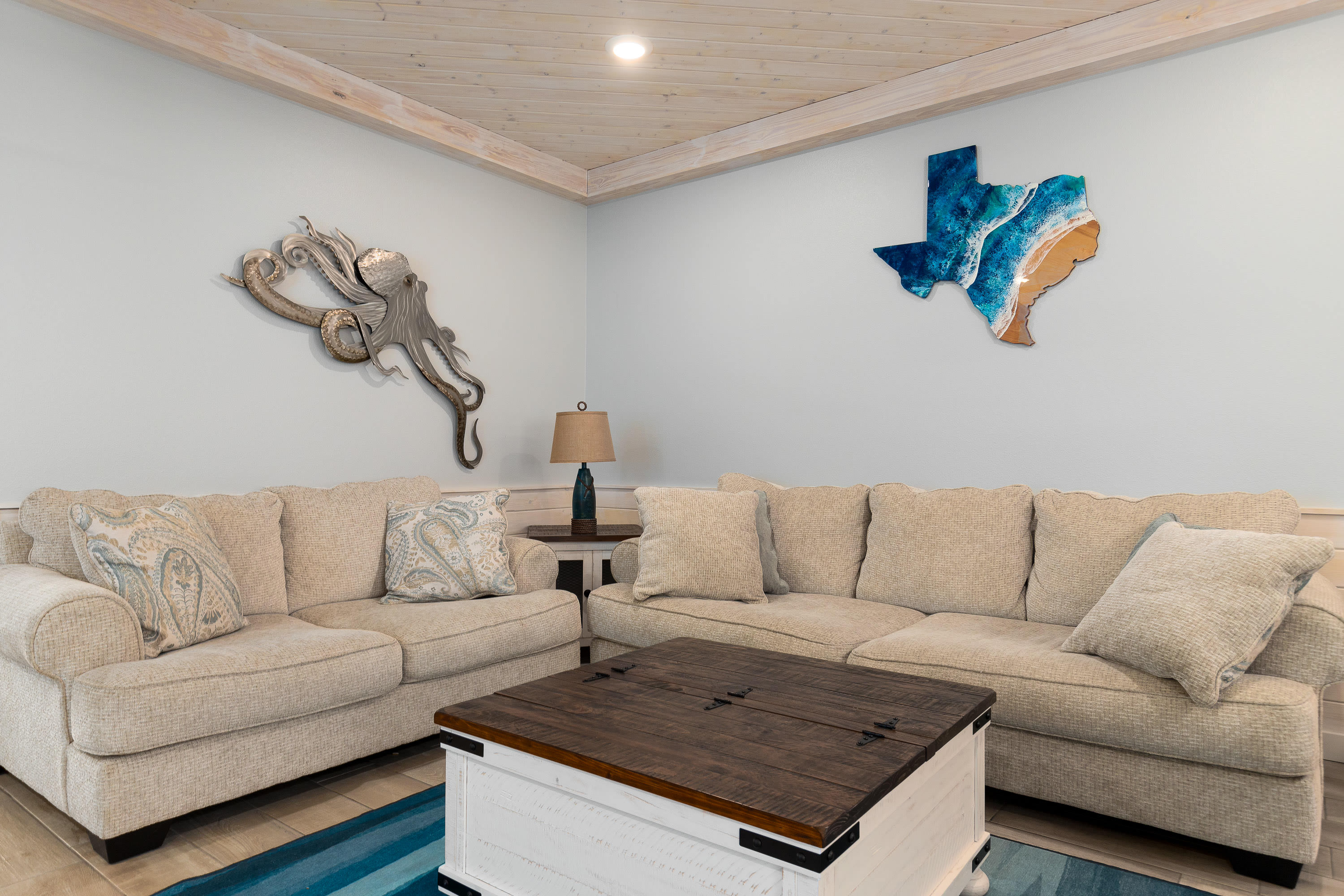 Inside, you'll find a stylish blend of coastal decor and Texas charm across 2 spacious floors of space. With a rooftop deck boasting expansive views of the complex and a game room equipped with shuffleboard and a smart TV, there's something for everyone to enjoy. Most notably, the beach is just a short distance away! Come recharge your batteries, spend days on the sand, and experience the beauty of coastal living - book your stay today!