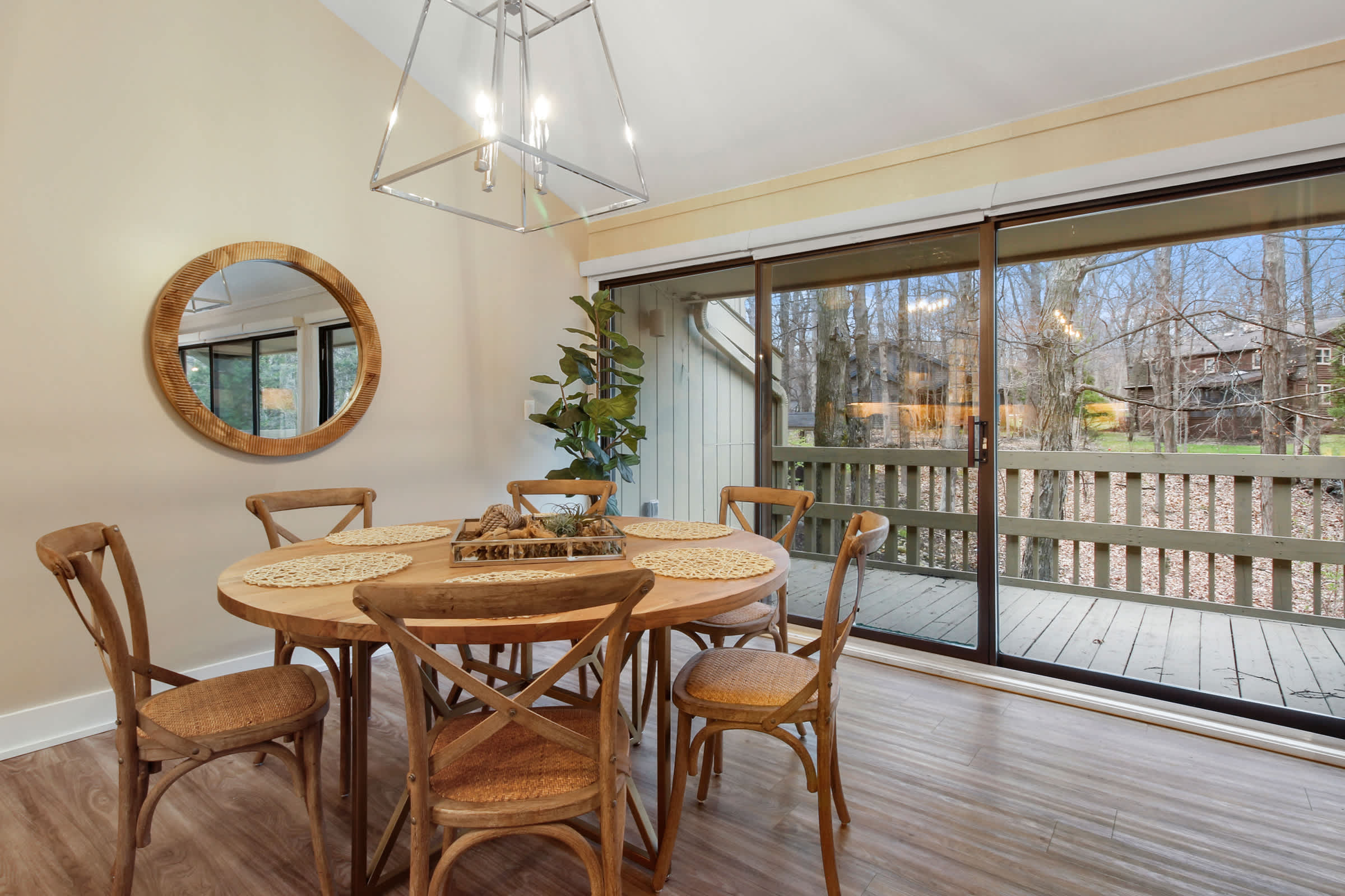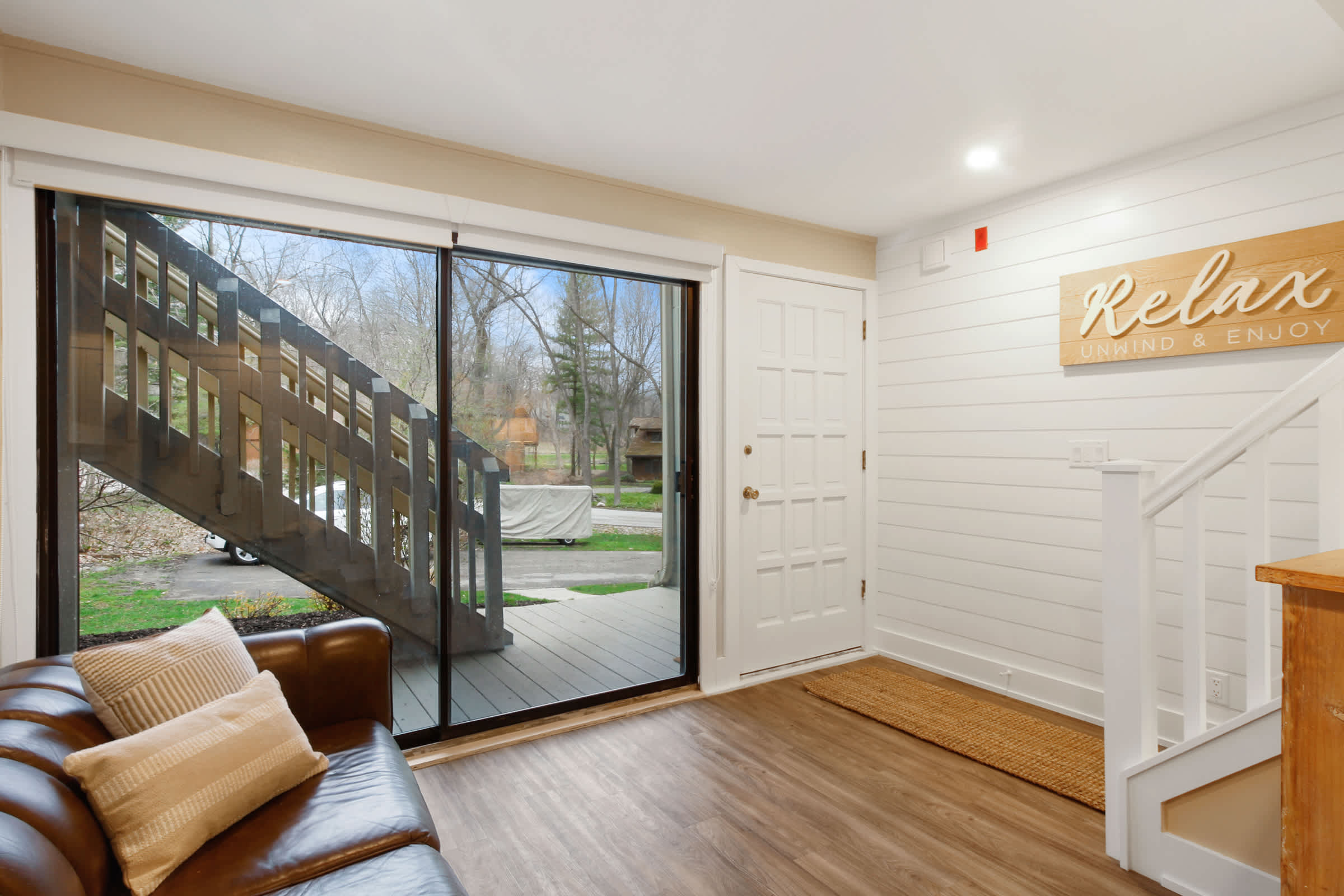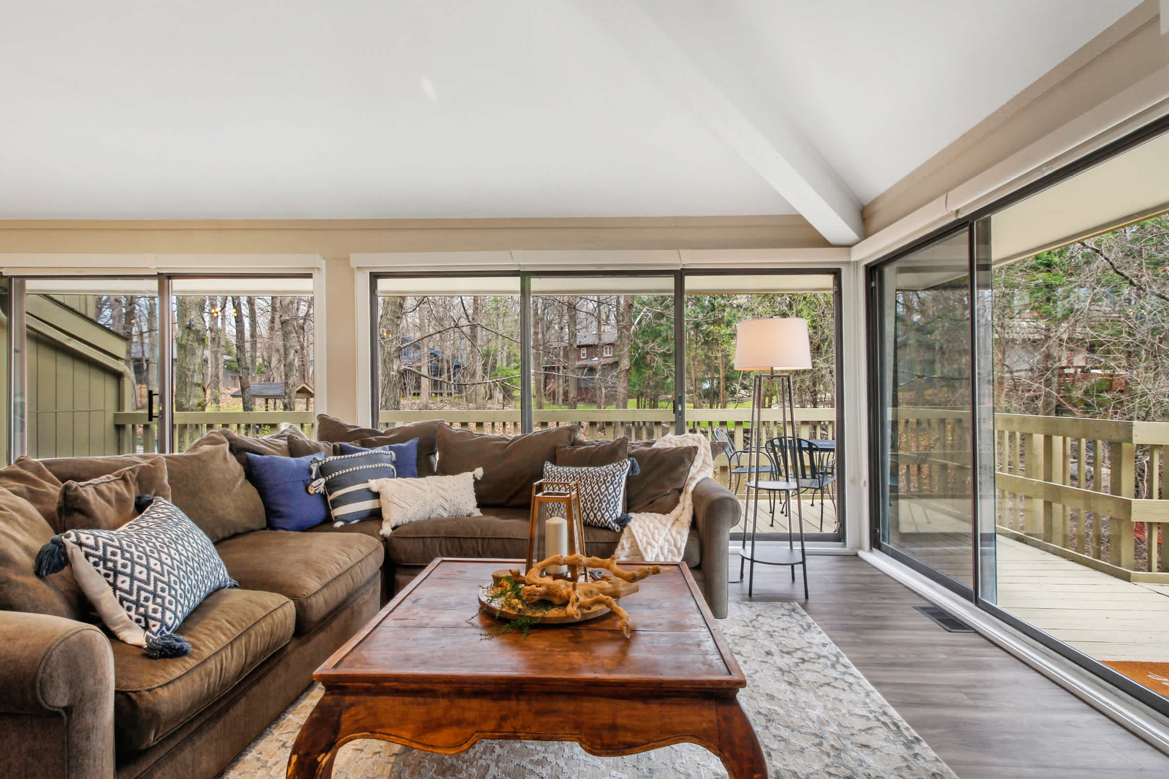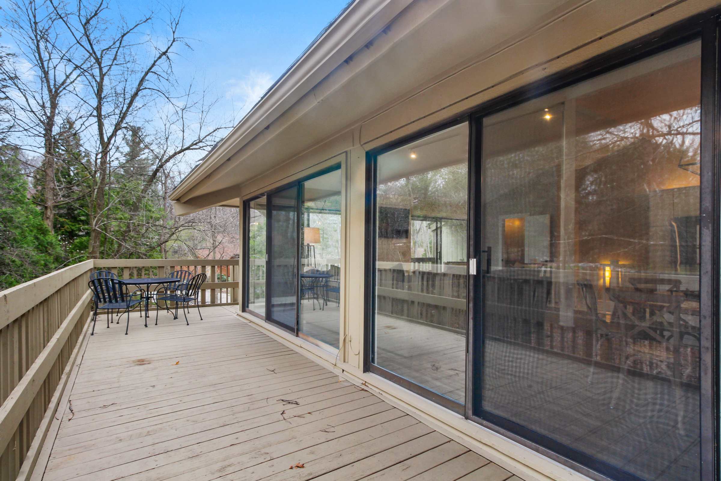 The home gets its name from its spacious upper-level deck, the perfect spot for sunbathing, sipping on a refreshing cocktail, and simply breathing in the fresh lake air while you lose yourself in the pages of a good book. On the lower-level deck, gather around the outdoor table for al fresco dining!