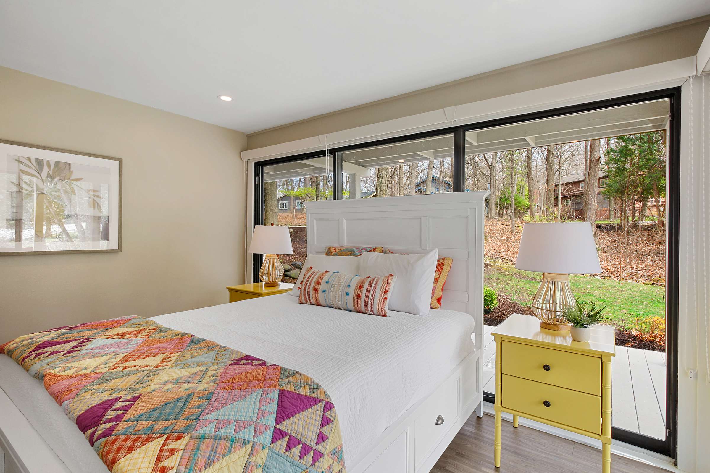 Bedroom #2 includes a queen size bed and deck access.