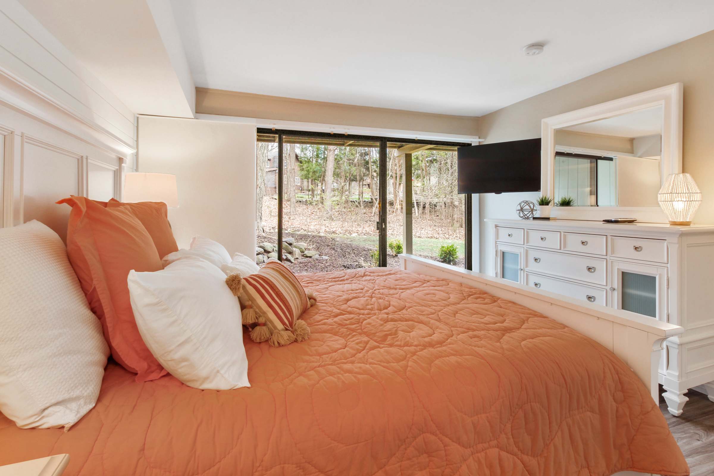 Bedroom #1 includes a king size bed, deck access, and a smart TV.