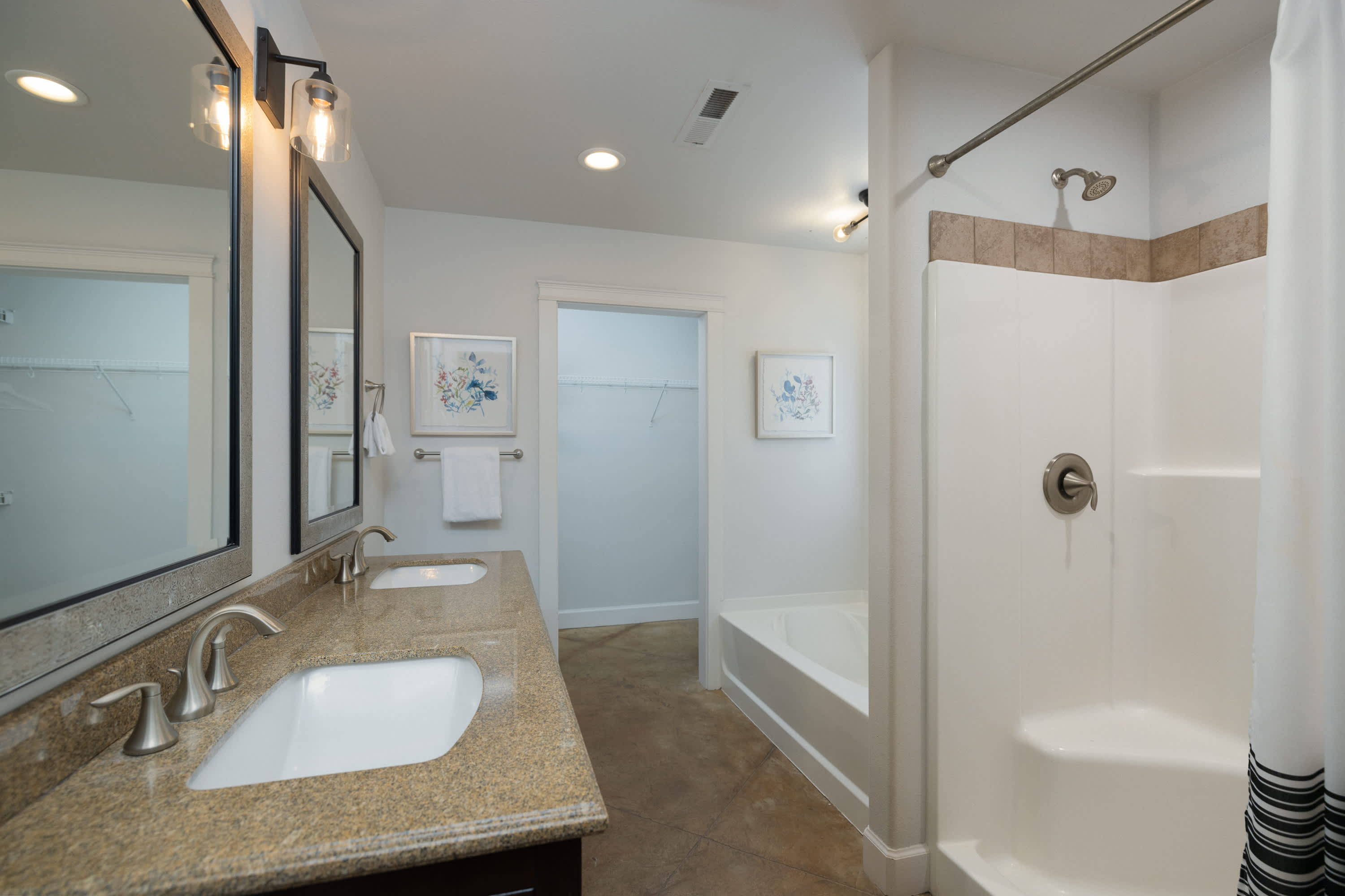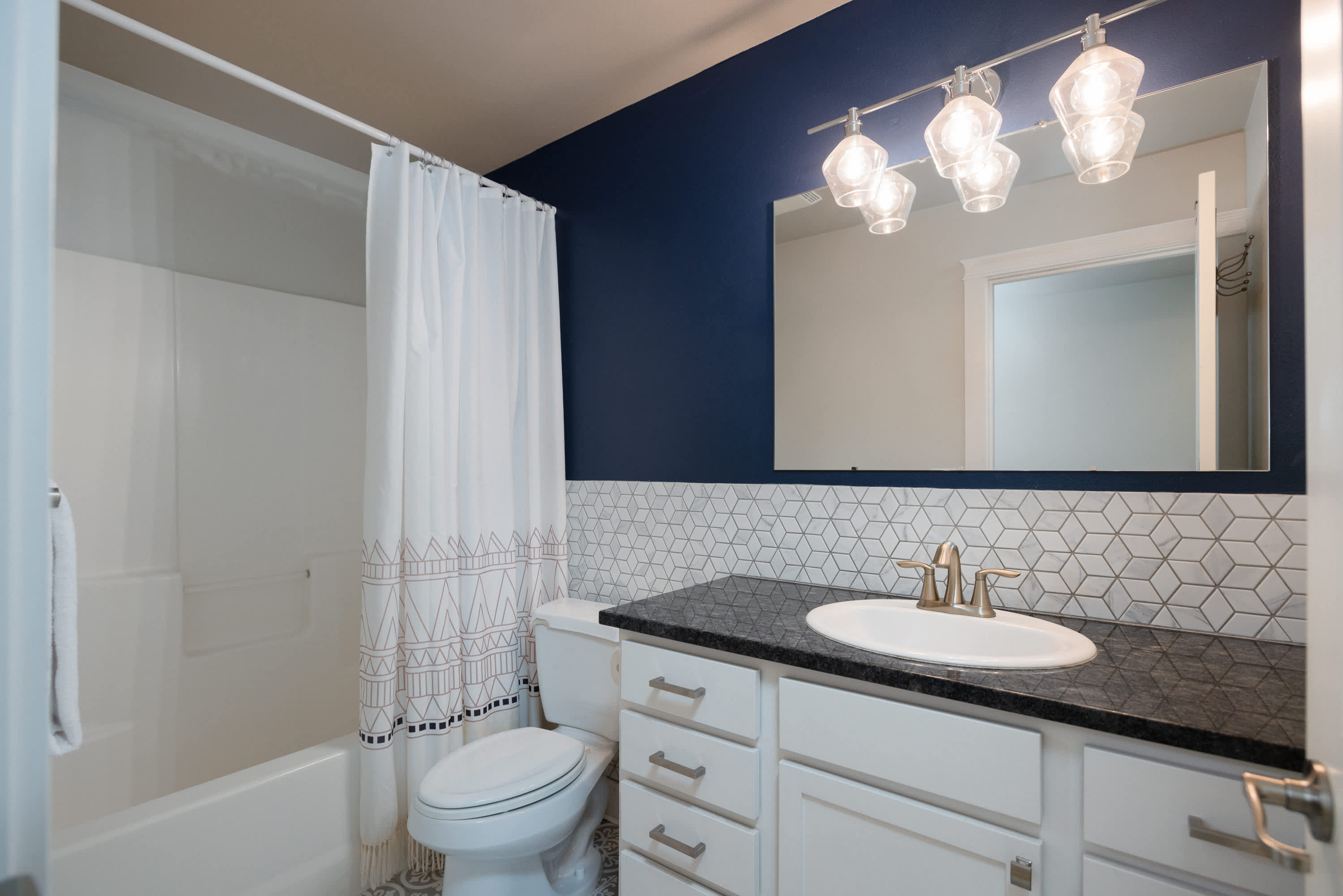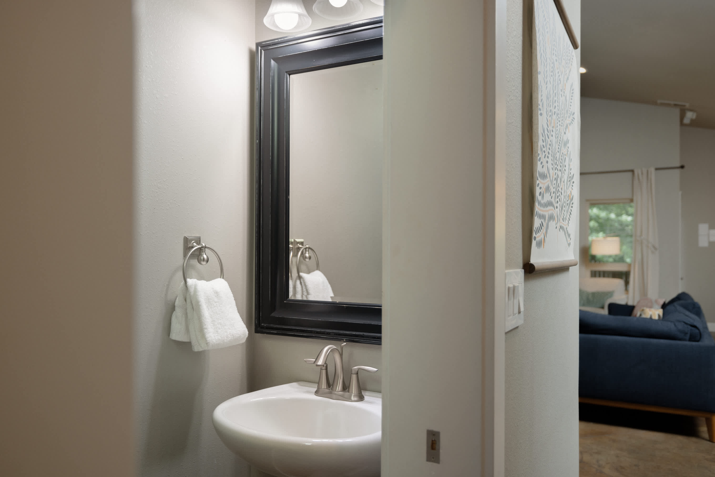 The home also includes a half bathroom as well an additional full guest bathroom with a single vanity and shower/tub combo.