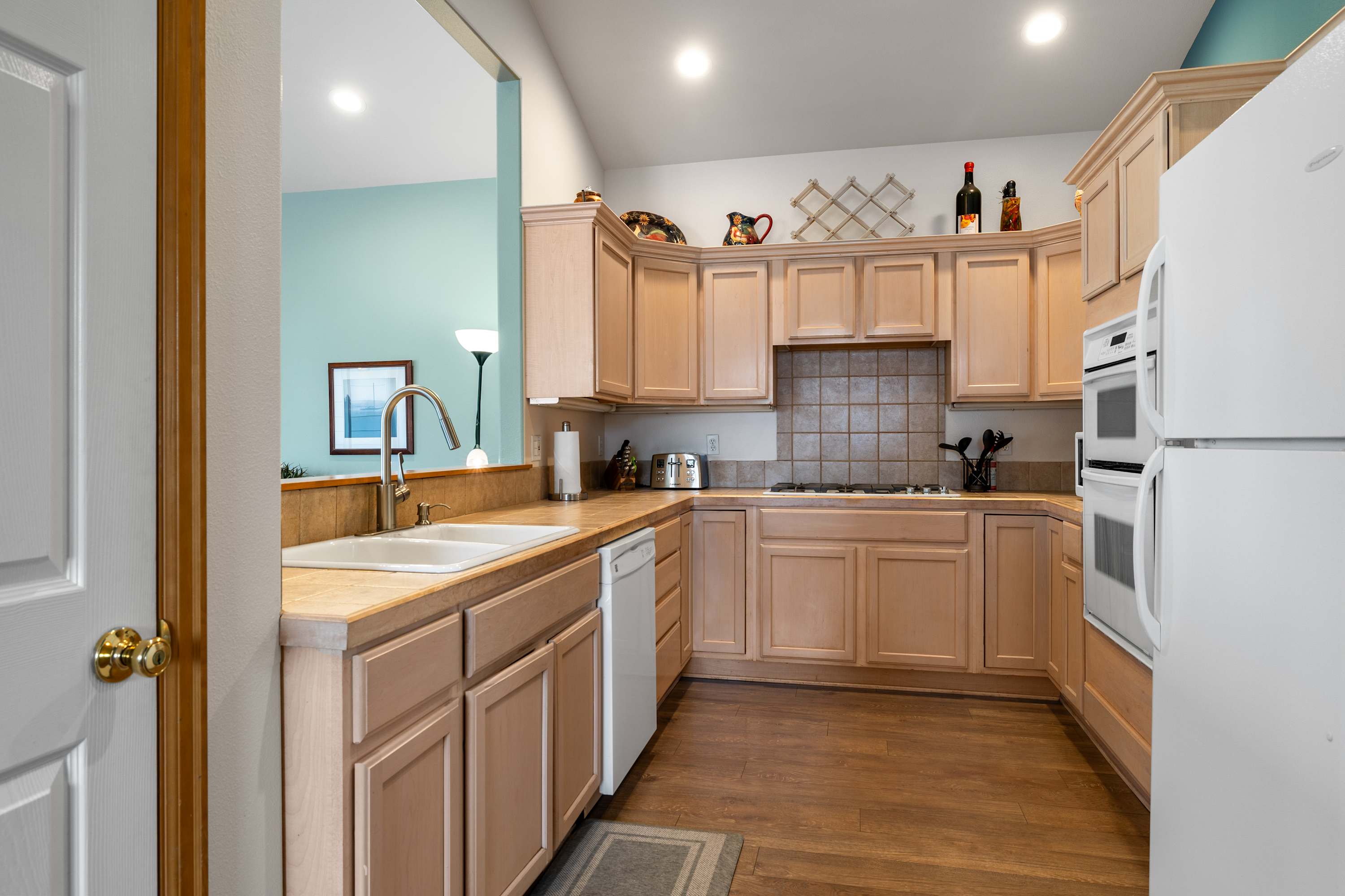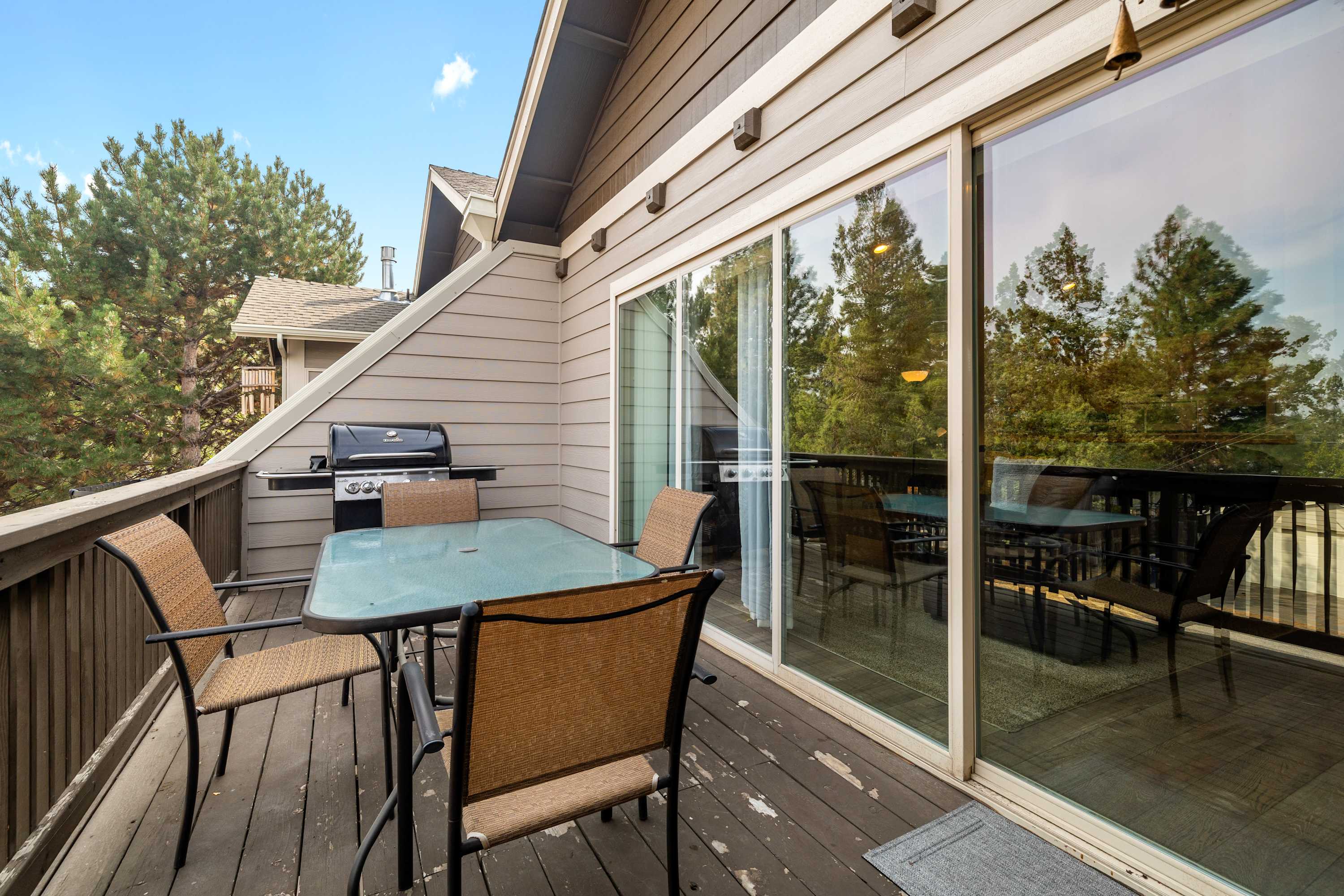 Back at the home, you’ll find it easy to relax in the great room with leather sofa seating and a smart TV where you can stream all your favorites without missing a single episode. A nearby gas fireplace fills the room with warmth when needed on the cooler nights and months, with chair and ottoman seating providing the perfect reading nook. The galley kitchen is fully equipped with all major appliances and ample cabinet storage, with cookware and dining ware on hand for any of your mealtime objectives. Enjoy your meals gathered together at the formal dining room table with seating for 6. In the mornings, fire up the drip coffee maker and brew up a fresh cup to take out on the 2nd floor balcony or the 1st floor deck, relishing the views from the café tables with seating for 4. If you’re a master of barbeque, fire up the grill and cook up a delicious feast for the whole family.