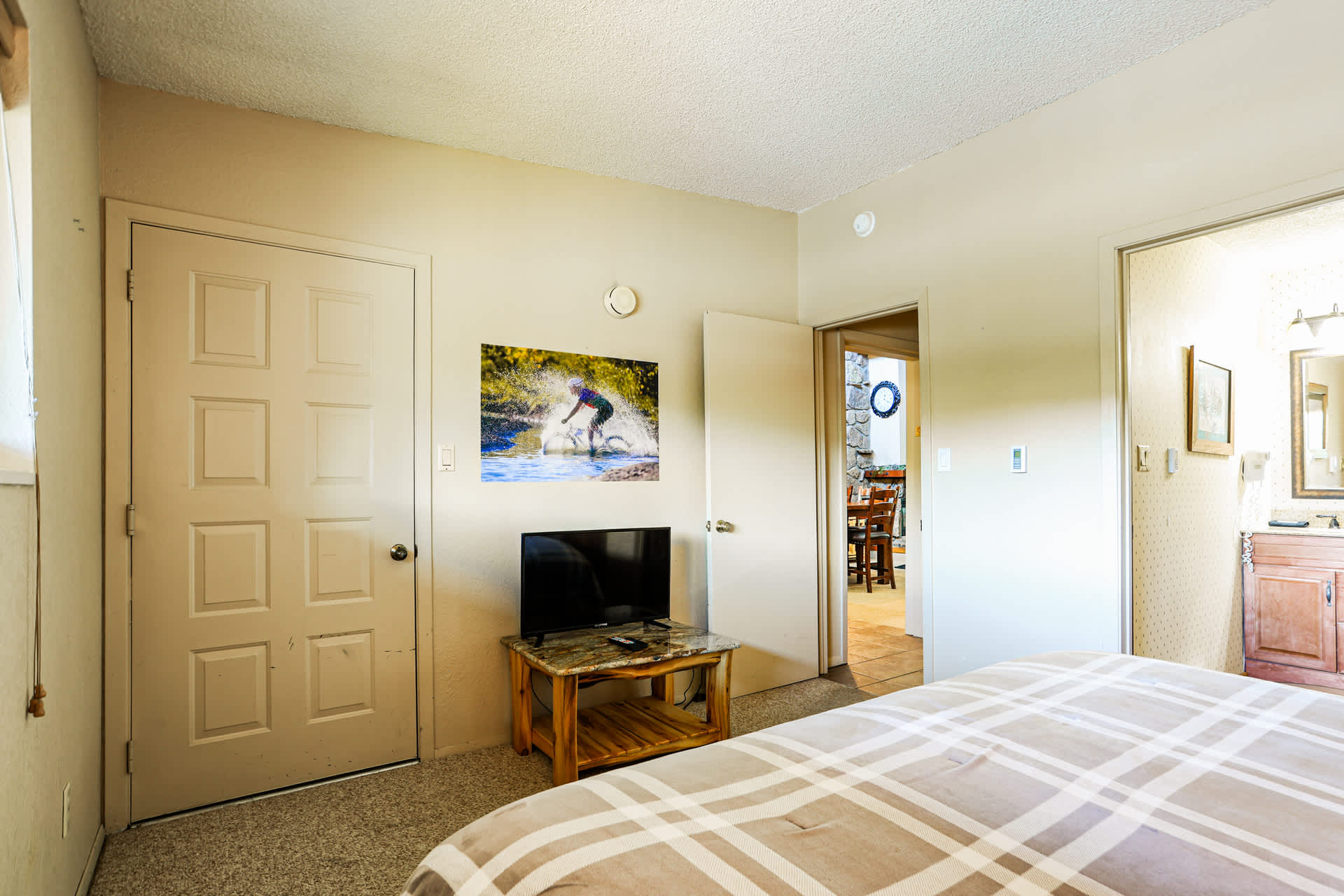 Bedroom #1 includes a king size bed, smart TV, and ensuite bathroom with a single vanity and shower/tub combo.