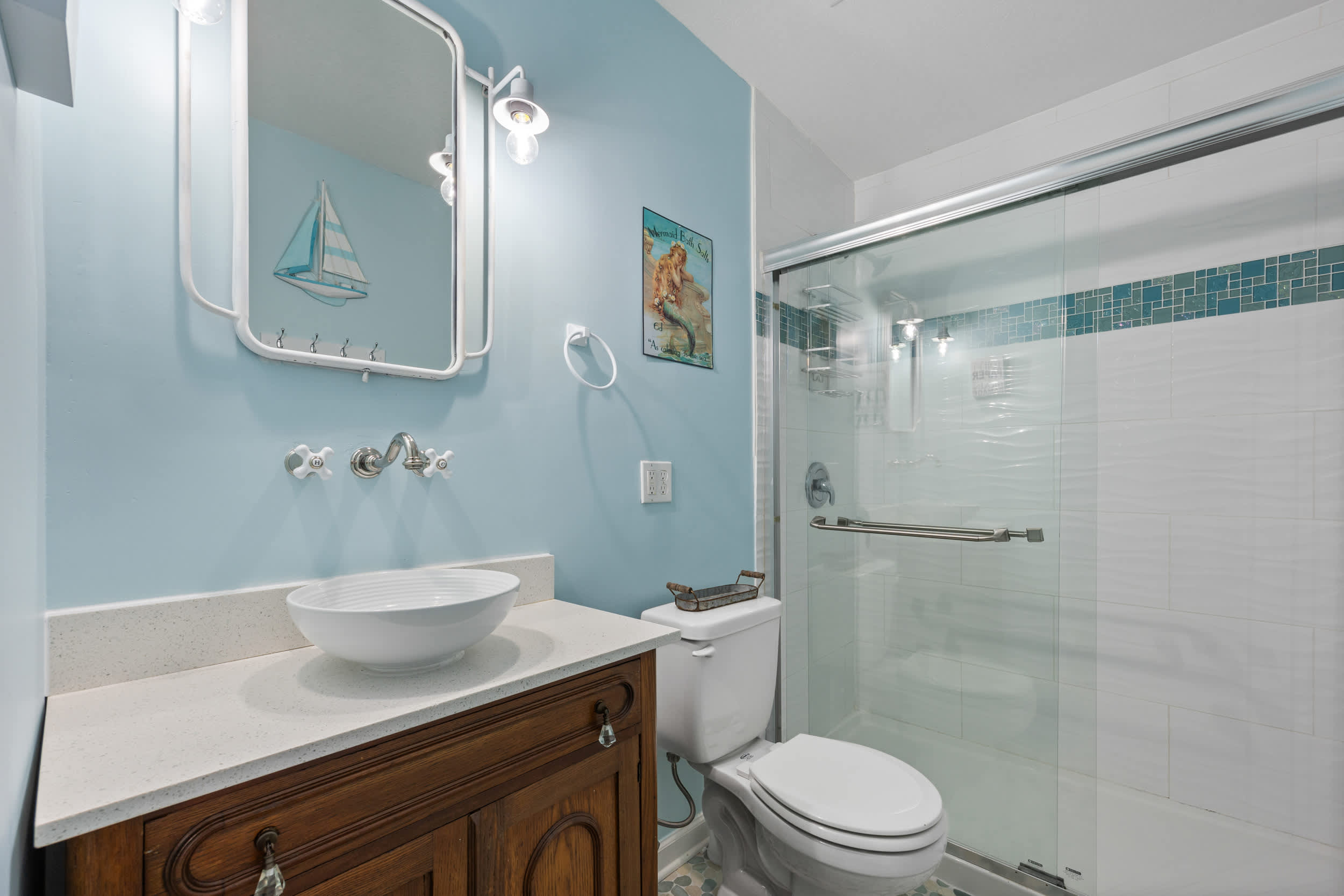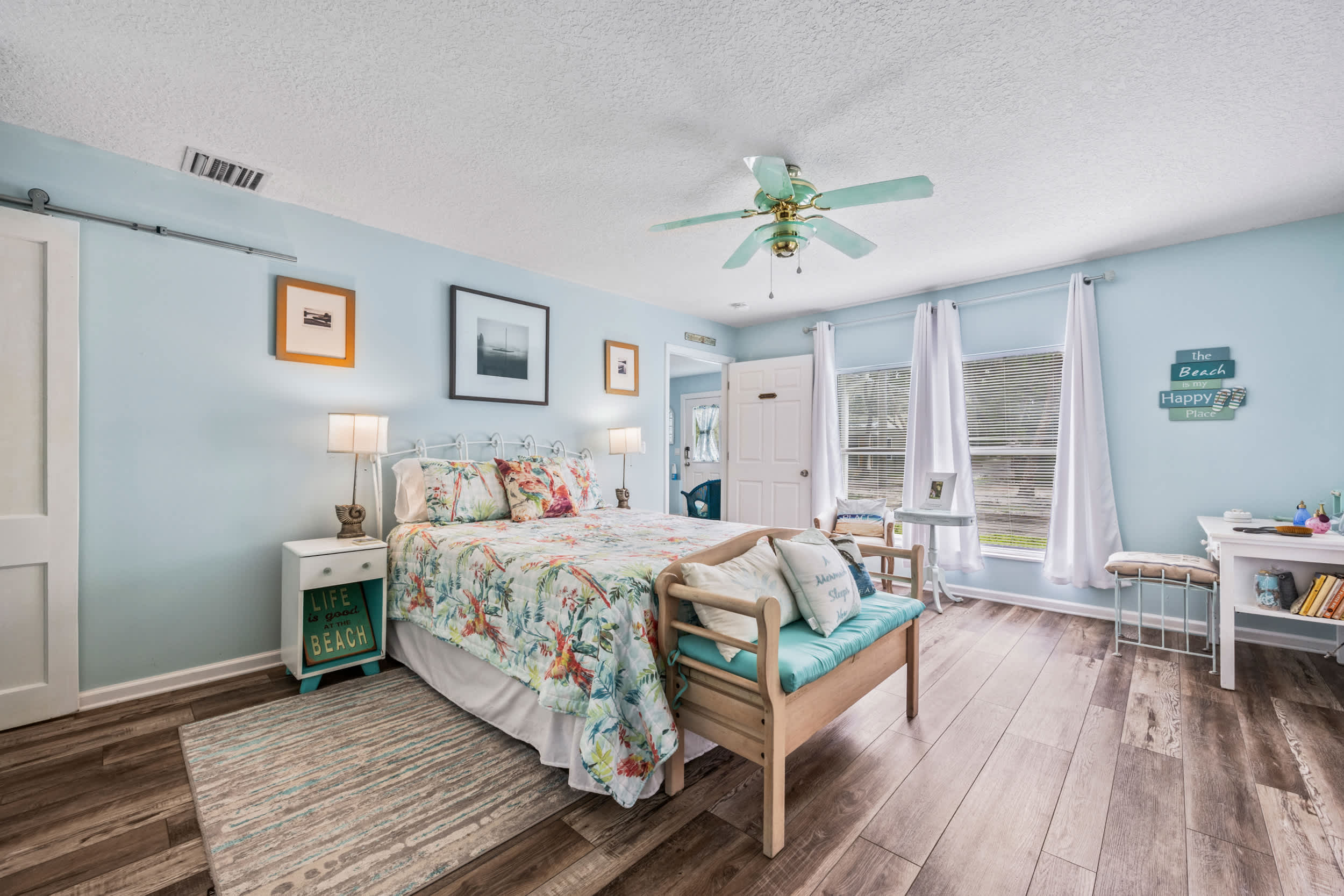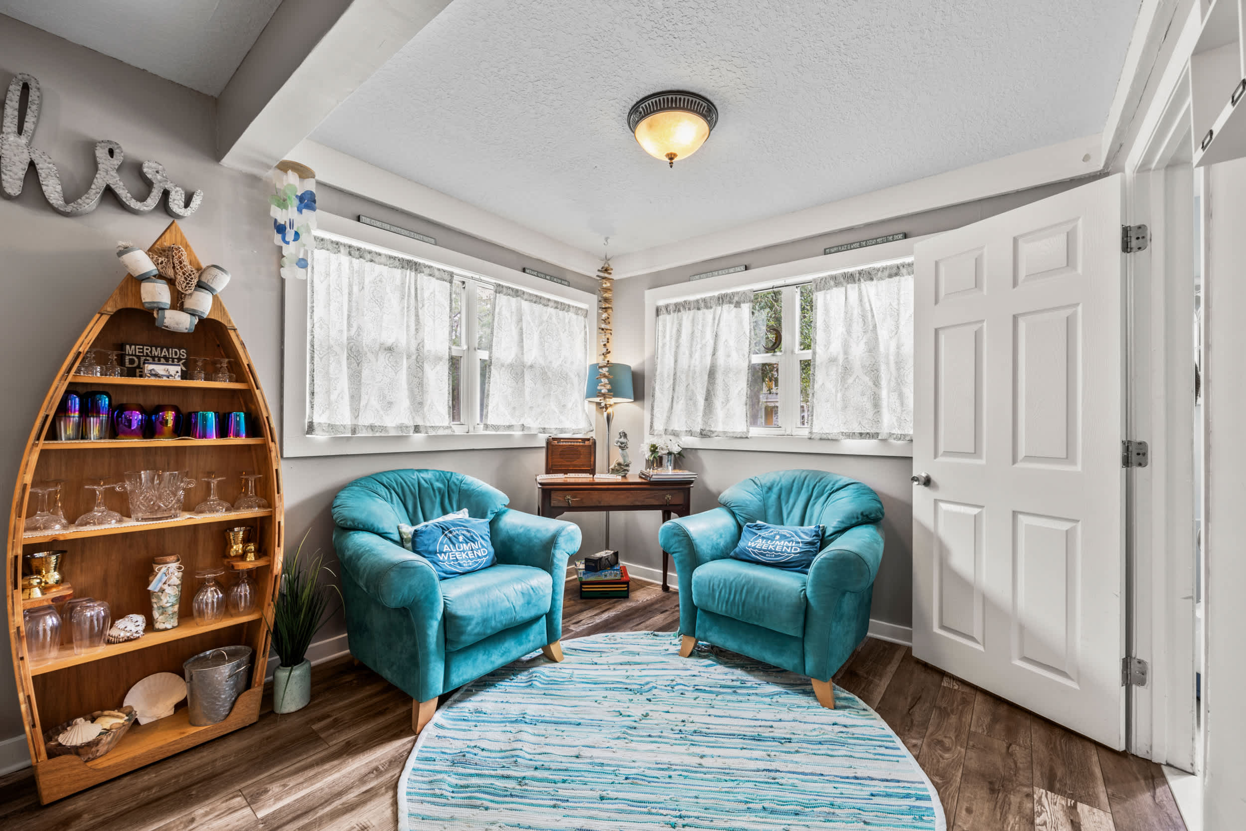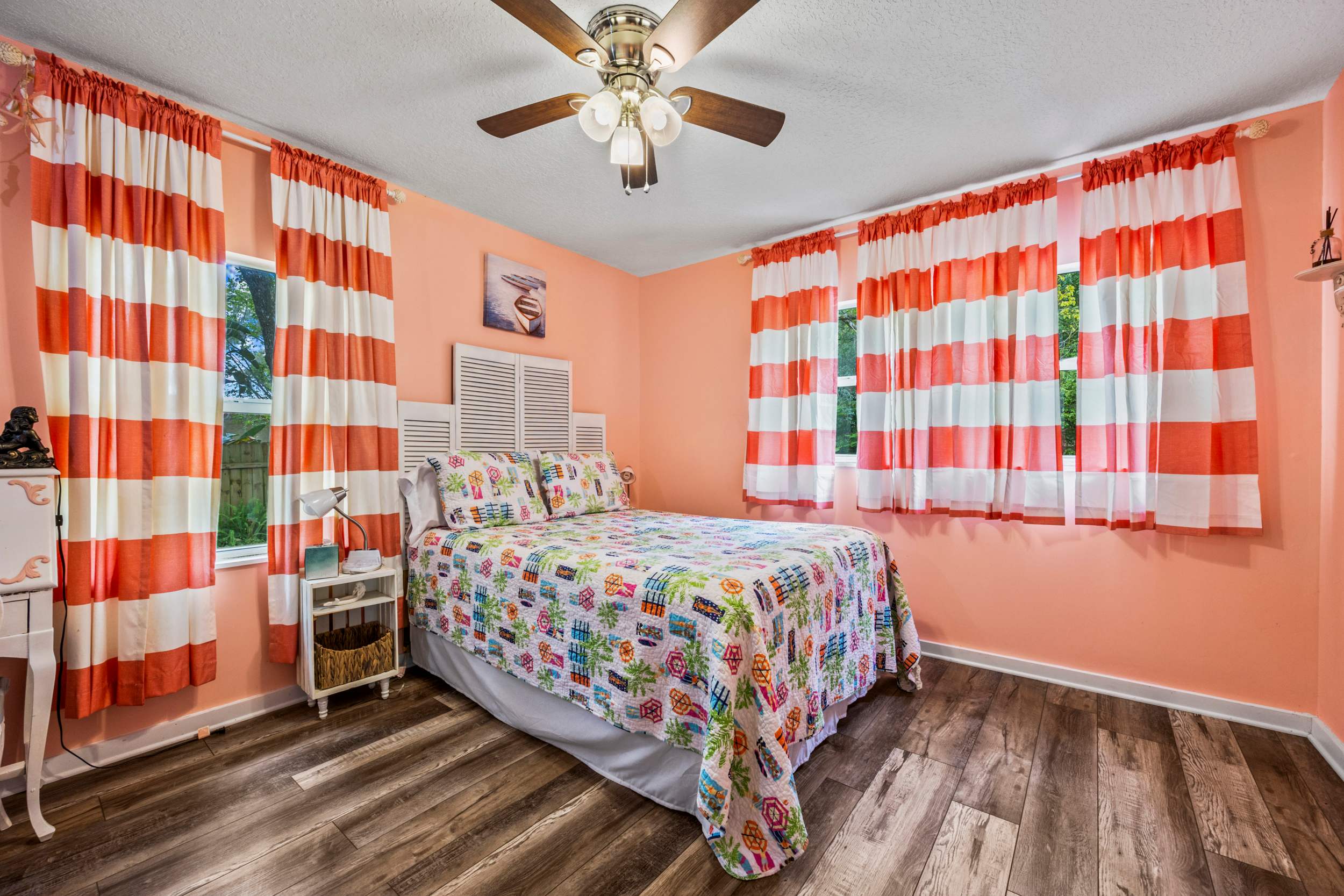 Mermaid Cottage offers the perfect blend of nostalgic mid-century aesthetics and contemporary comforts mixed with a little Mermaid charm., This enchanting 3-bedroom 2-bath home, just across the San Sebastian River from the city center, gladly welcomes you to this dynamic area where vibrant culture meets timeless beauty. A spacious and scenic backyard offers the peace and relaxation you’ve been looking forward to whether dining on a meal al fresco on the deck, gathering around the firepit under the stars, or taking a quiet afternoon nap in the hammock.