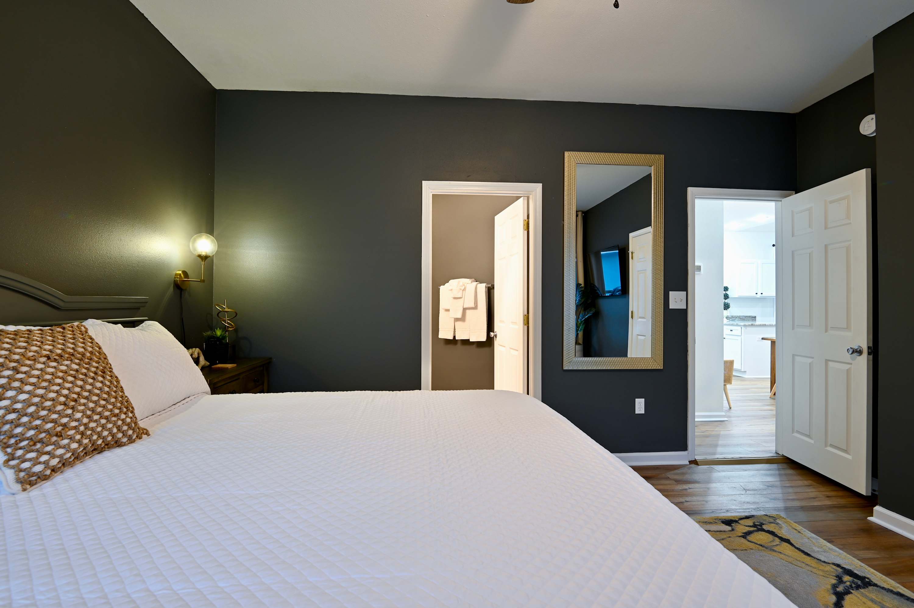 Bedroom #3 includes a king size bed, smart TV, and ensuite bathroom with a dual vanity and shower/tub combo.