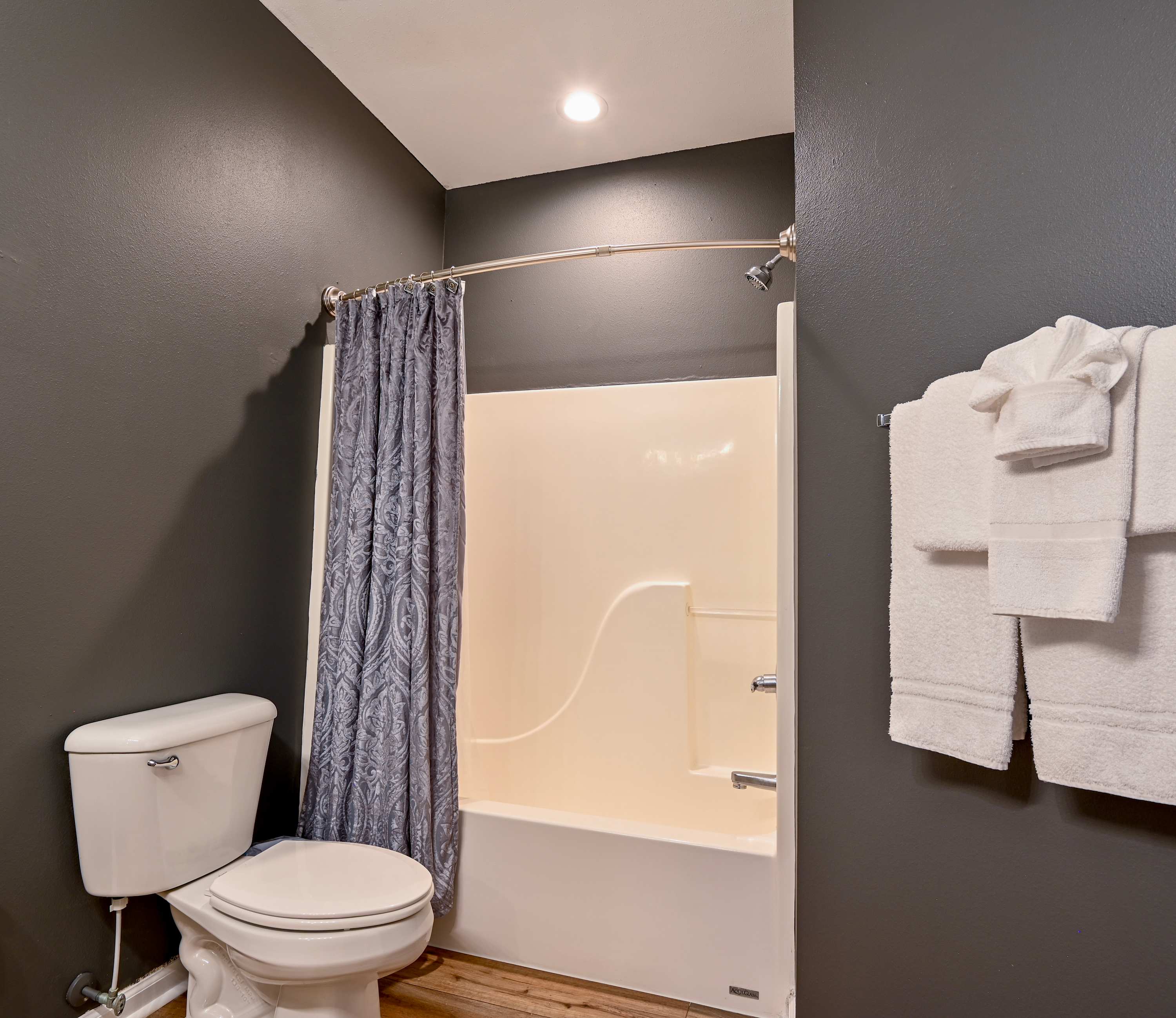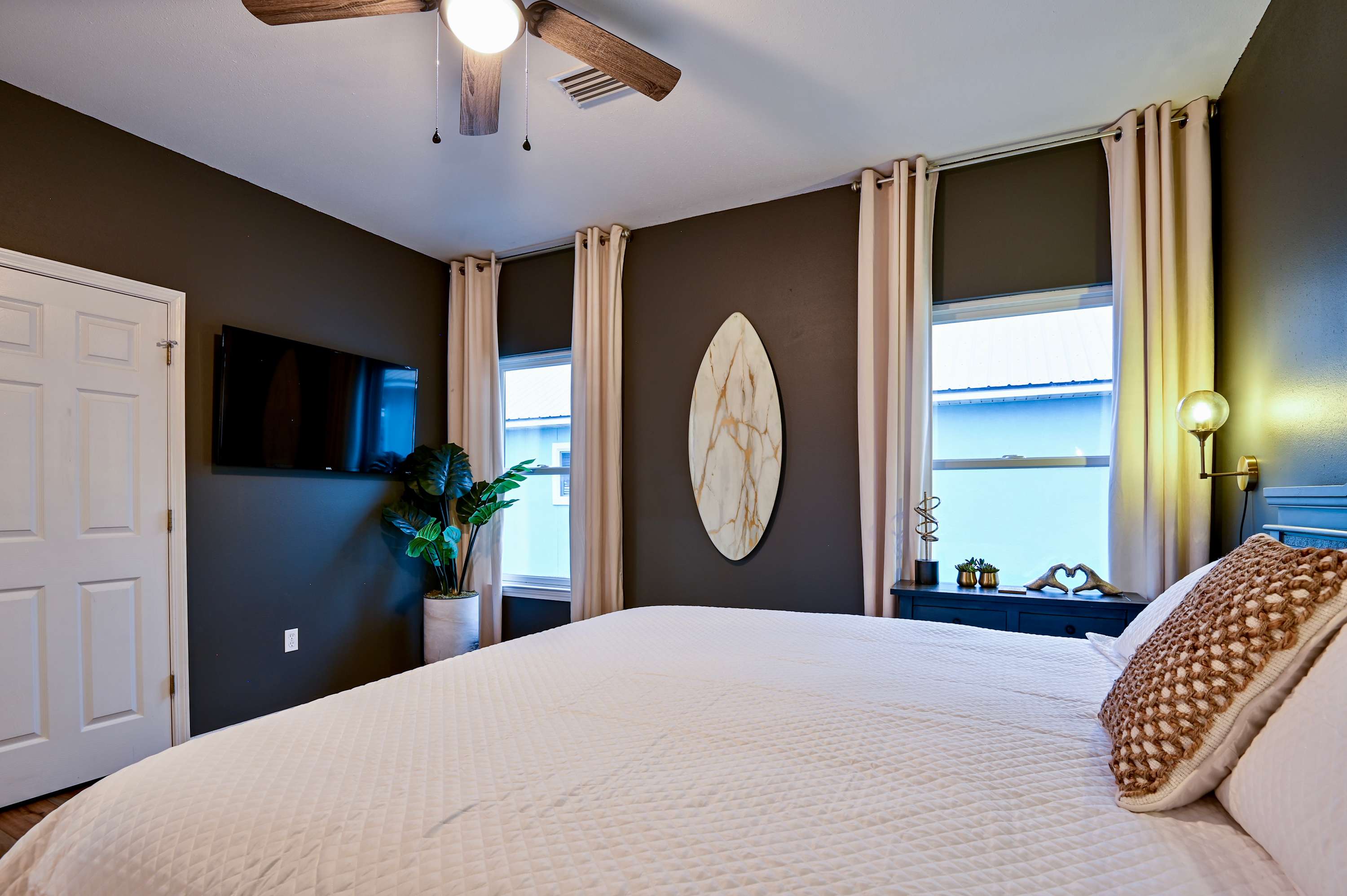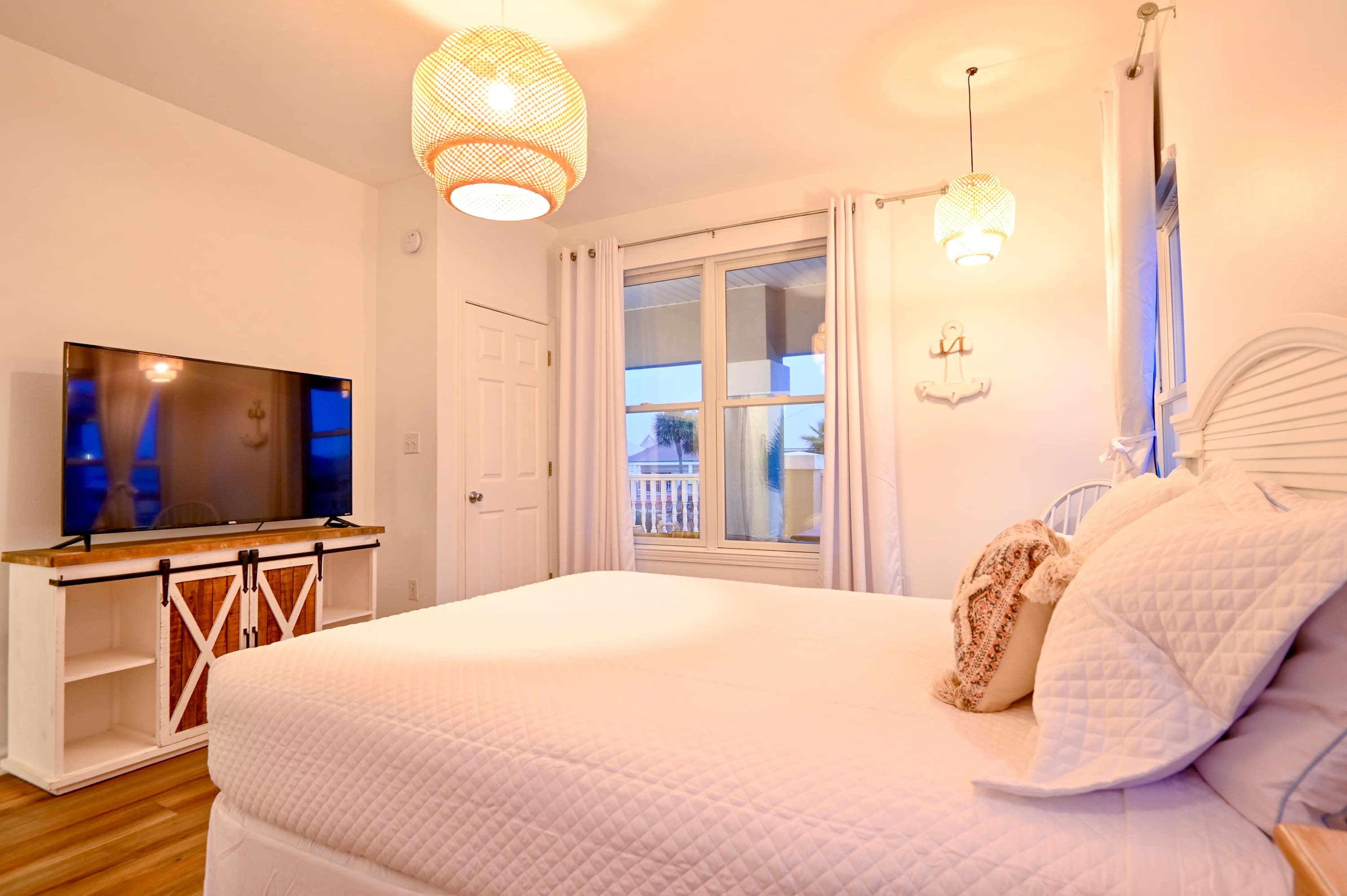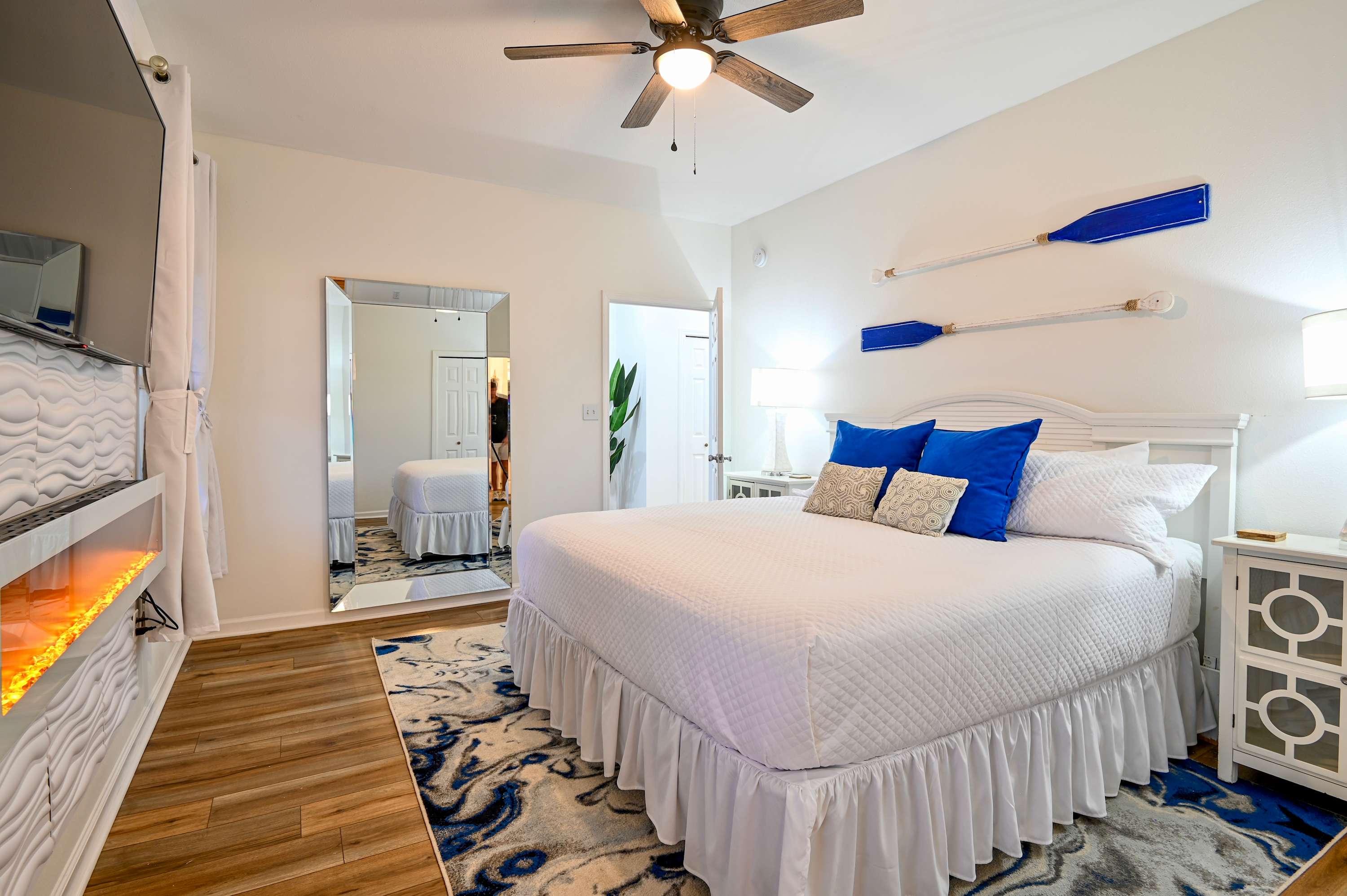 Bedroom #4 includes a king size bed, smart TV, and ensuite bathroom with a single vanity and shower/tub combo.