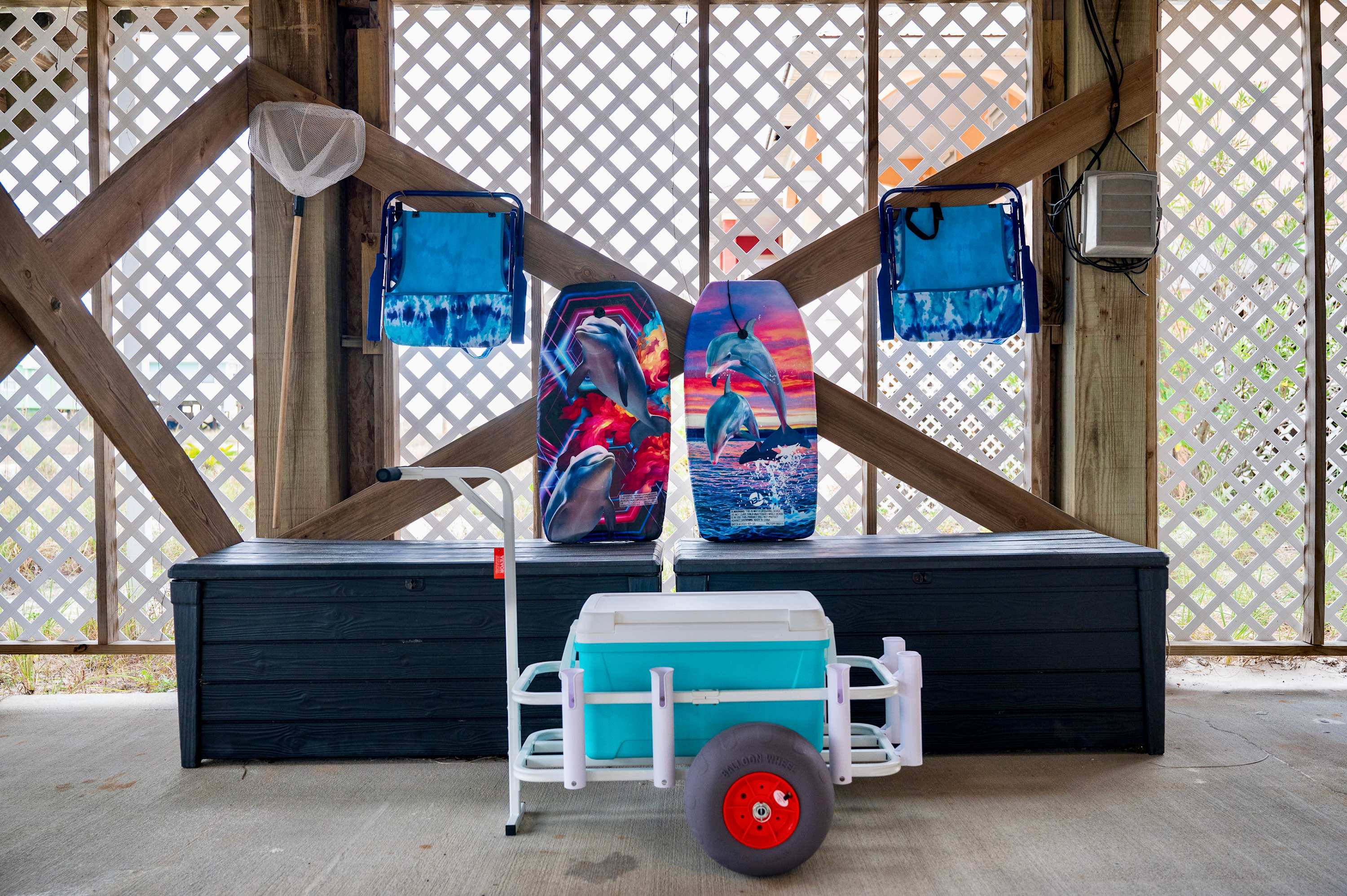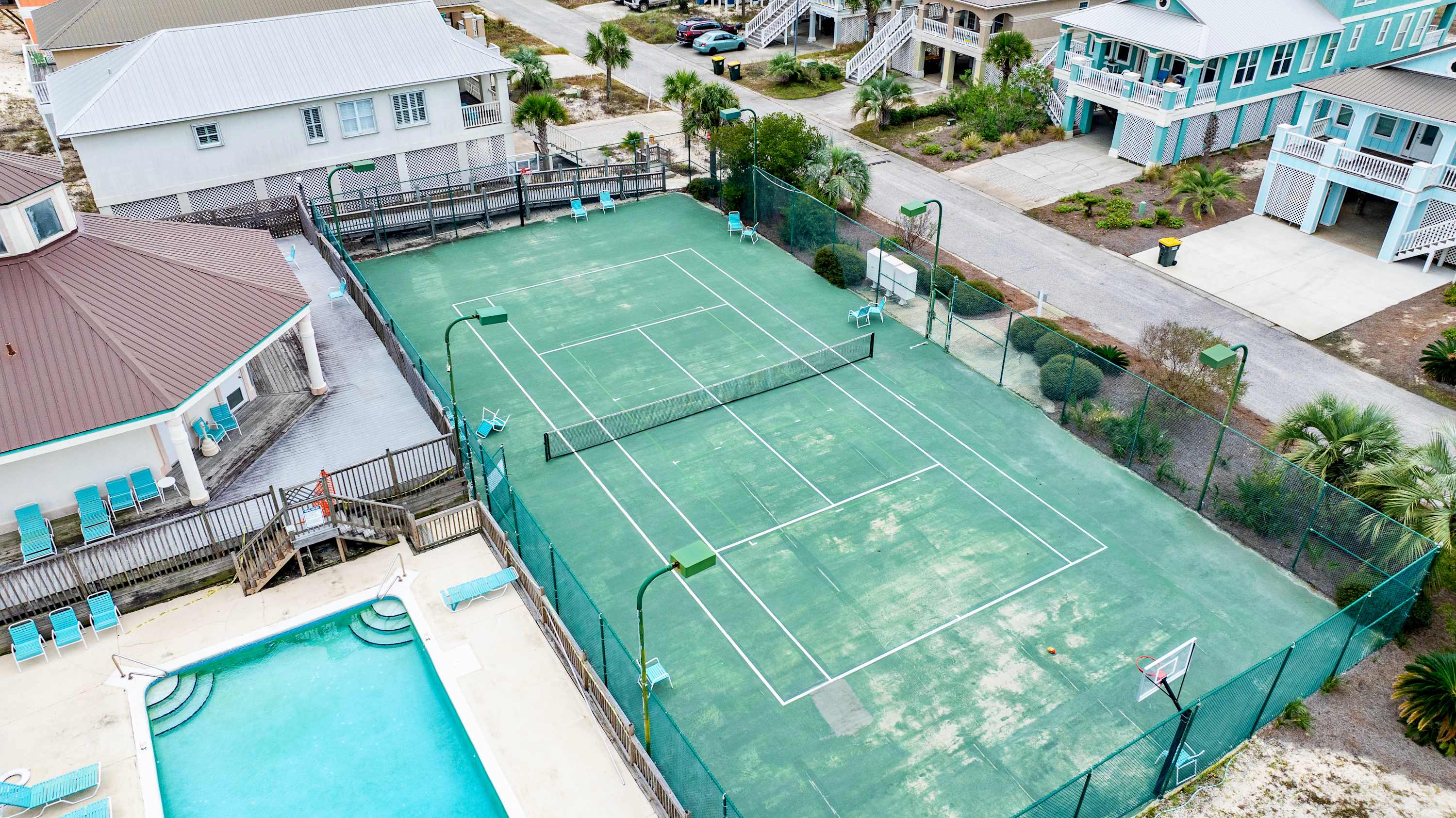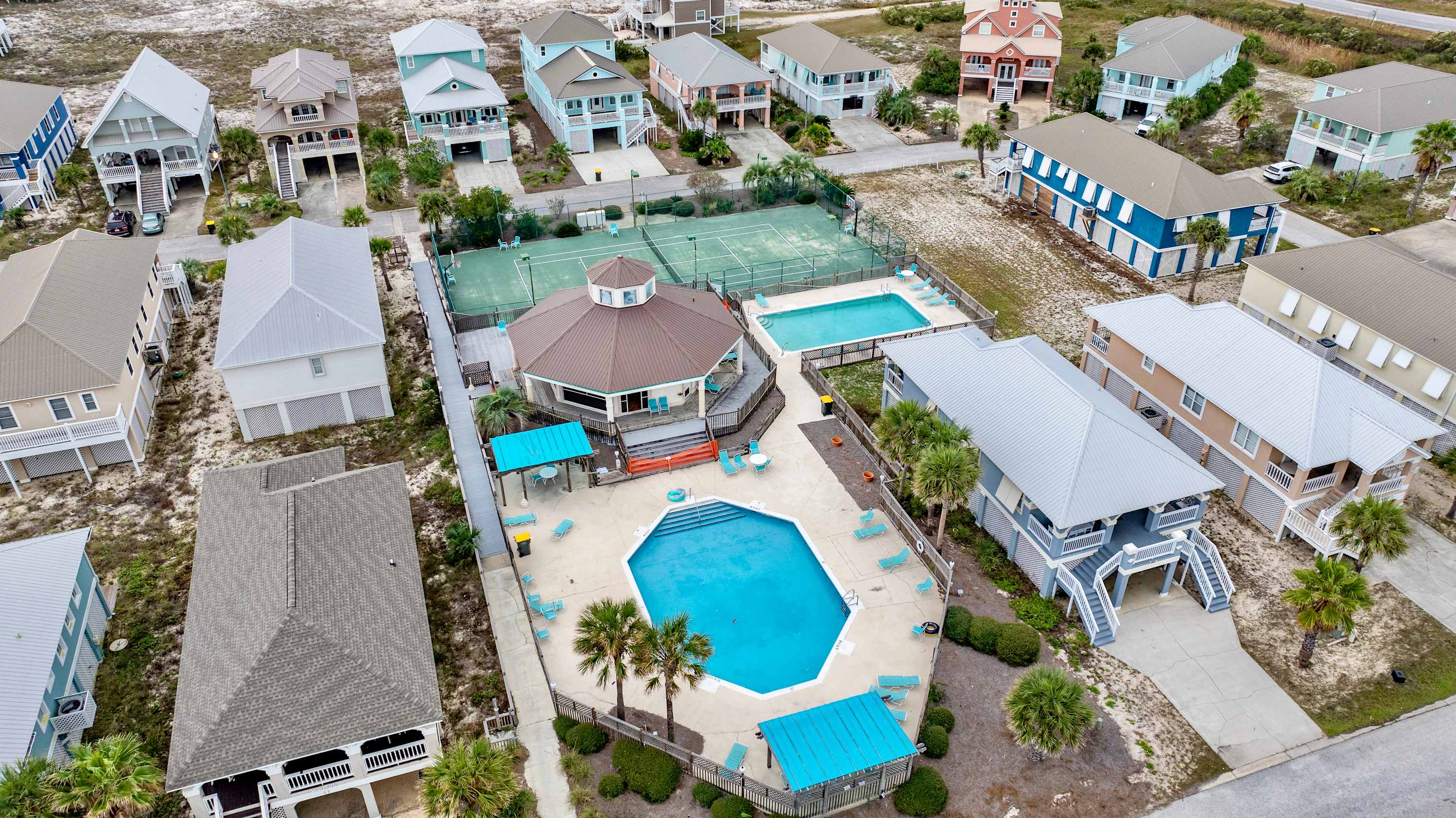 Pack up the sunscreen and beach bag and head out on foot for a day on the sand, fulfilling your daily quota of that fresh salty breeze. If you prefer to stay inland, this community packs a host of desirable amenities right on site including sparkling inground pools with sundecks and lounge seating, tennis and basketball courts, and a screened-in clubhouse. At the home itself, strike up the competition at the pool and ping pong tables, afterward braving the elements with a dip in the cold plunge. Mix up some cocktails at the tiki bar, heading up to the deck to sip in style while stretched out on the comfortable sofa seating.