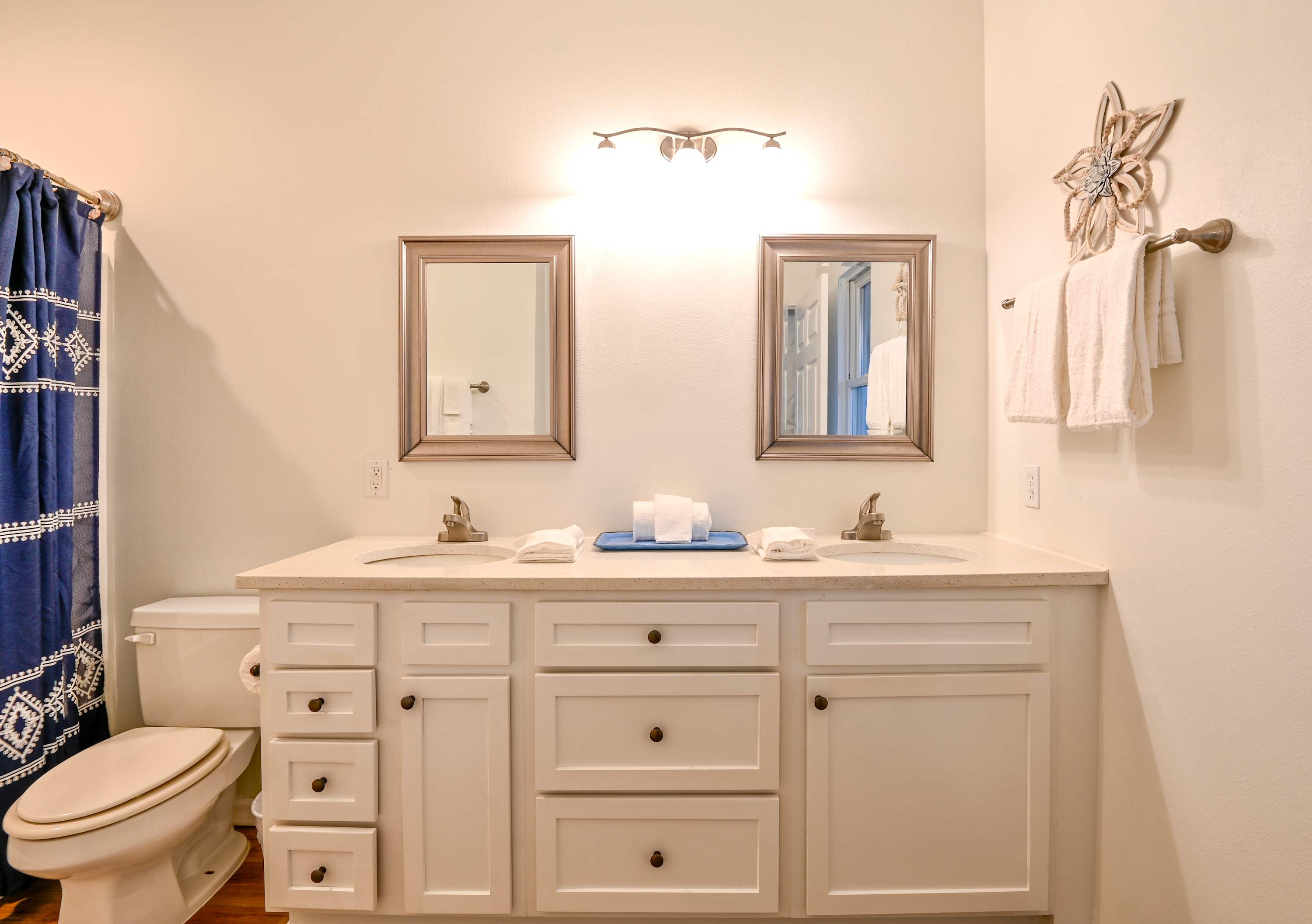 Away from the more high traffic areas of the public beaches and downtown Gulf Shores community, the welcoming 4-bedroom home of White Caps is a peaceful haven designed to fulfill all your beach vacation desires. Housed within the quiet, family friendly community of Heritage Shores, you’ll be advantageously sandwiched between the expansive Gulf of Mexico and the more tranquil Bon Secour Bay, with all manner of water-themed activities at your fingertips! Your stay also includes $400 in FREE area attraction tickets! You’ll receive one free ticket daily to the best area attractions including the Theme Park at OWA, offshore fishing, premier golf courses, dolphin cruises and more!