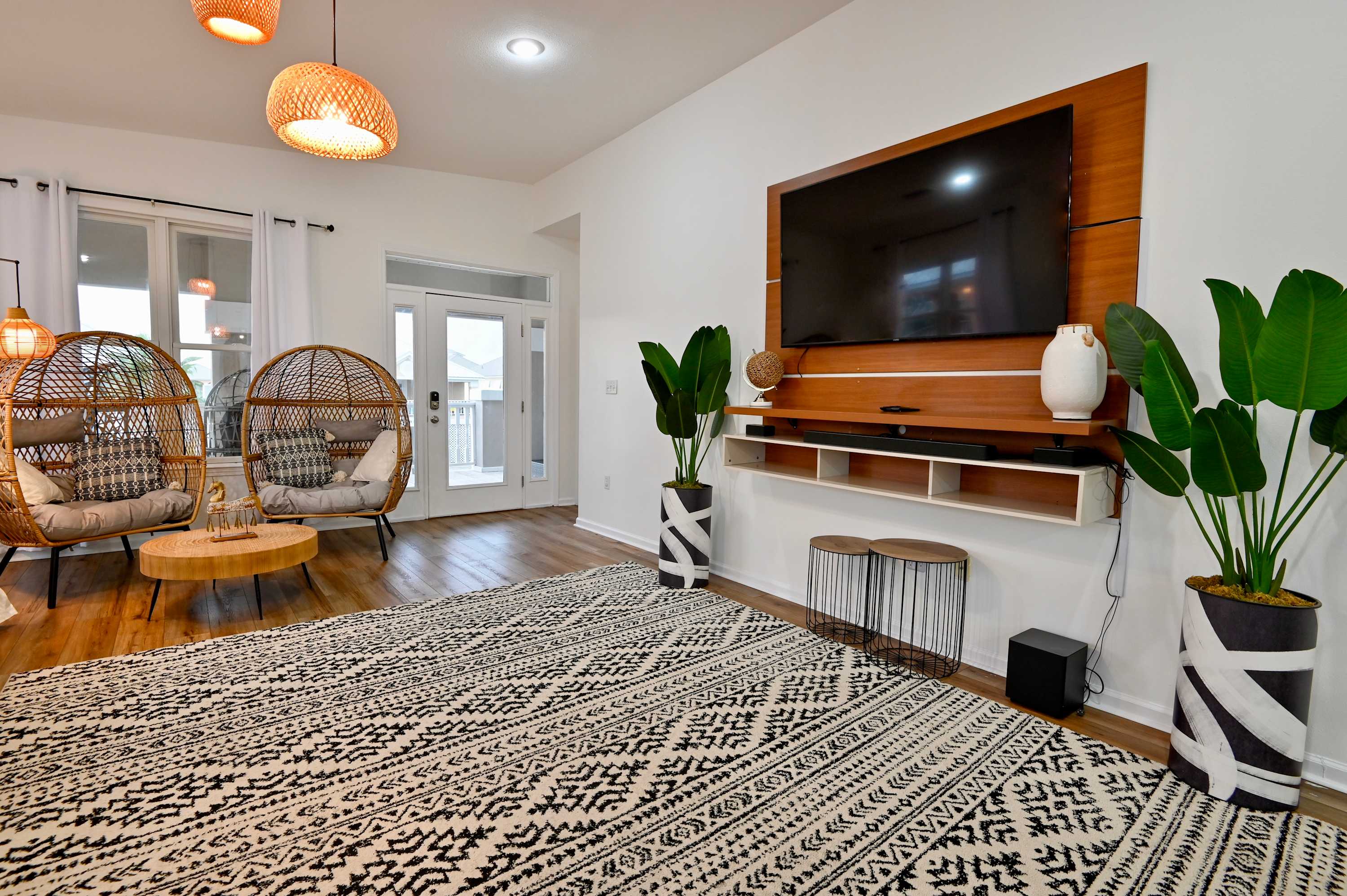Relax at the newly built Tiki bar with a 55" TV, ice maker, and fridge. Enjoy a cold plunge, challenge friends to ping pong, or try your hand at axe throwing—all in one fun, tropical backyard!