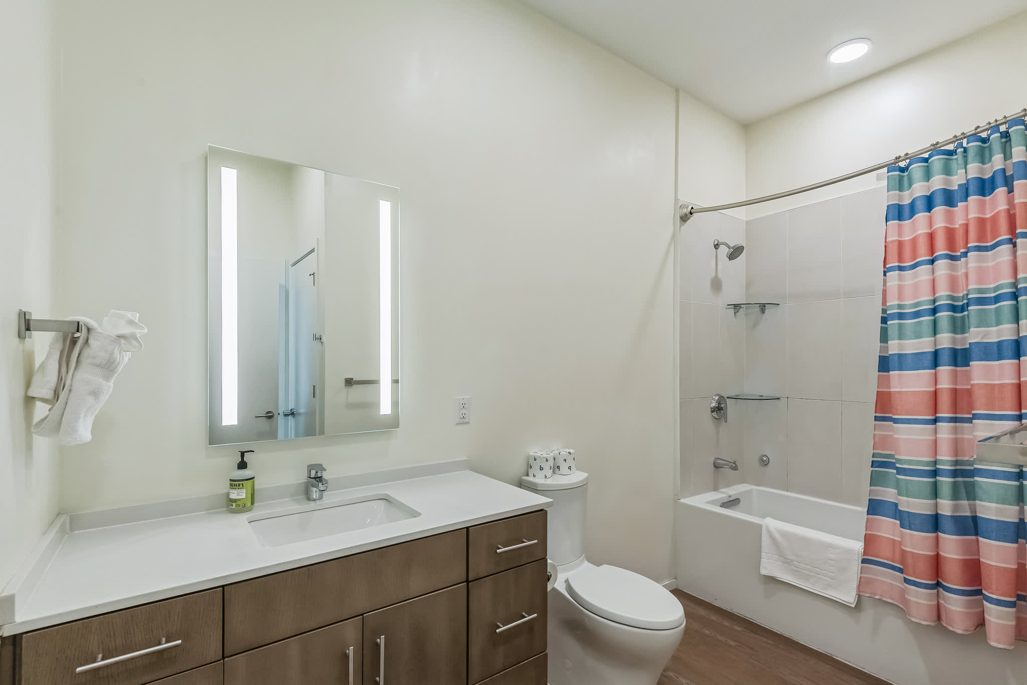 The home also includes an additional full guest bathroom with a single vanity and shower/tub combo.