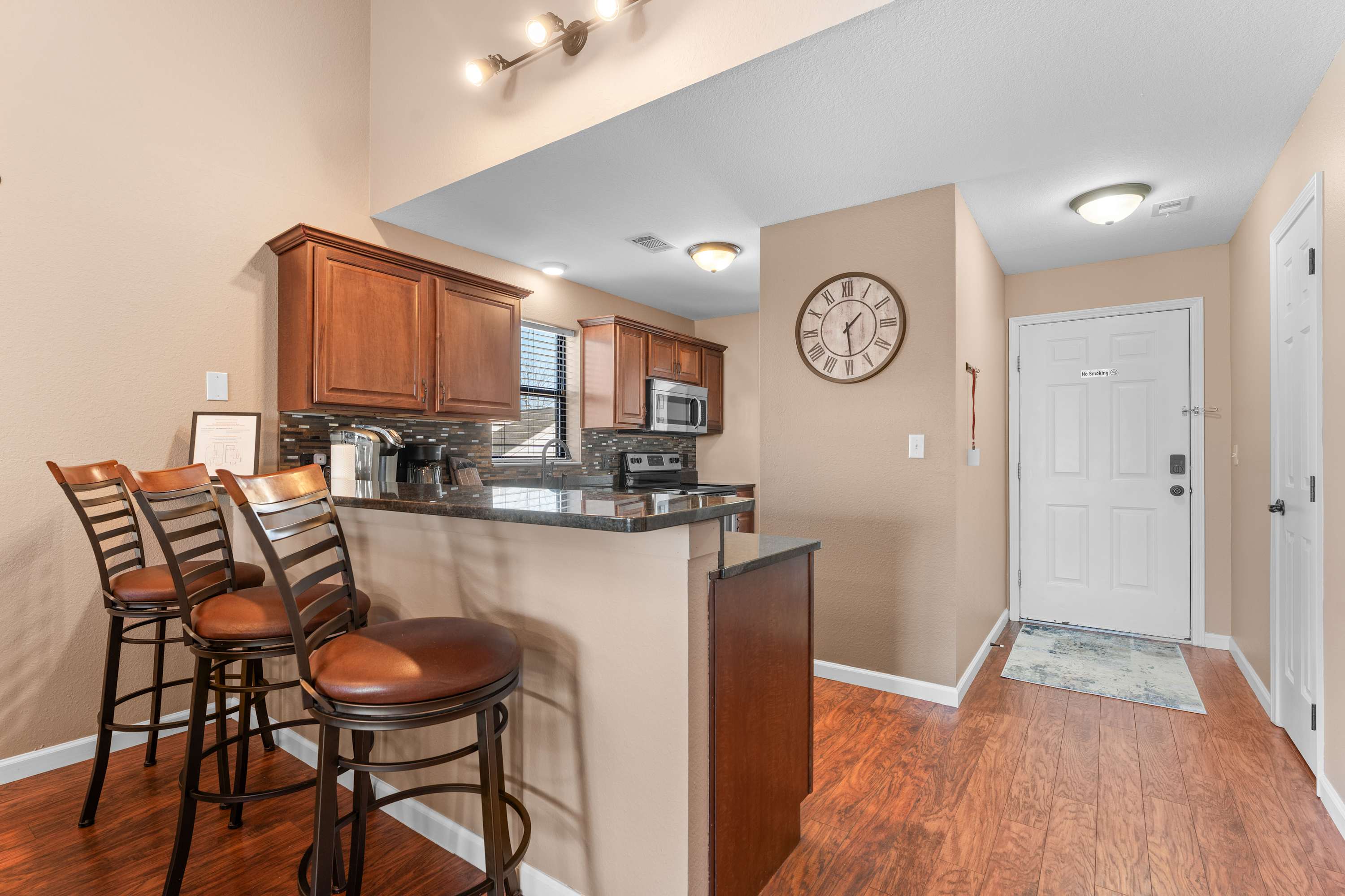 This is a "Non-Smoking" property. Smoking or vaping inside a unit is not permitted. You will be fined $500 plus mitigation costs.