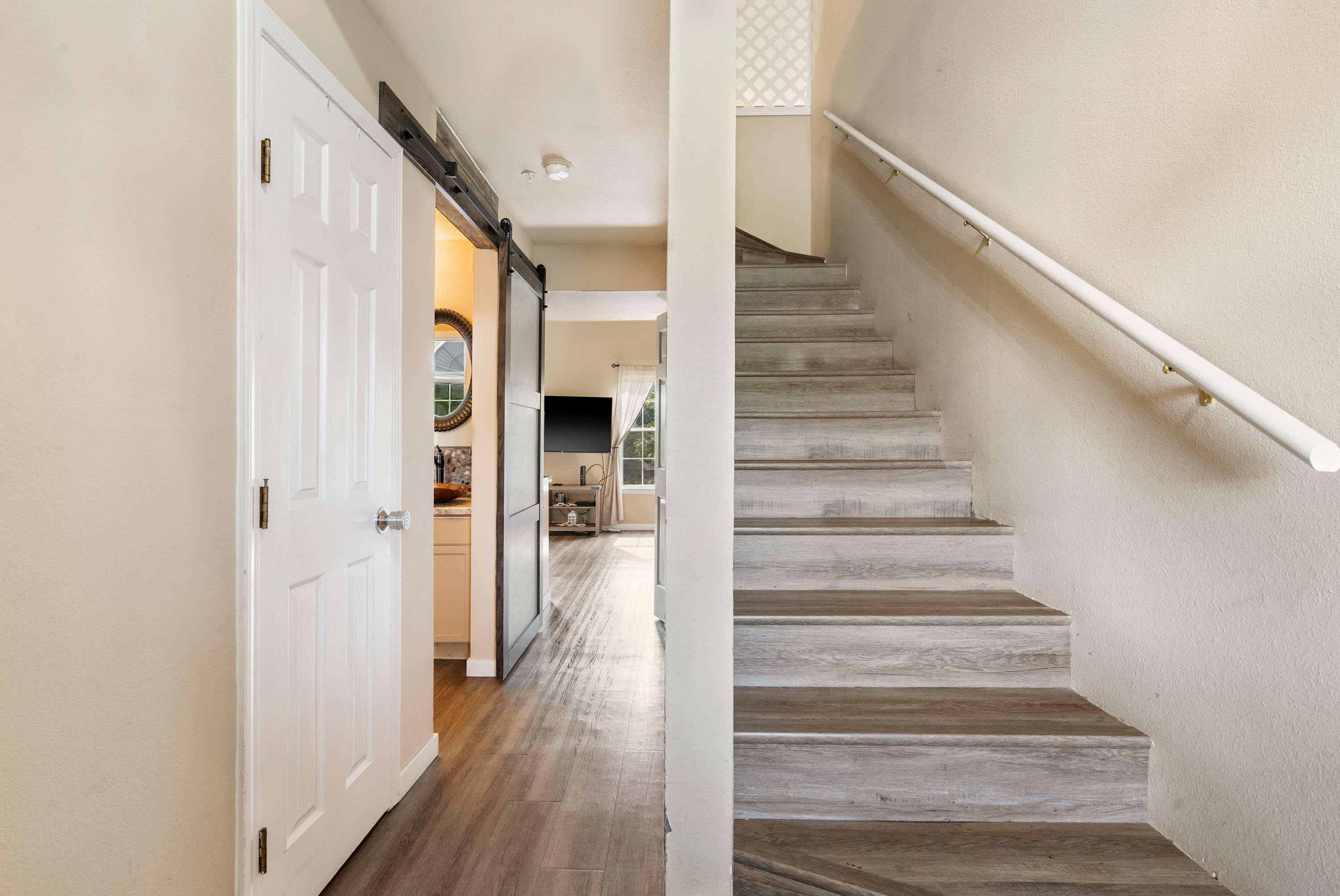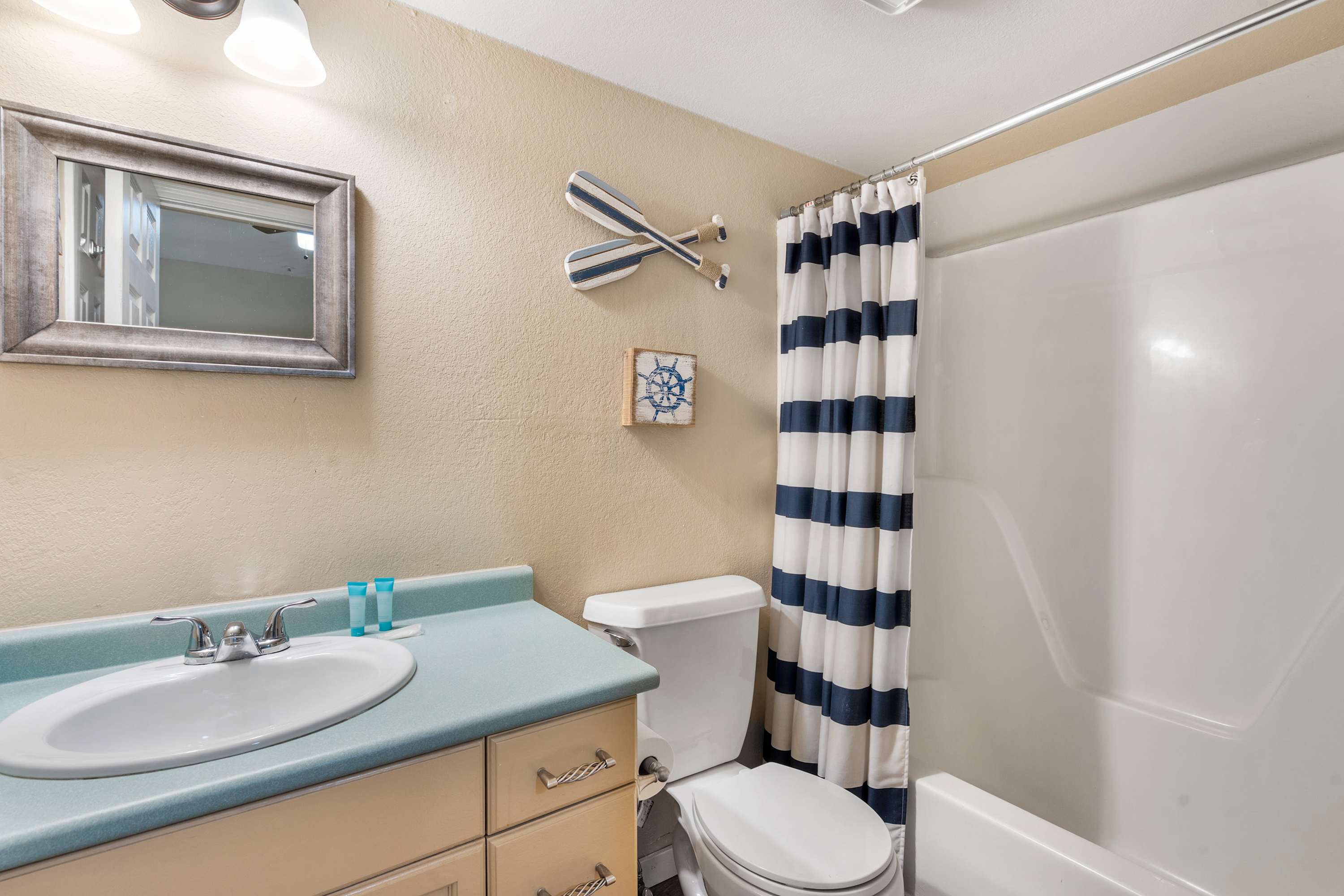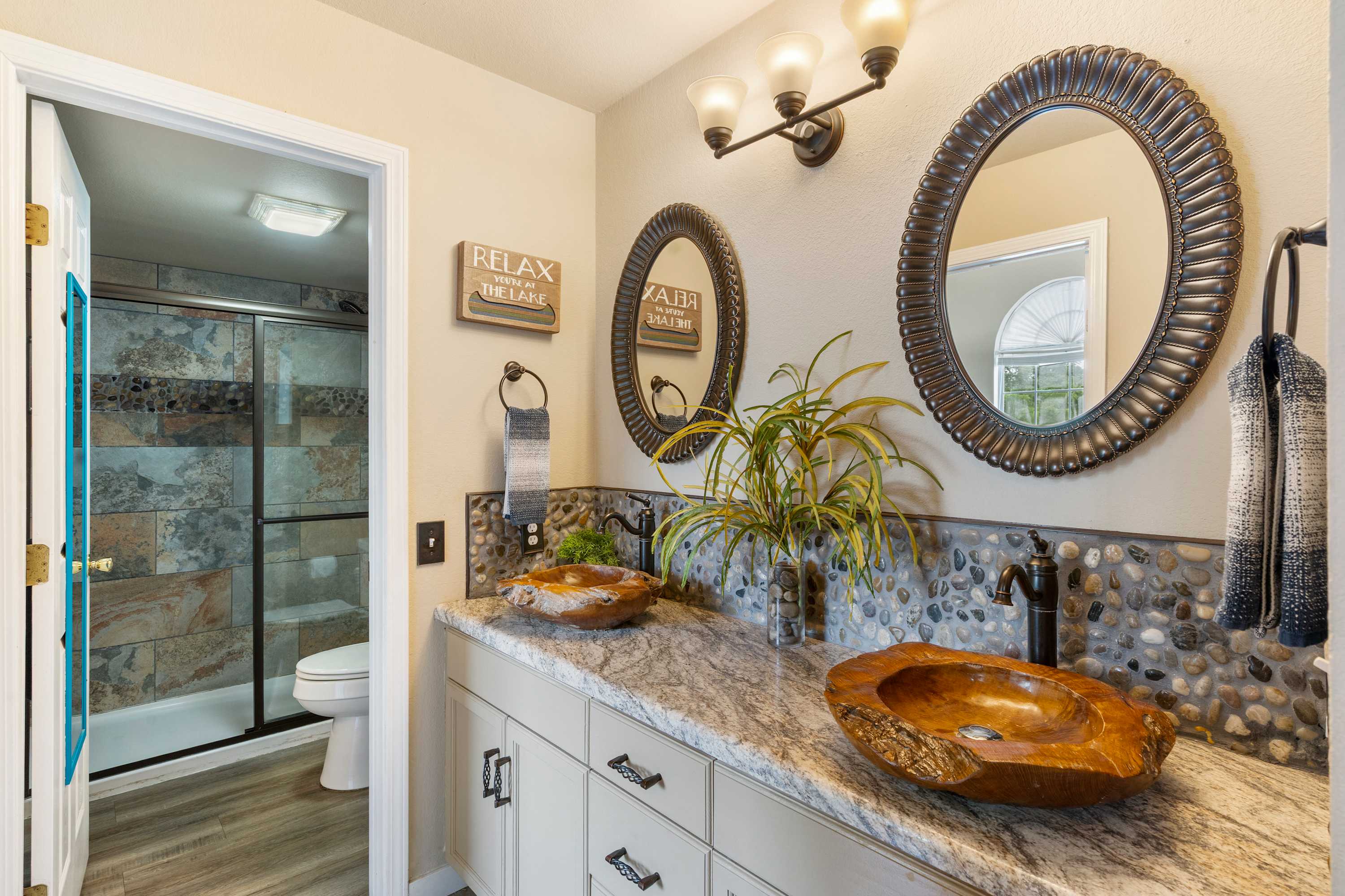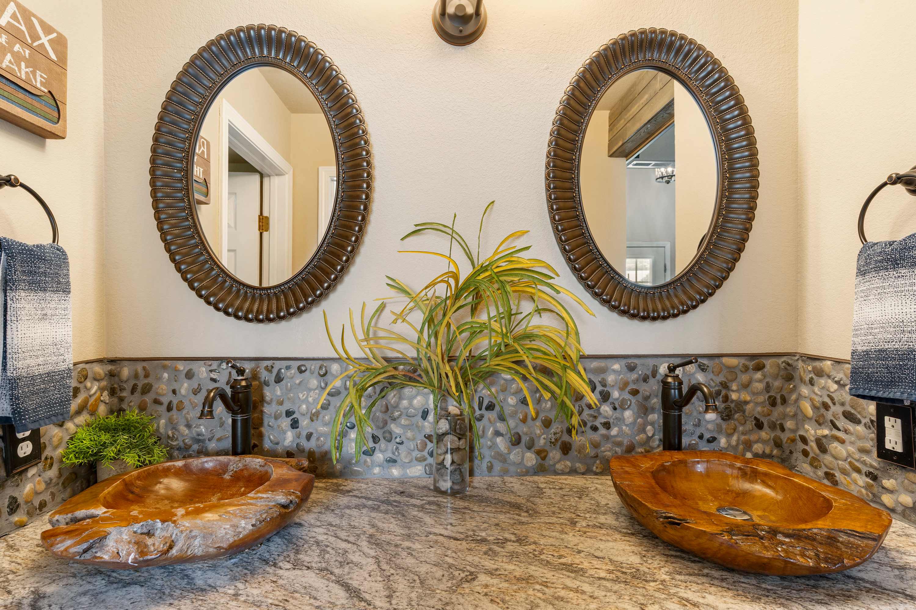 Begin your mornings out on the home’s spacious balcony, enjoying your fresh cup of coffee with breakfast while you soak up the sights and sounds of the gently flowing river. As you head indoors to get ready for the day, take in the soaring vaulted ceilings, enhancing the openness of the main area as well as the abundance of natural light. A comfortable sofa allows you to unwind after busy days exploring, settling in to stream all your favorite shows on the mounted smart TV. The kitchen comes fully equipped for all mealtime endeavors whether you prefer to prepare homecooked meals or simply unpack takeout from a local restaurant. The circular dining table keeps you well connected during mealtime, seating 4 for snacks and formal meals alike.