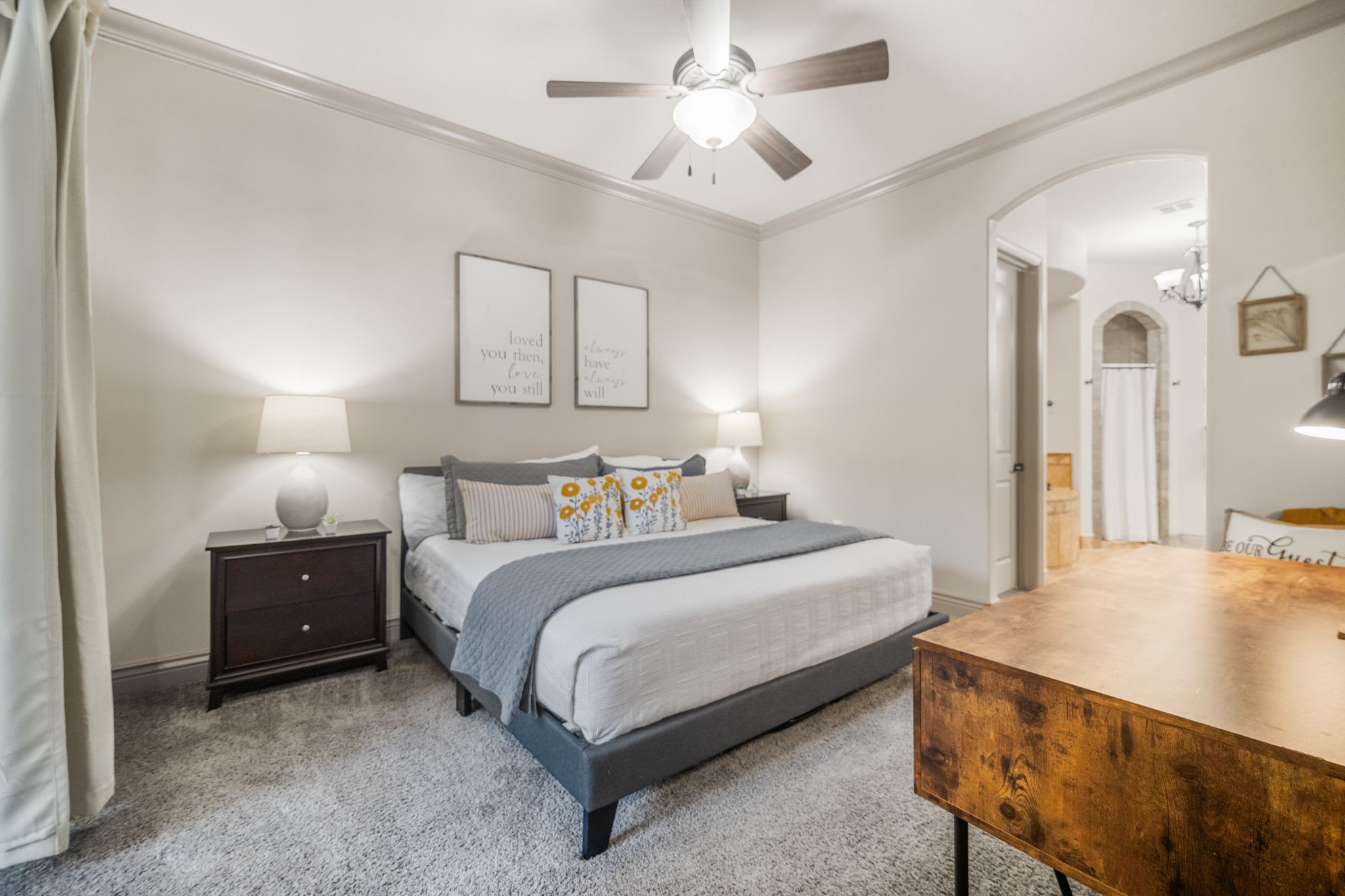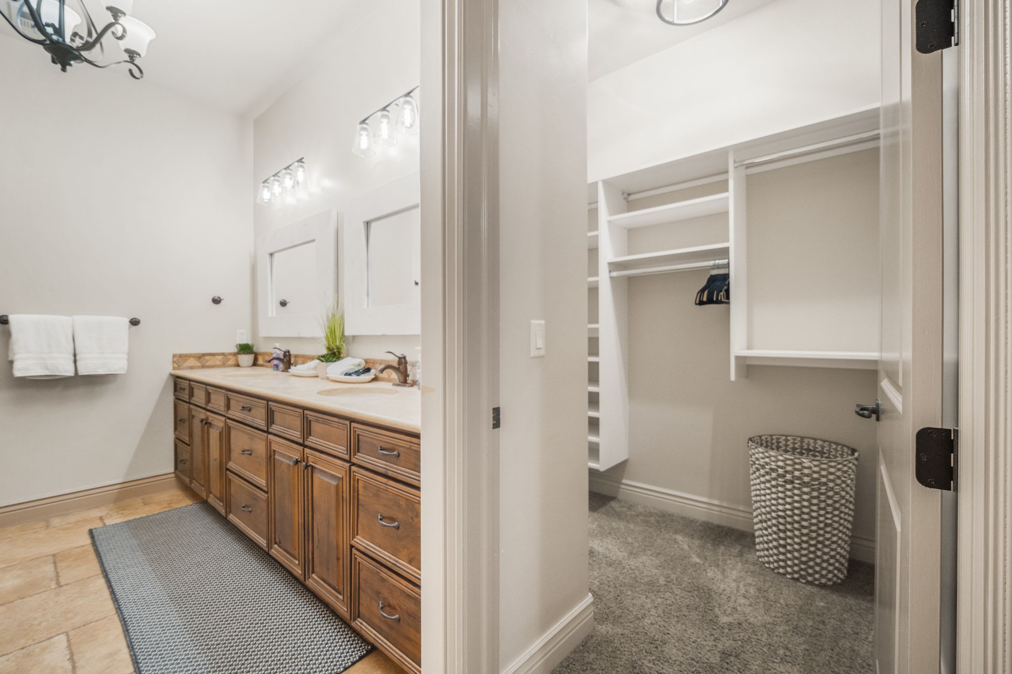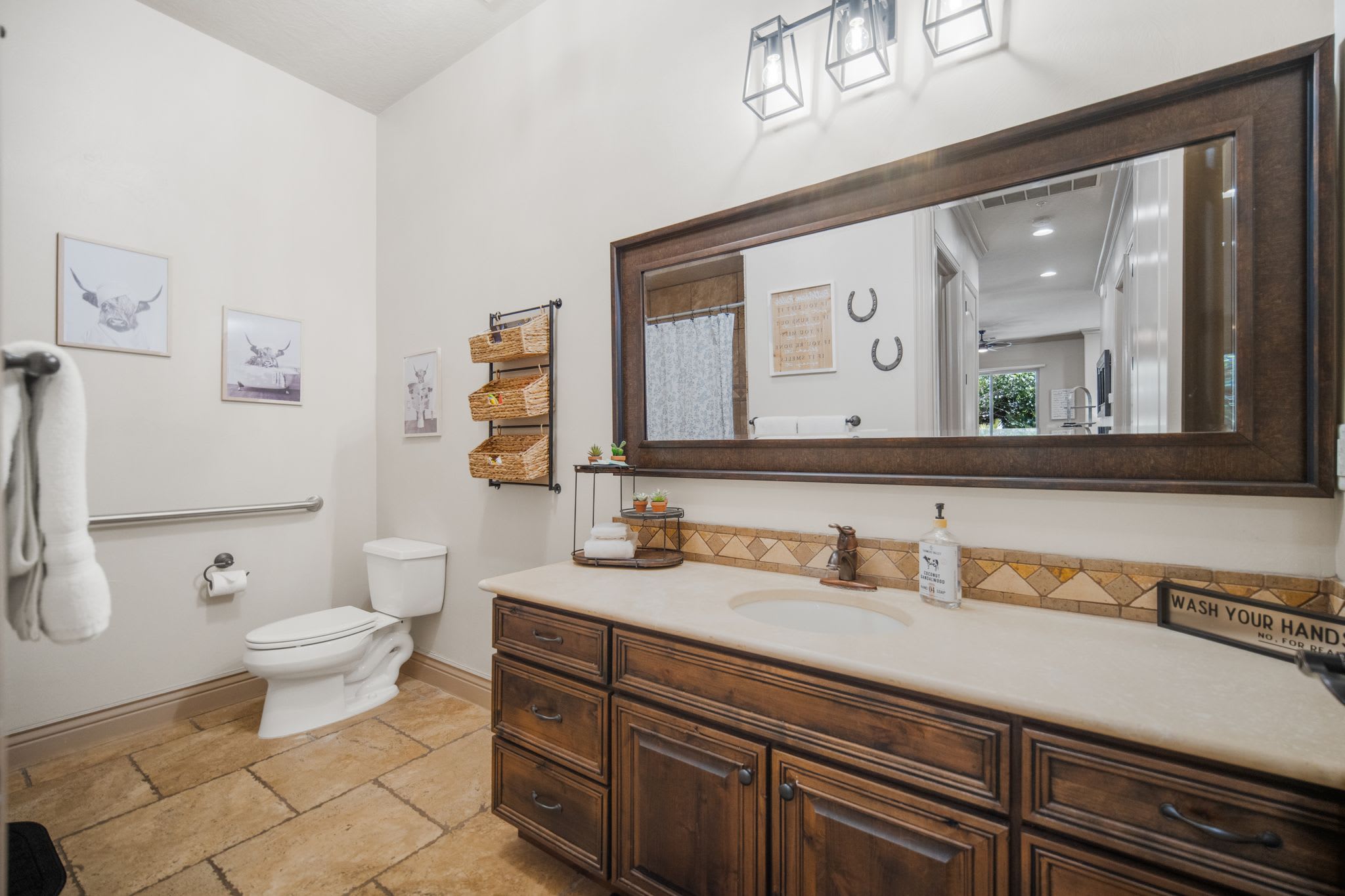 The home includes an additional full guest bathroom with a large vanity and shower/tub combo.