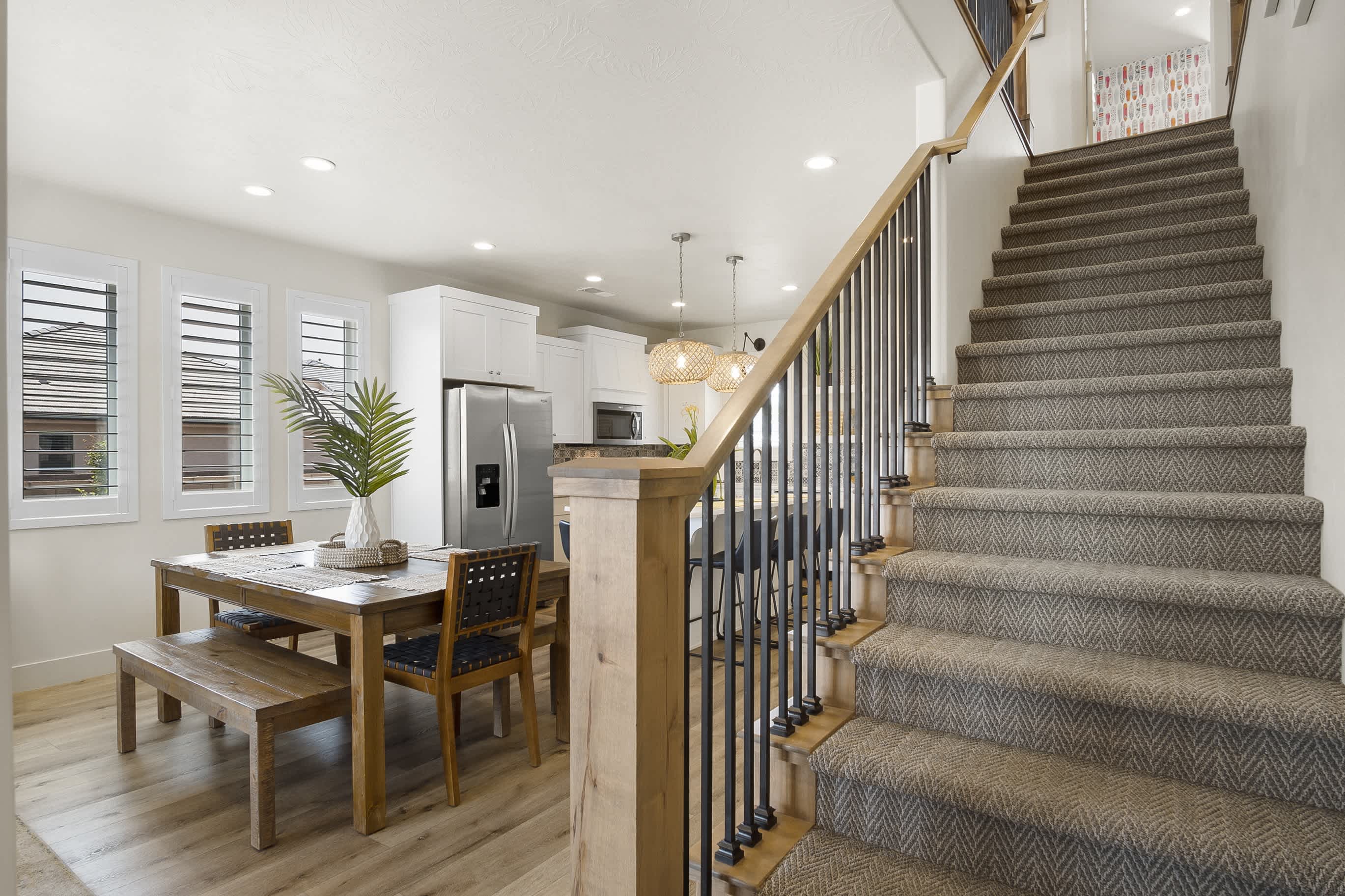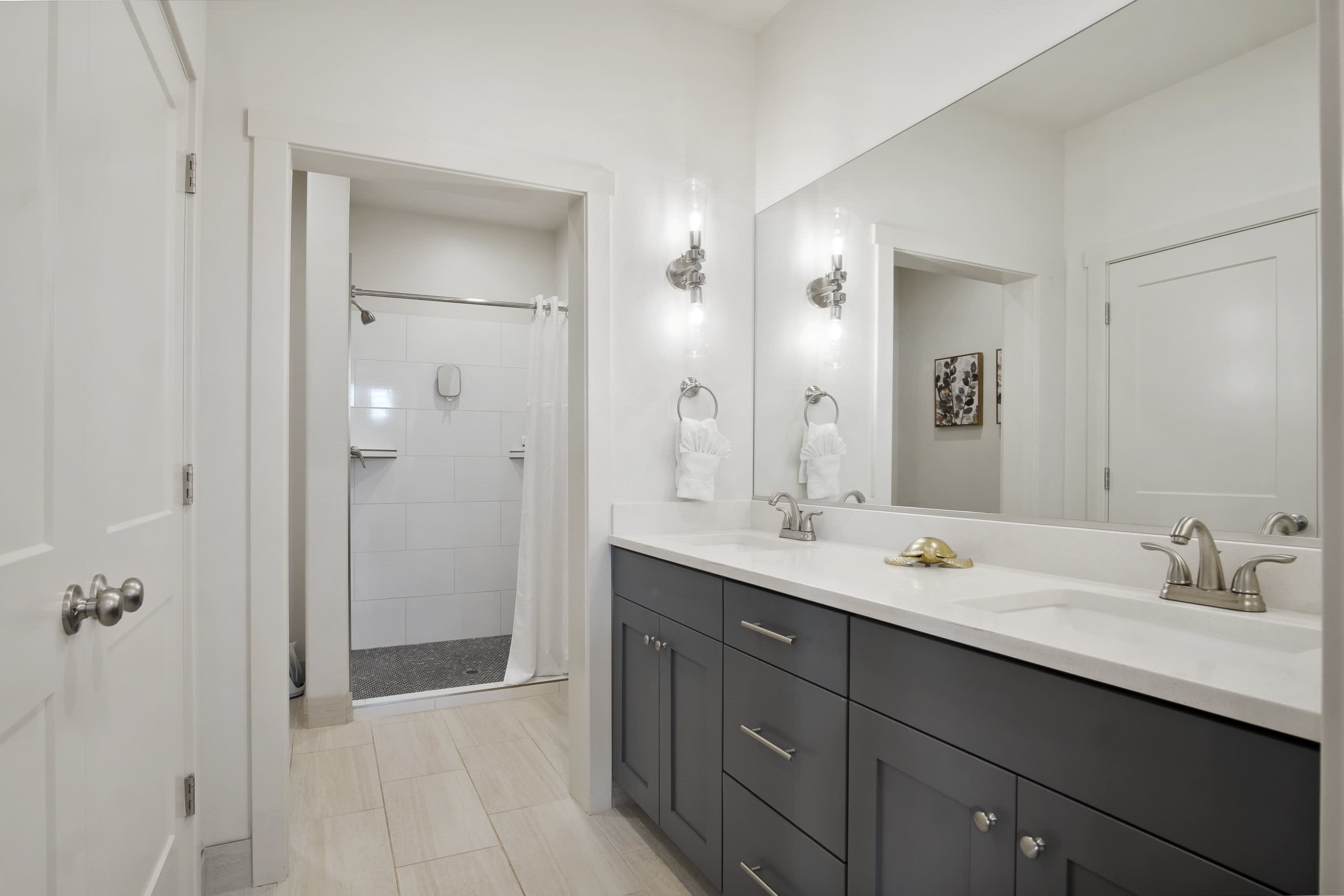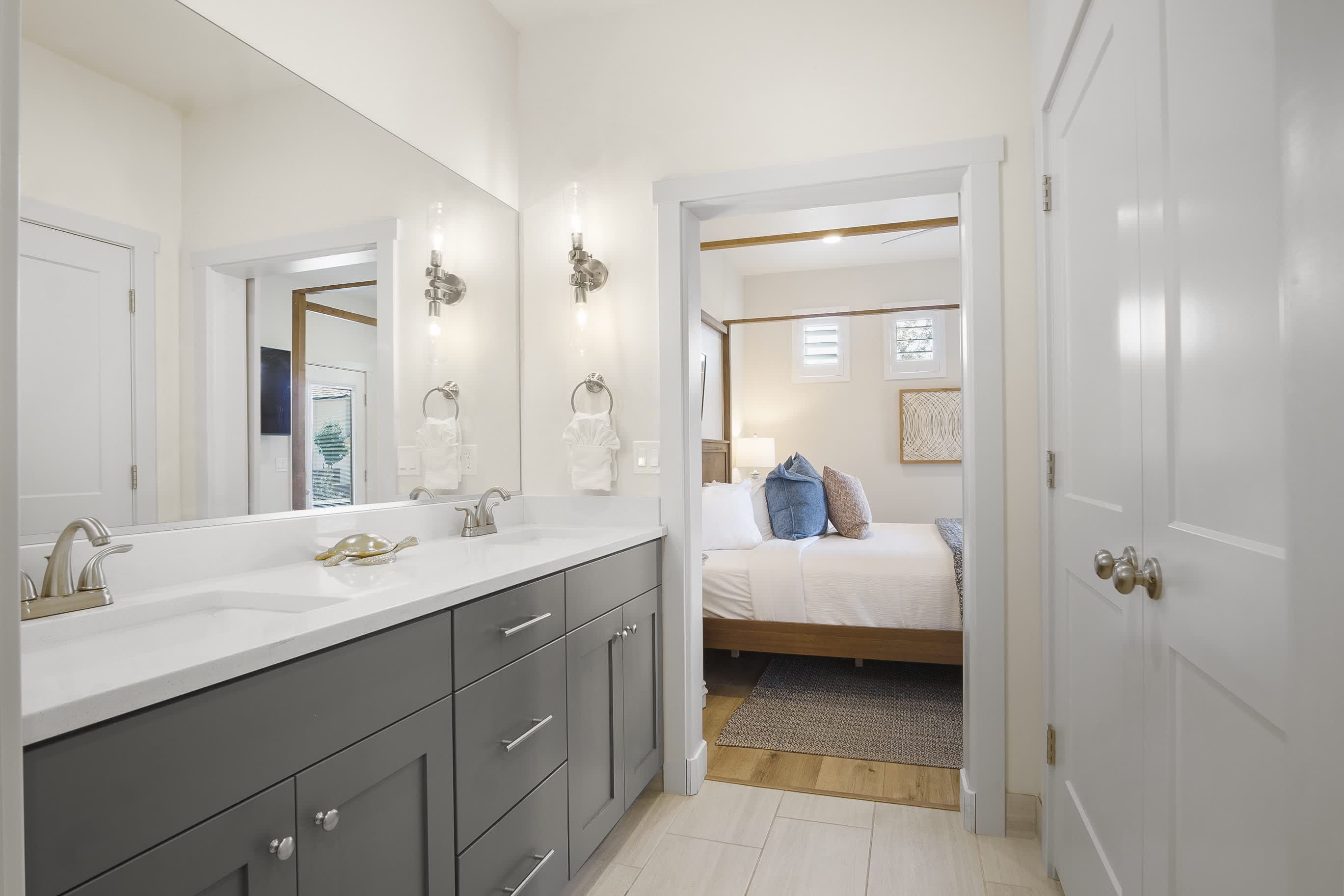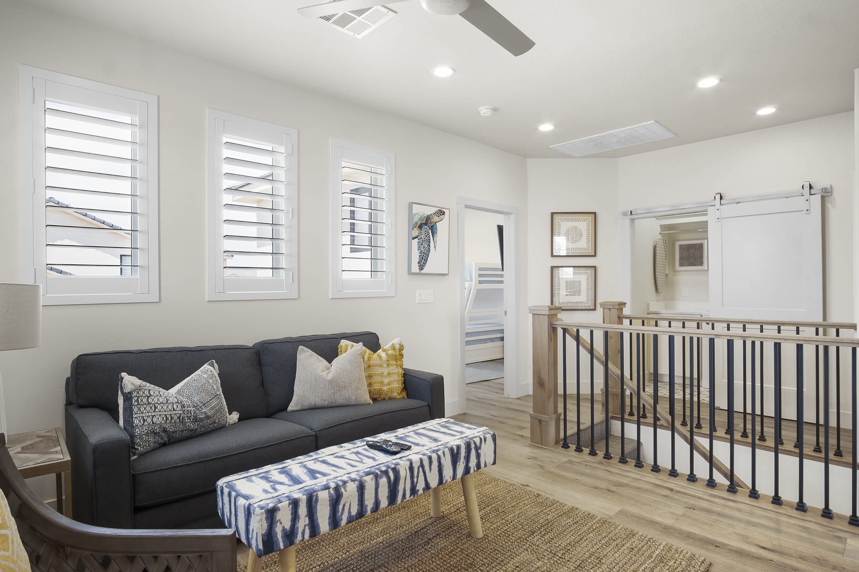When you’re not out and about taking in all that this area has to offer, peaceful, welcoming spaces throughout the home have been artfully curated with rich furnishings and an abundance of amenities to ensure your ultimate satisfaction. The living room offers cozy sofa and armchair seating facing a large, mounted smart TV. Thanks to the spacious, open floor plan, this area becomes the center of entertainment that can be enjoyed from the dining room and kitchen as well, ensuring that no one feels left out of the action or conversation. If you’re looking for a little more privacy or some quiet downtime, a second living area on the second level features a comfy sofa seating and a smart TV, also the perfect location for a kid’s movie night.