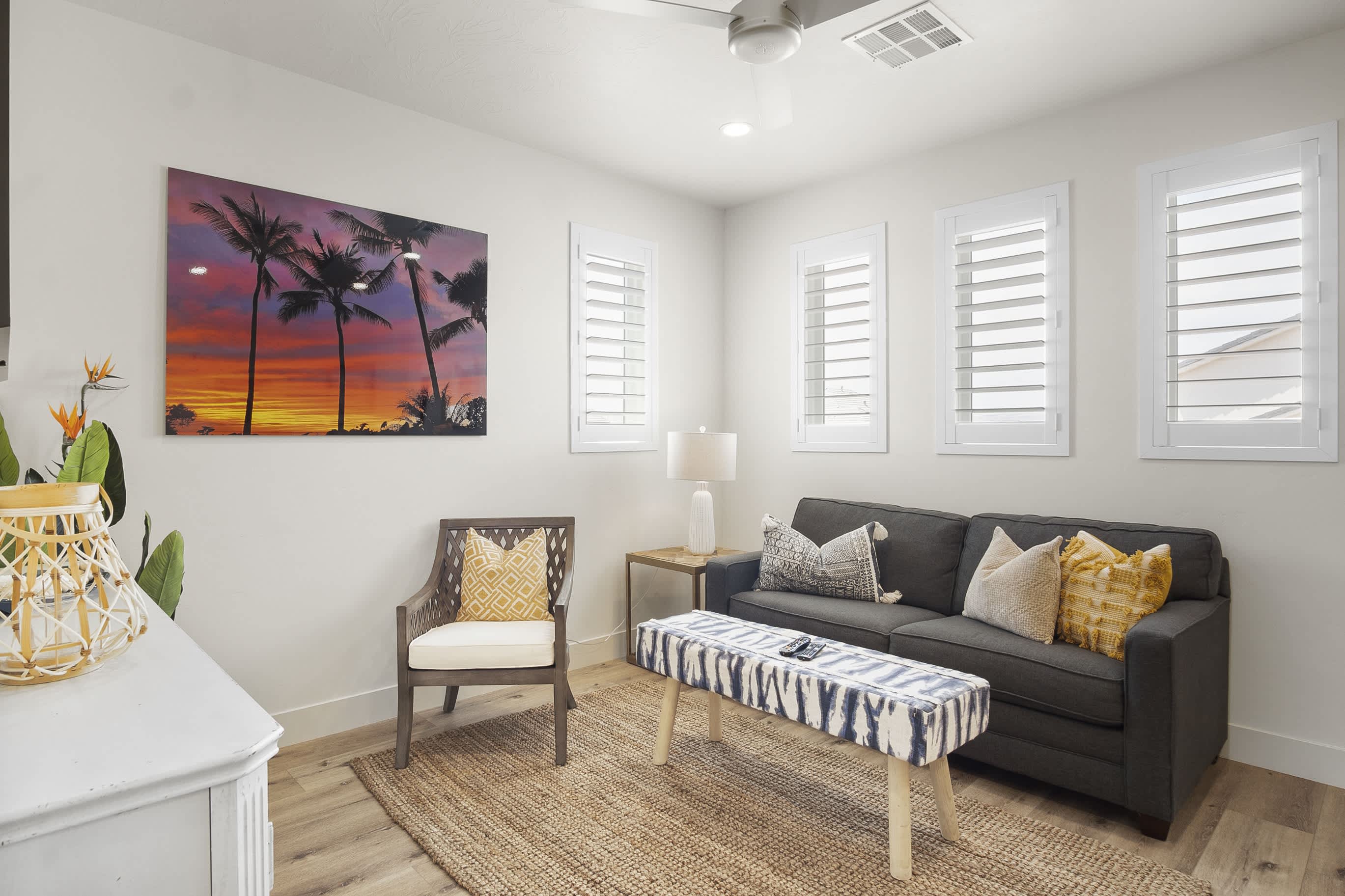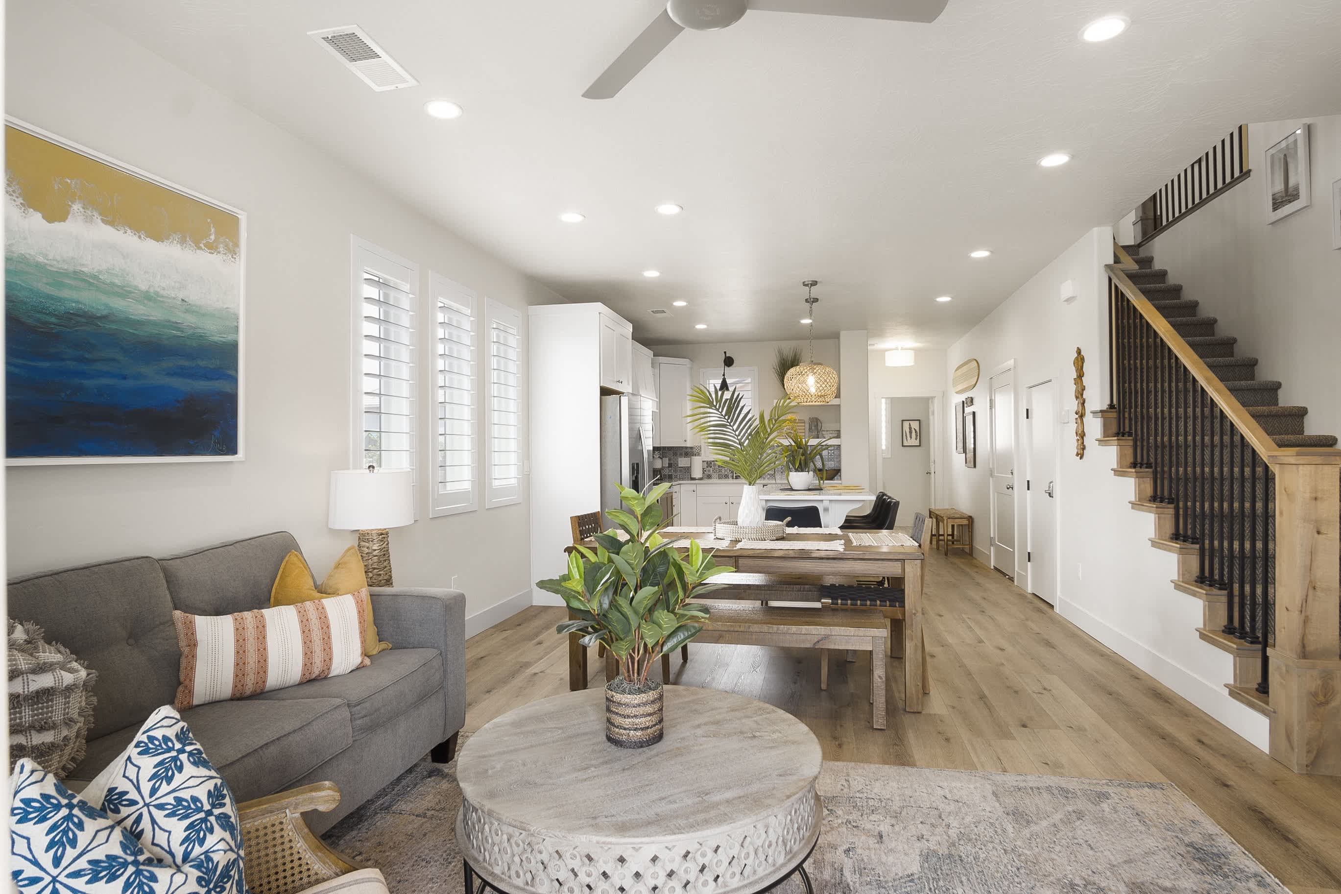 Experience the relaxed vibe of the Hawaiian Islands while in the middle of southern Utah in this attractive Hawaiian themed townhome. Lucious green ferns and plants are staged throughout, complimented by beach and ocean-themed décor to create an effective state of tranquility.