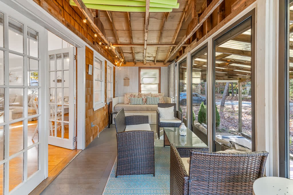 Inside this beautiful 3-bedroom home, the style of the Cape surrounds you with classic, neutral tones and décor complimented by comfortable furnishings. The living room offers plush sofa and armchair seating with a mounted smart TV available to stream all your favorite shows. The chic dining room table can seat 6 for all your meals, prepared in the modern kitchen just steps away. With stainless steel appliances, a coffee bar, and ample cabinetry stocked with cookware and dining ware, preparing delicious home cooked meals is a breeze. Take each morning’s freshly brewed cup out onto the screened-in porch where lounge seating awaits alongside scenic views of the outdoors. If you’d prefer to immerse yourself in as much fresh air as possible, the shaded patio and spacious backyard include outdoor seating for both dining and relaxing. You’ll be delighted to find the garage stocked with beach-centric amenities to make your trip to the water the most fun it can be, and the convenient outdoor shower will help you get all the sand off before heading inside after your exciting day out and about.