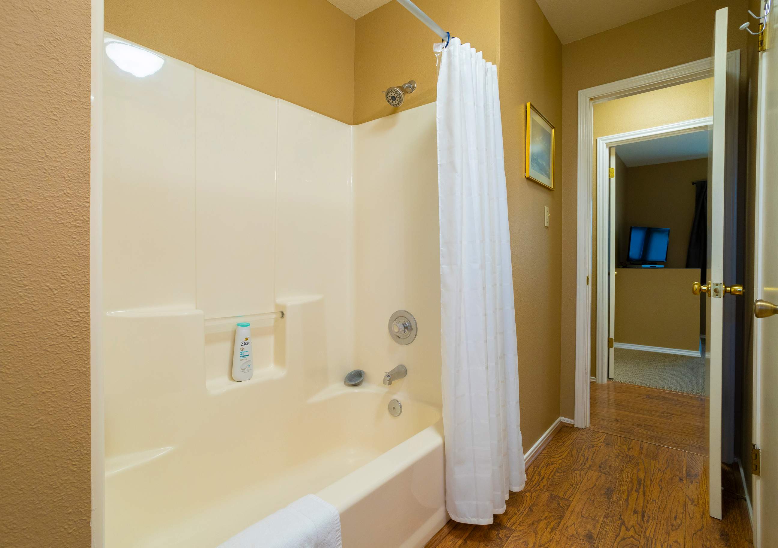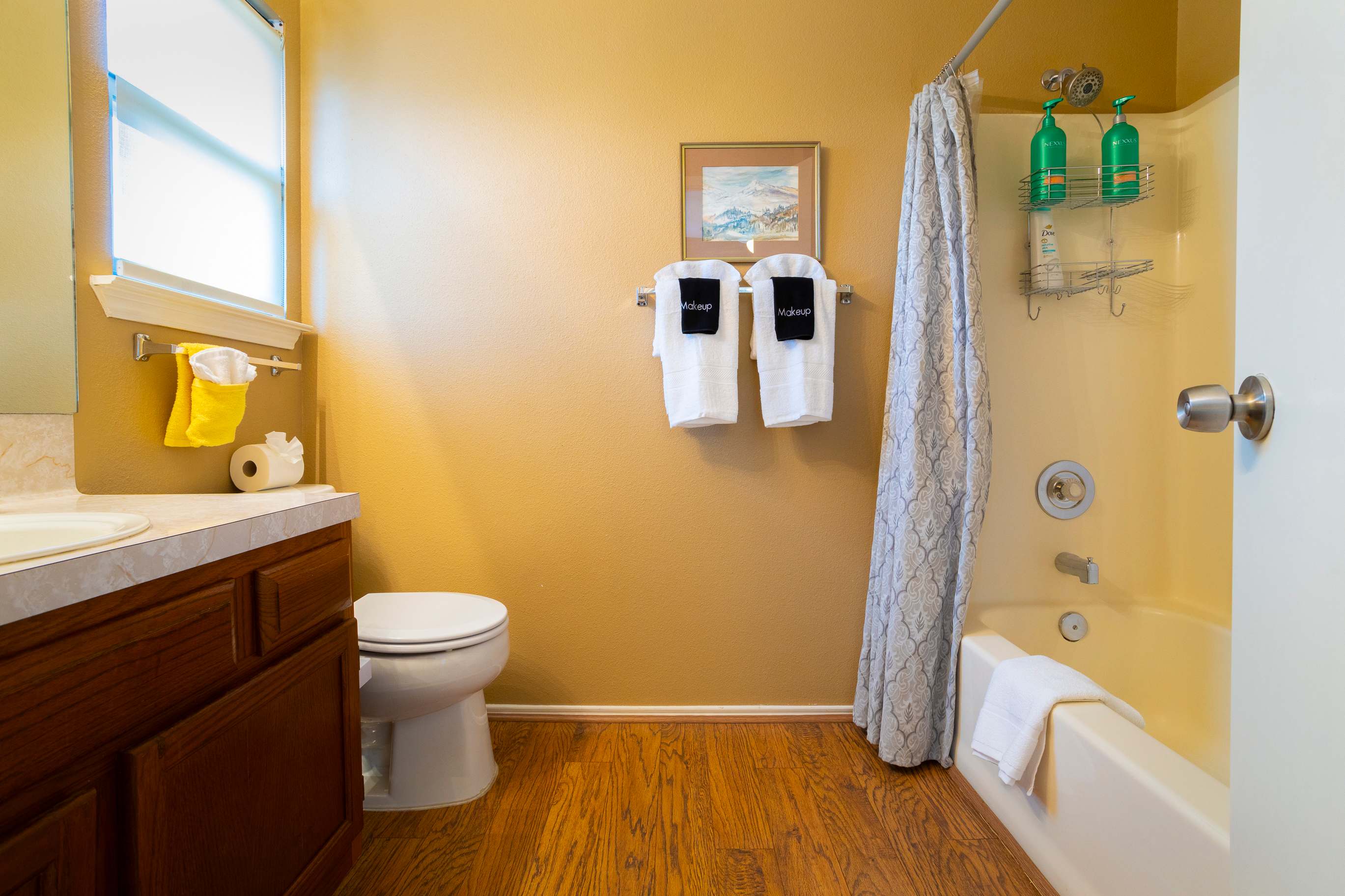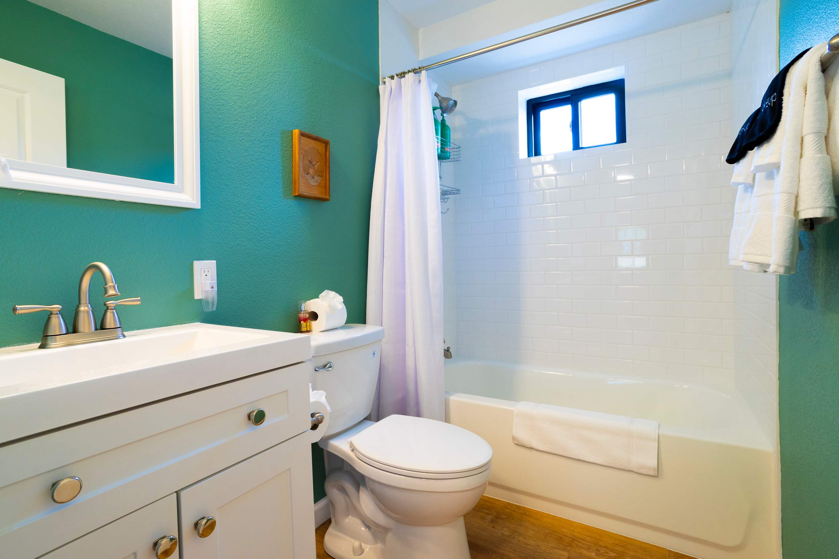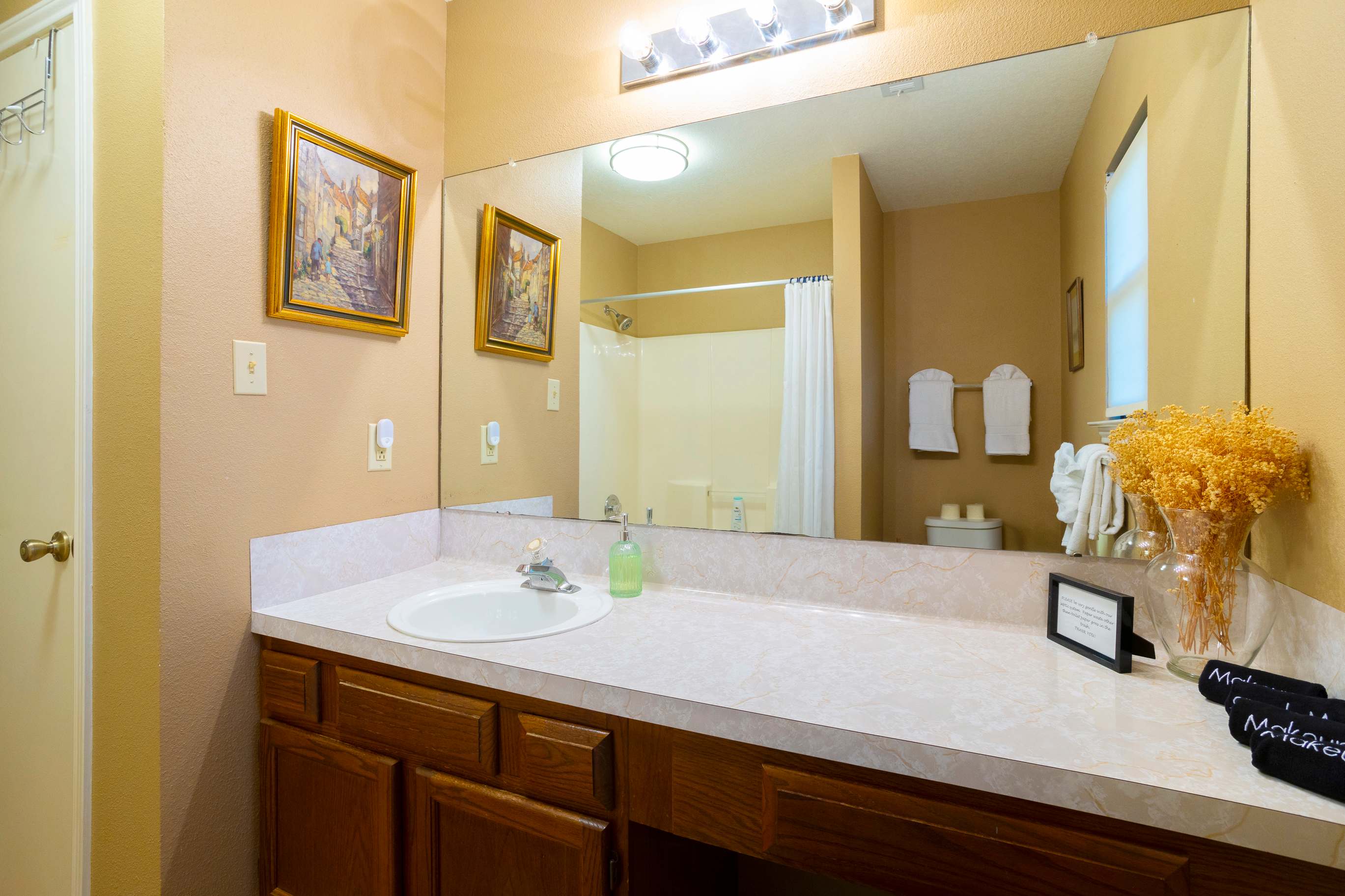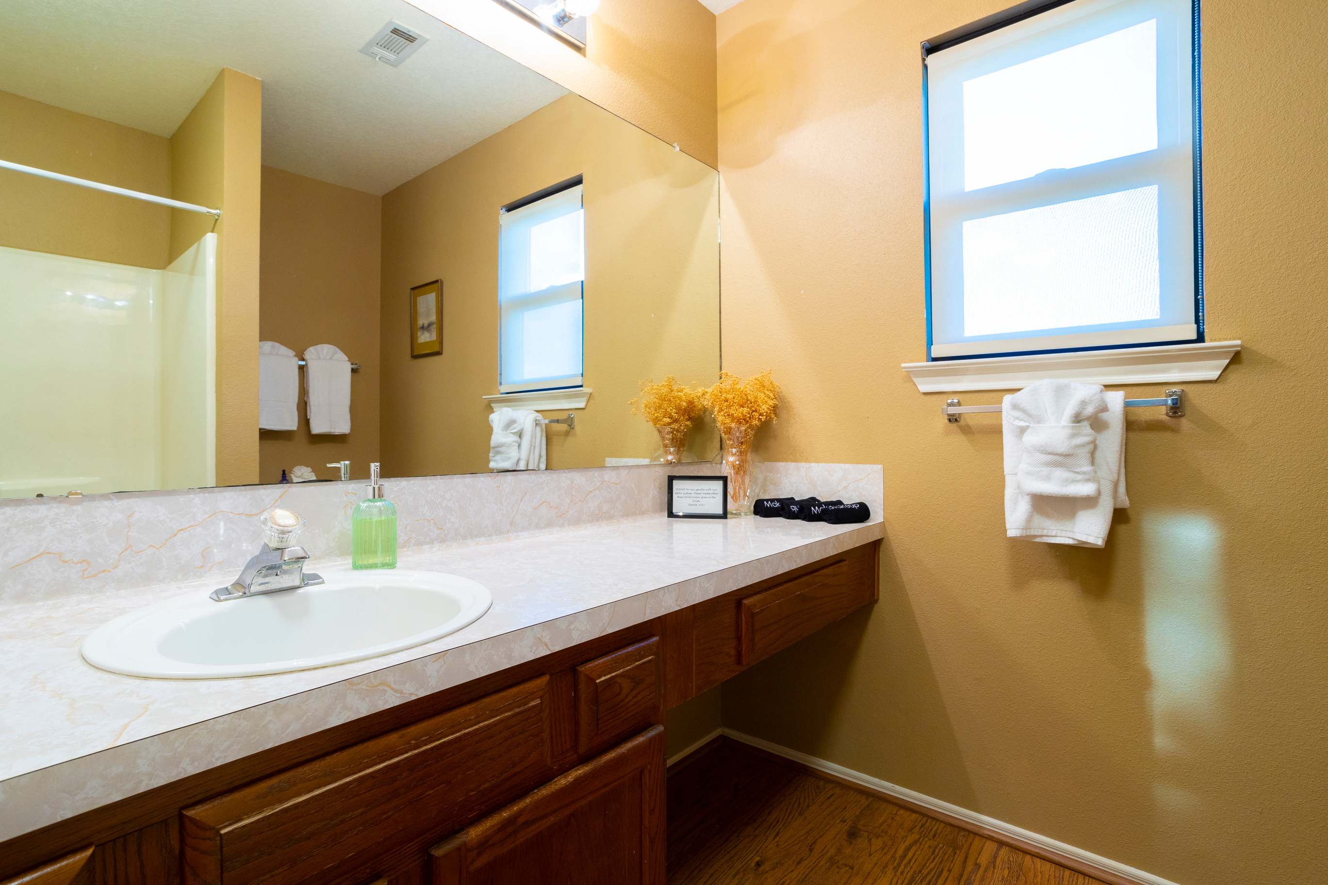 The home also includes 2 additional full guest bathrooms, each with a single vanity and shower/tub combo.