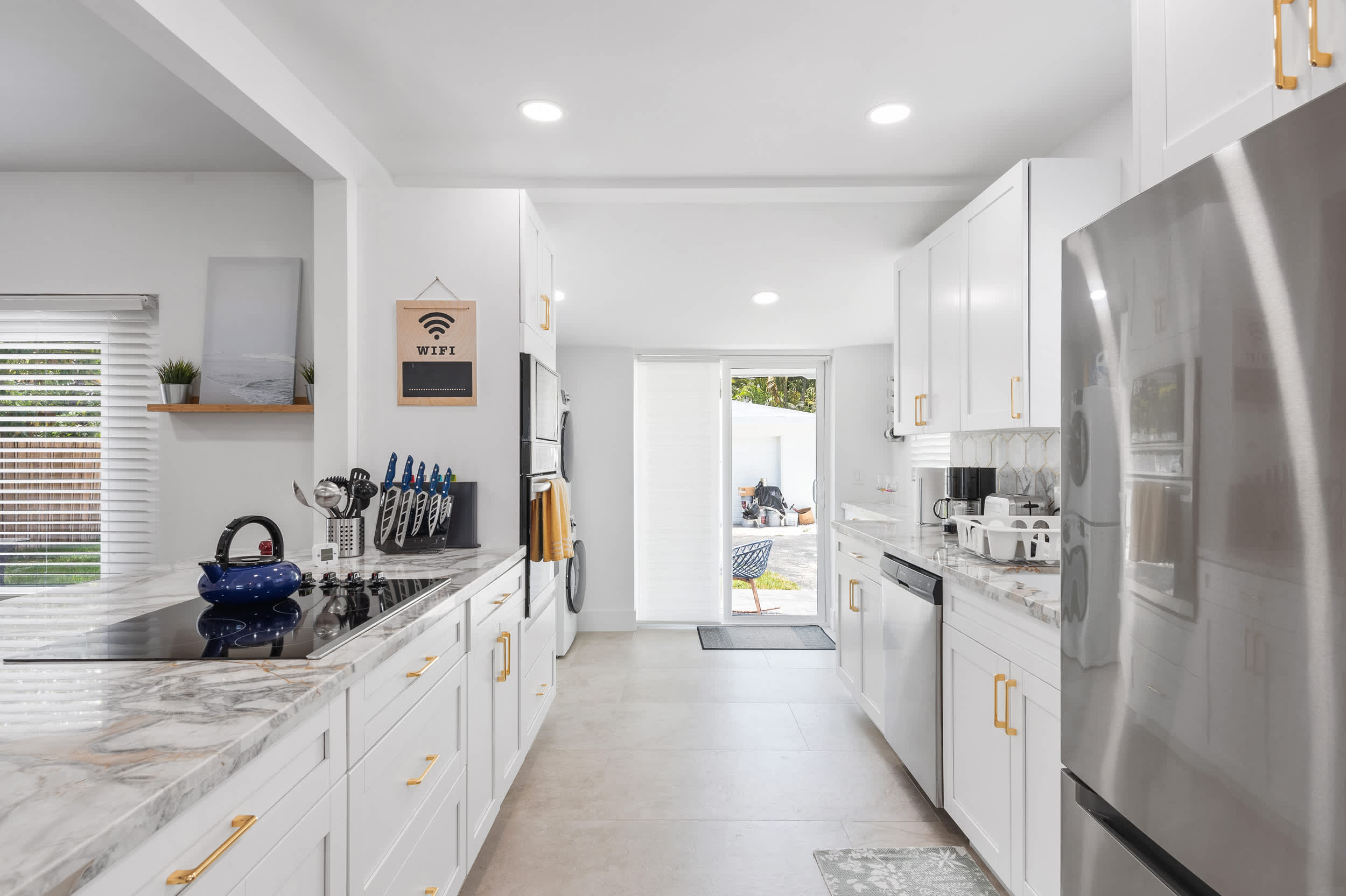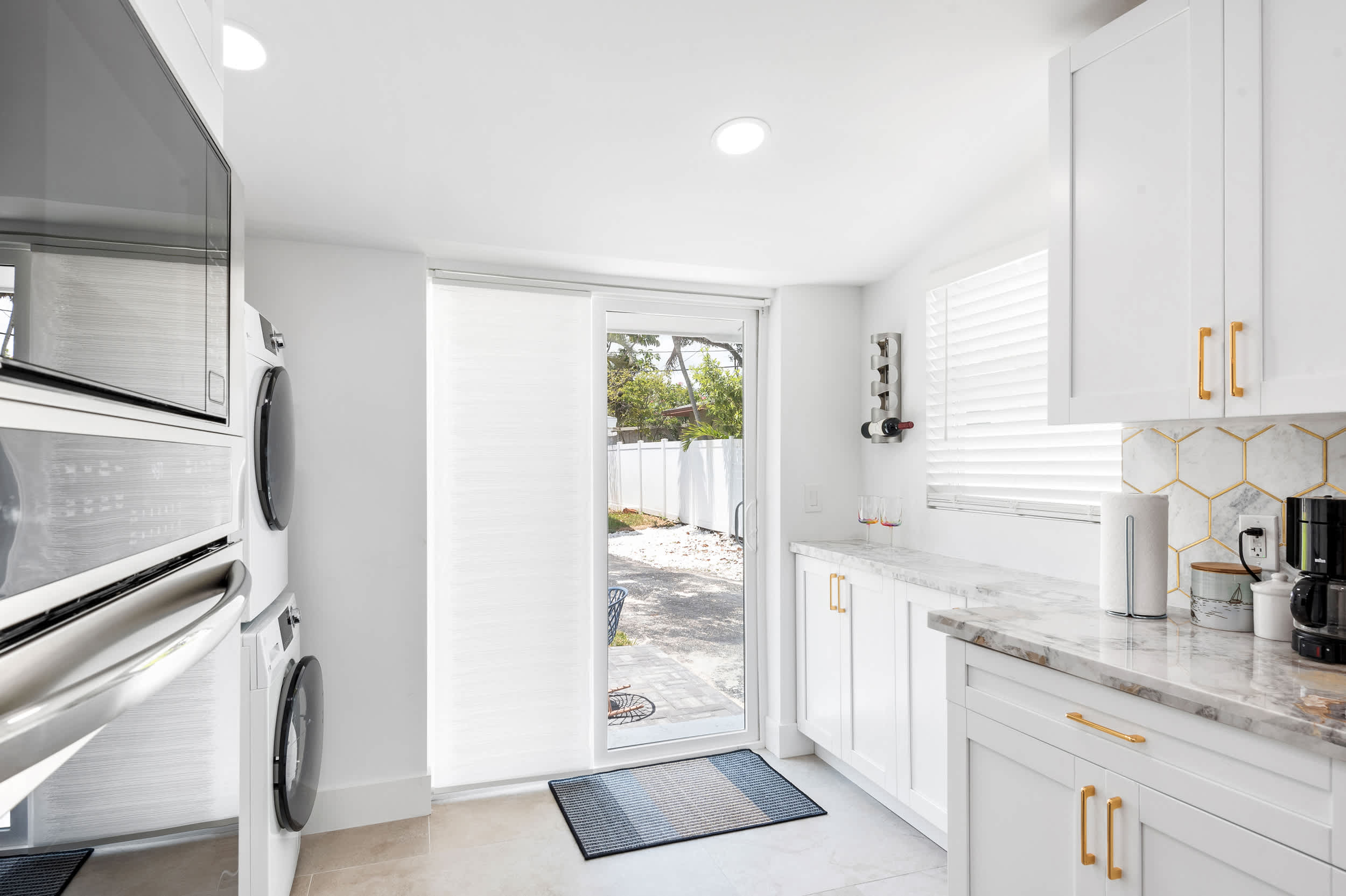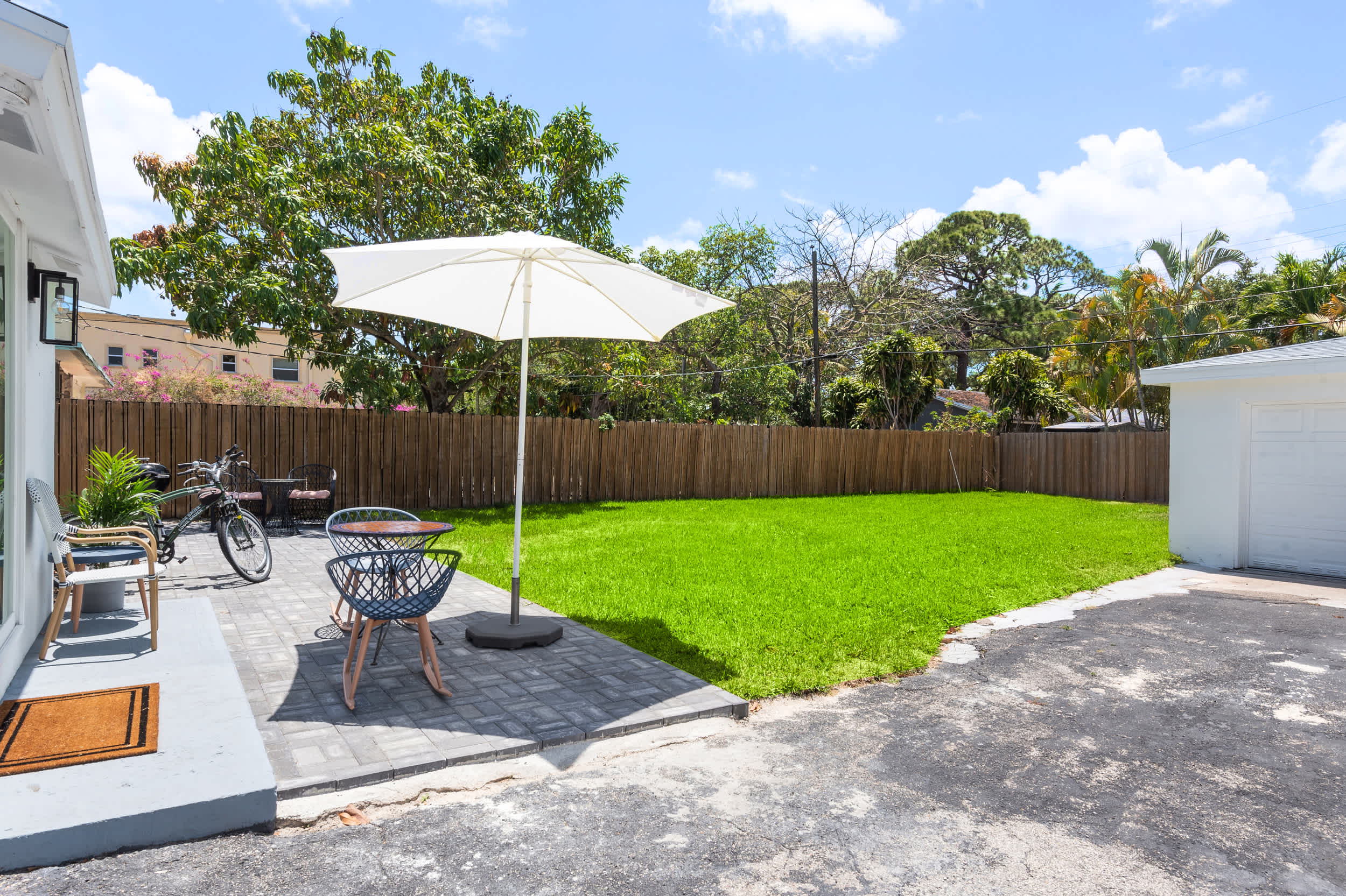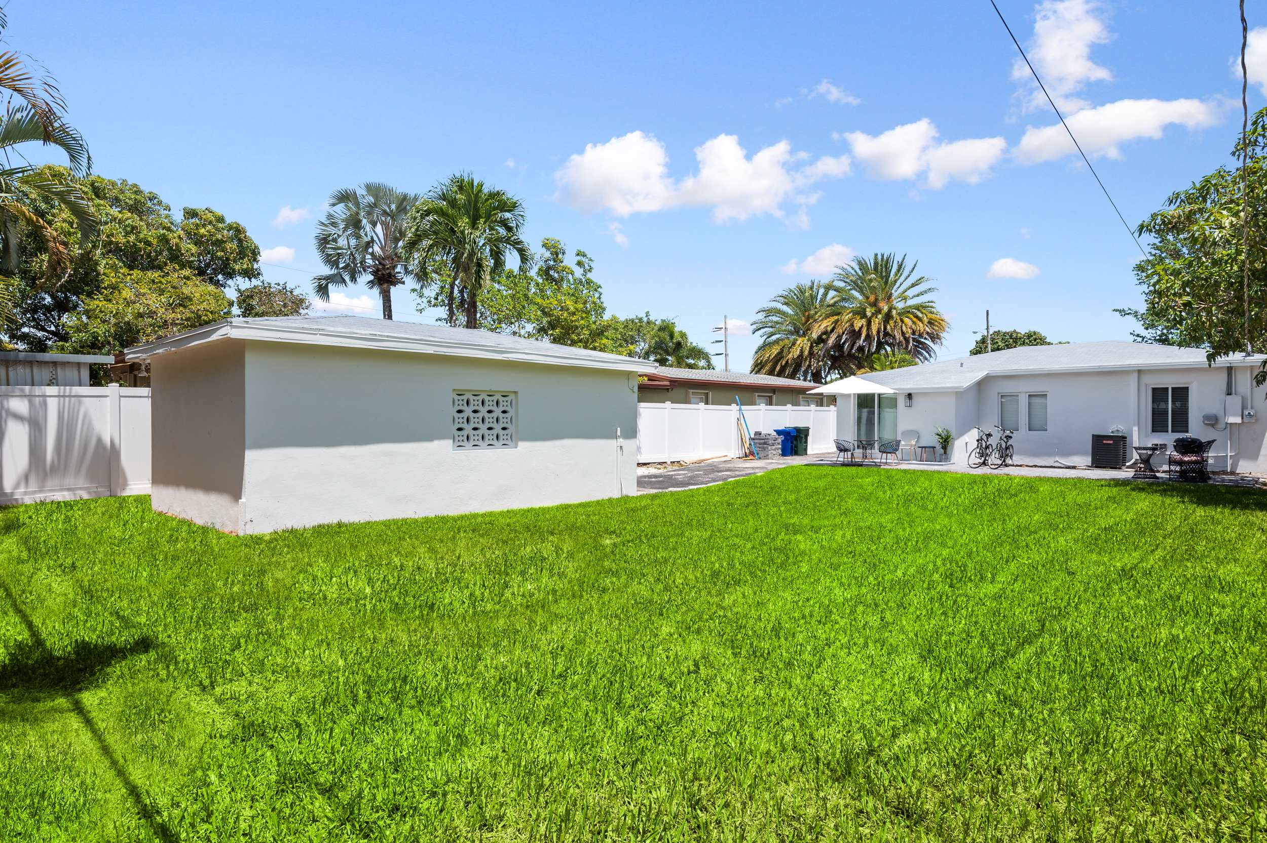 Soak up the abundant sunshine and fresh ocean air on the home’s back patio, dining al fresco at the table or enjoying those first few sips of morning coffee at the café seating for 2 while your furry friends run and play in the grassy yard. Leave the car at home in favor of a breezier transportation option, a pair of bikes whisking you around the neighborhood in style as you set off on the first of many adventures.