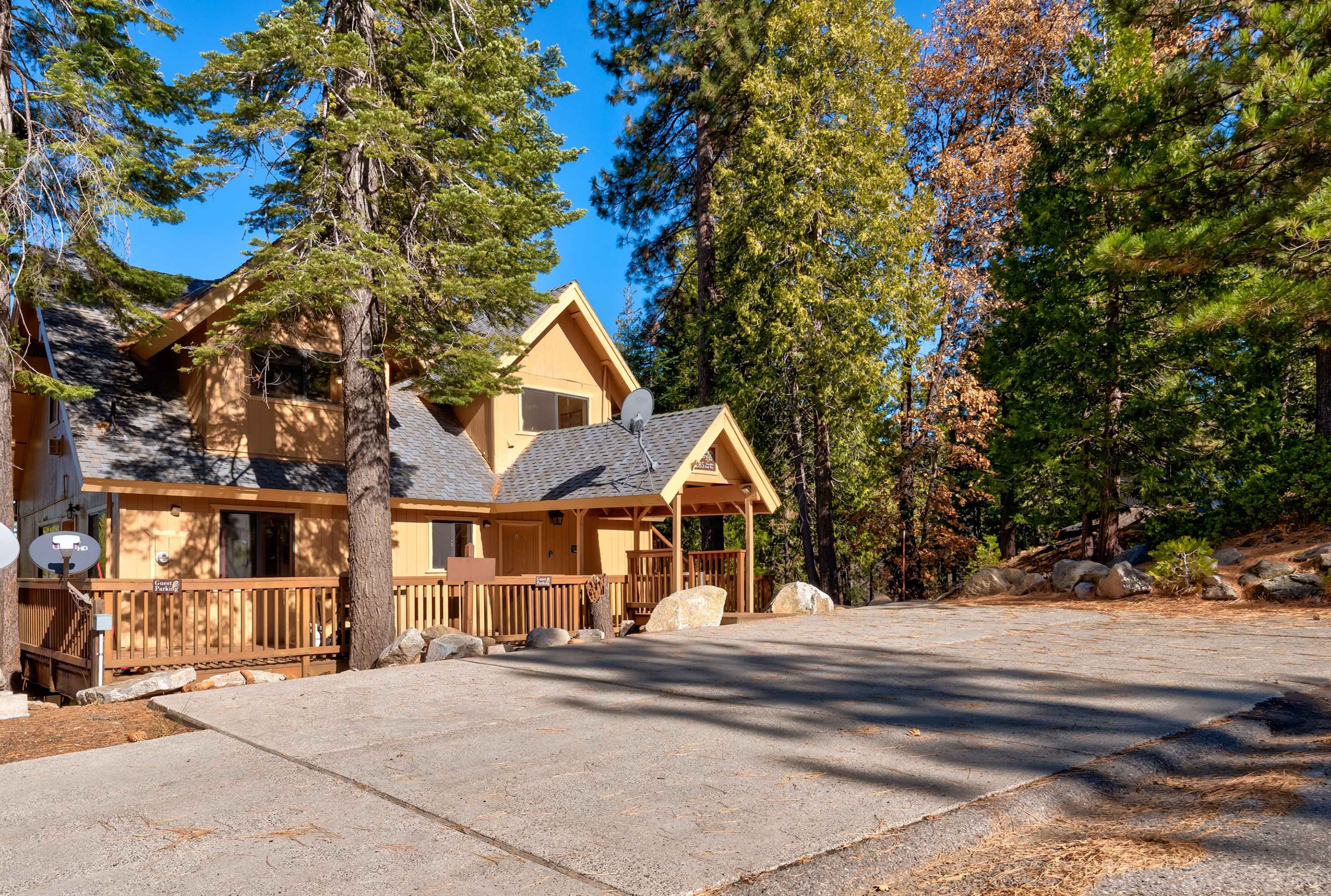Soak up those plentiful California rays from the spacious lower deck, dining on a meal al fresco at the outdoor dining table while breathing in that fresh pine-scented air. The upper deck is the perfect spot for your morning coffee or an afternoon cocktail, admiring the panoramic views of the forested landscape as the breeze carries all your worldly cares away.