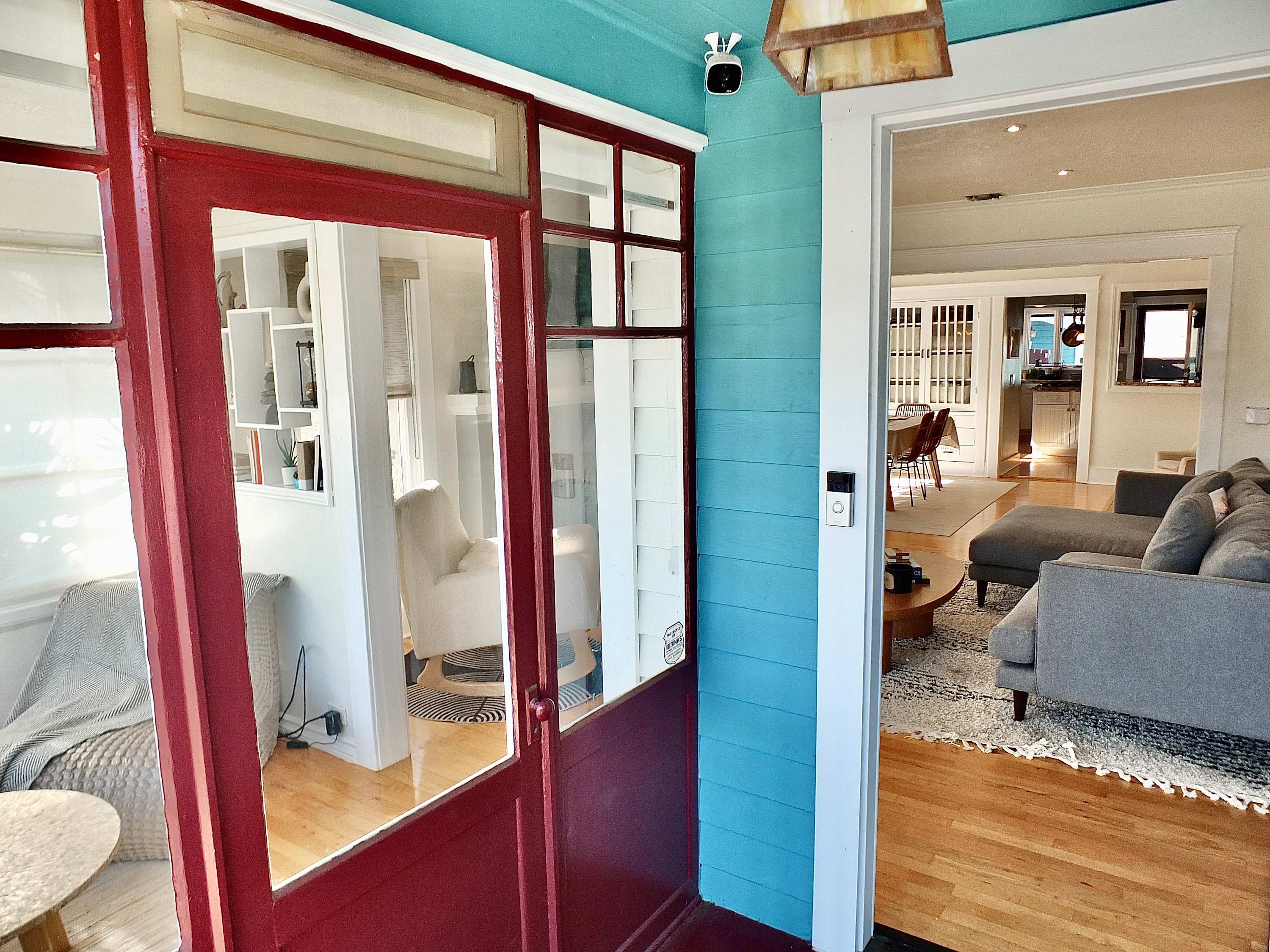 • This home is equipped with three (3) external Ring security cameras. The first is located on the doorbell, actively monitoring the front entrance and street. The second is located on the front door, actively monitoring the front entrance and street. The third is located on the garage, actively monitoring the driveway.