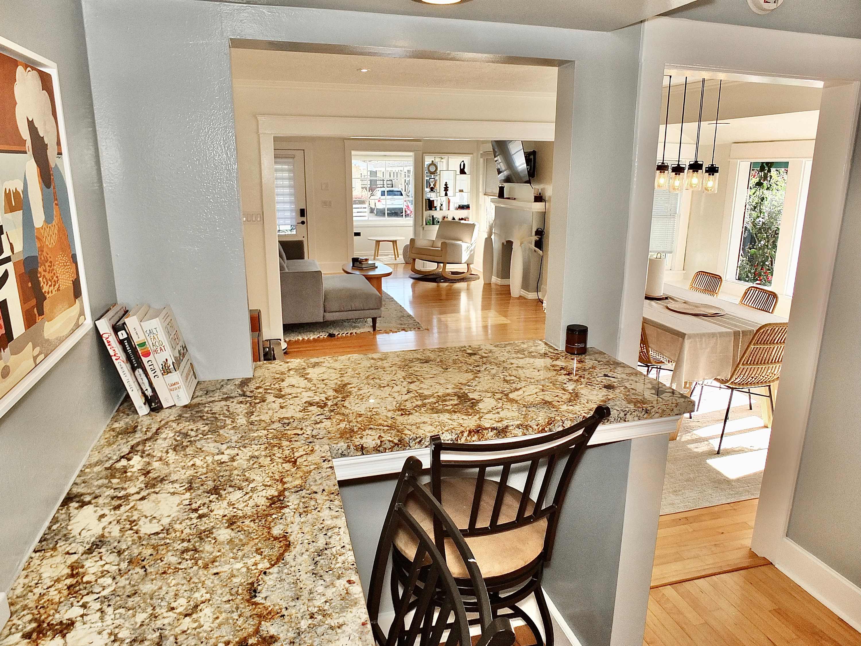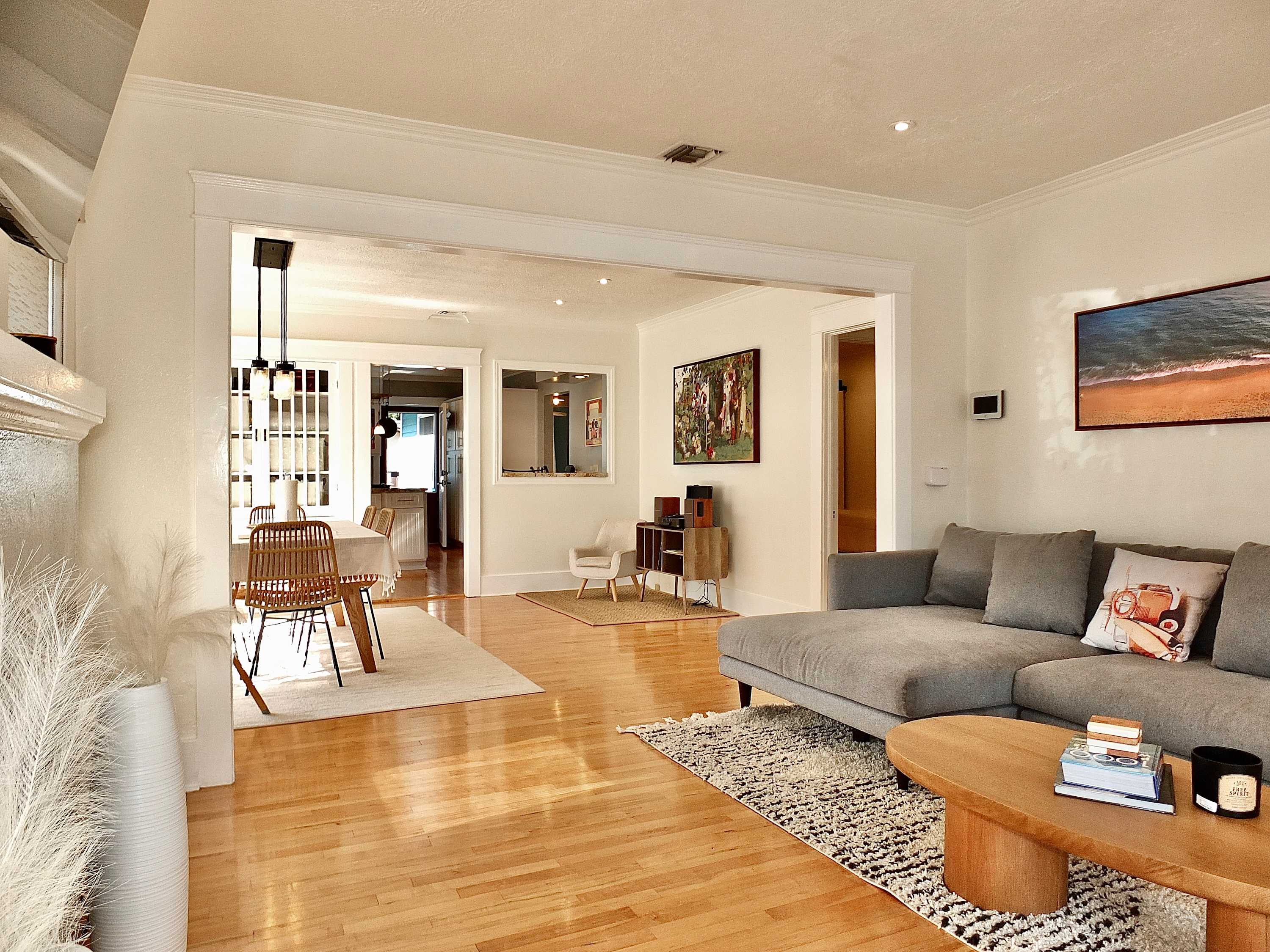 Located in a quiet yet vibrant neighborhood, a wide variety of activities are on-demand and located within walking distance of your front door, as are cafés, restaurants, shopping, evening bars, and even a farmer’s market to stock up on fresh local ingredients for your evening meal. Retro Row is a 15-minute walk north, a small business district celebrating independence and diversity, filled with vintage boutiques and kitschy wares. If you’re up for a day trip, the famed city of Los Angeles is less than 40 miles north. If you prefer to stay closer to home, pack up your blankets and a picnic lunch and make the 15-minute walk down to the sandy shoreline to enjoy a full day in the endless California sun.