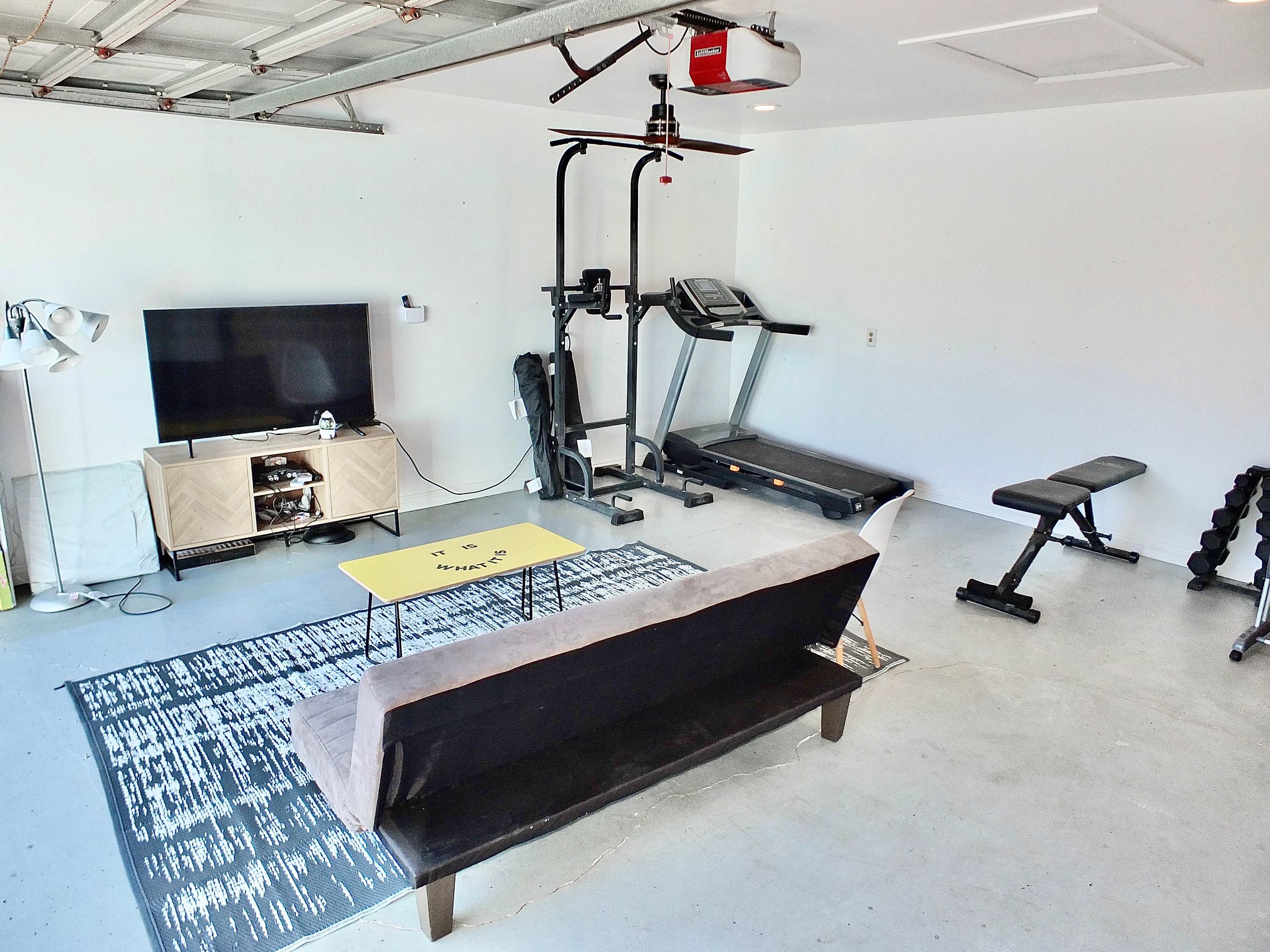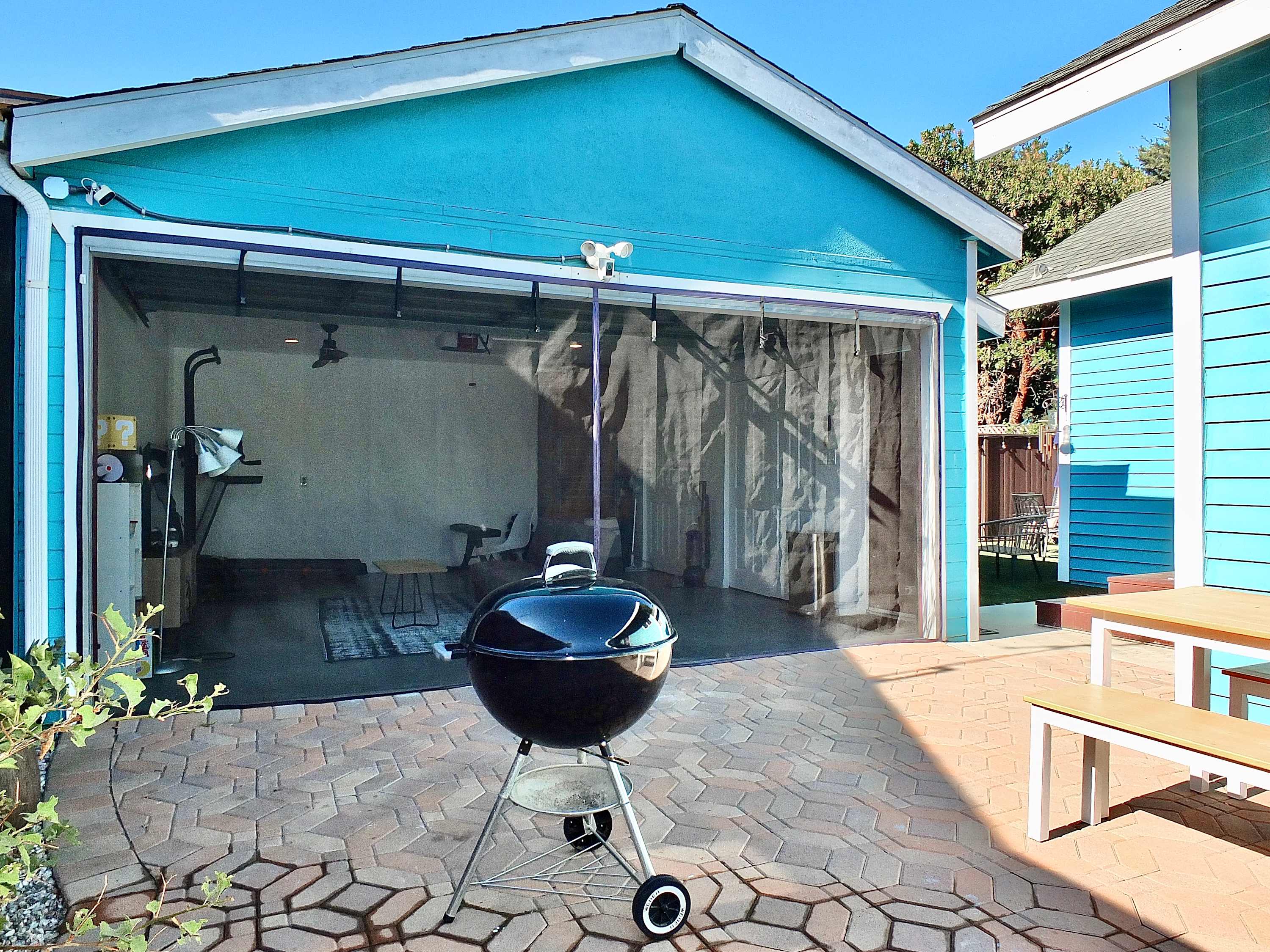 The home’s brightly painted exterior is an early indication of all the fun to come, expertly landscaped with lush native flora. The back yard will be your go-to spot for entertainment and connectivity, reclining on the outdoor sofa with a good book while your furry friends stretch their paws and run about. Grill up a delicious lunch on the charcoal grill, served tableside at the table for 4 offering the option for both sun and shade. Keep up with all your fitness goals in the garage while the kids challenge one another to endless hours of video games.