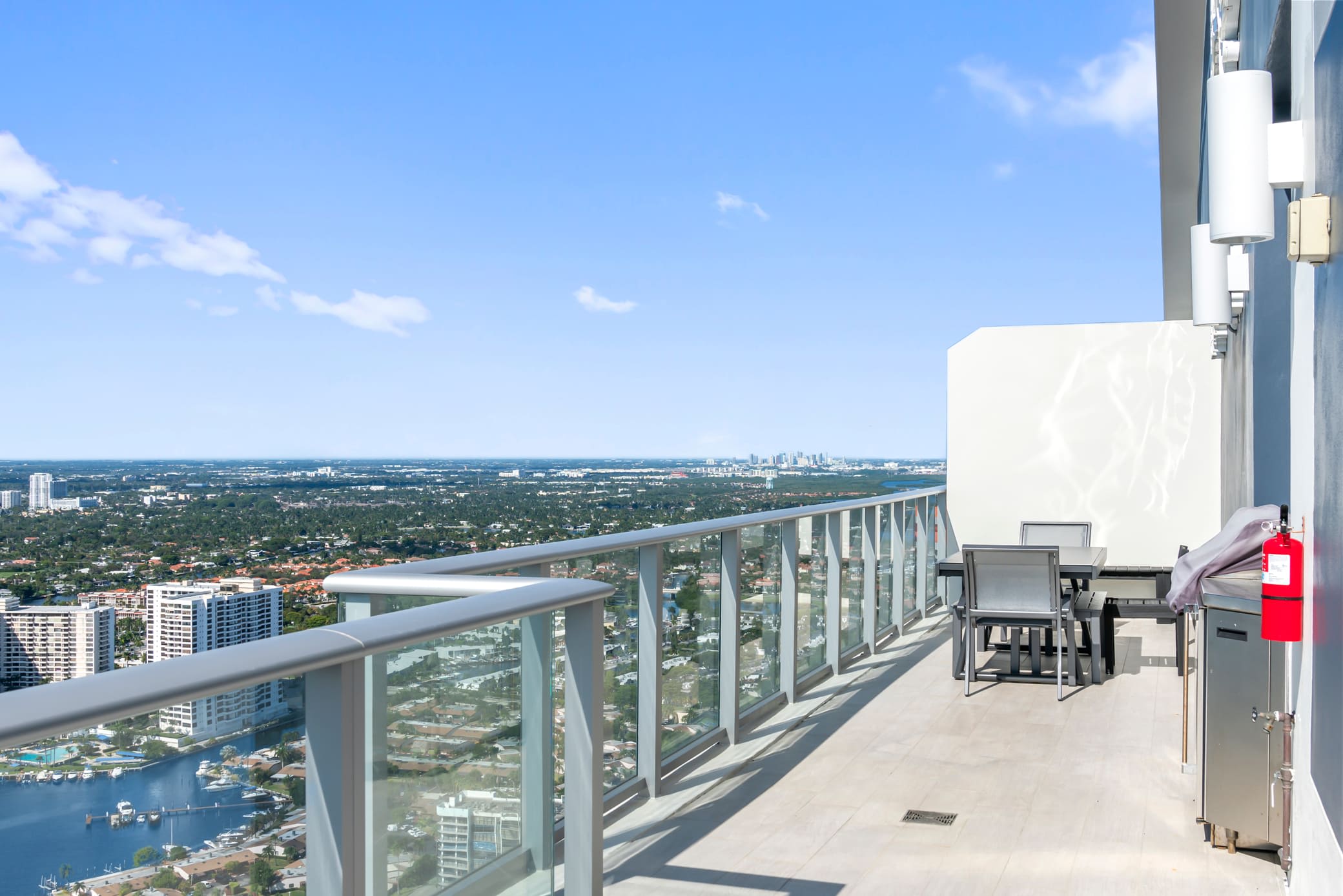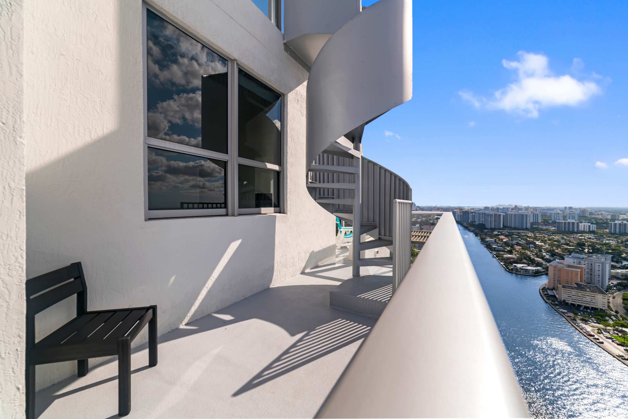 Revel in the panoramic views of the city, ocean, and Intercoastal Waterway from the home’s private, two-story balcony, soaking up the plentiful sunshine while you relax on comfortable chaise lounge seating, sipping on a refreshing afternoon cocktail. Whether enjoying the quiet morning hours with your fresh cup of coffee, dining on a meal al fresco, or soaking tired muscles in the bubbling hot tub, this area will quickly become your favorite feature of the home.