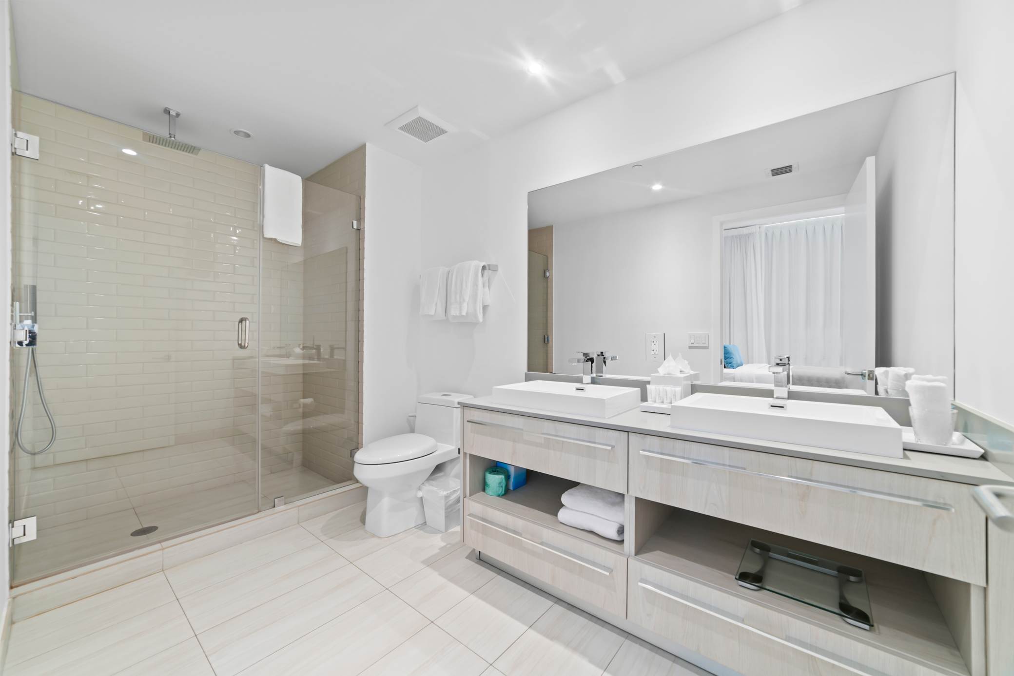 - Wide clearance to shower and toilet
