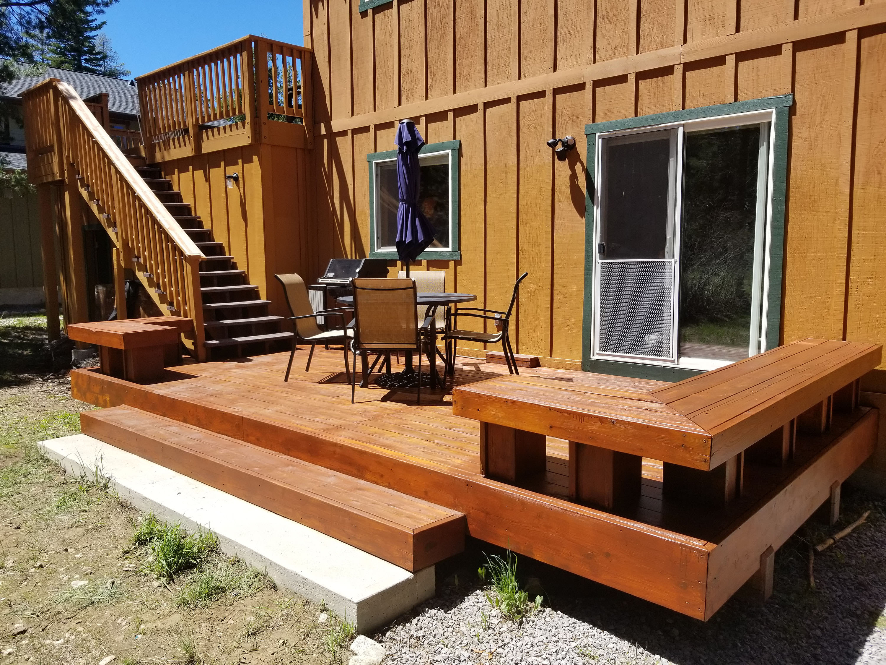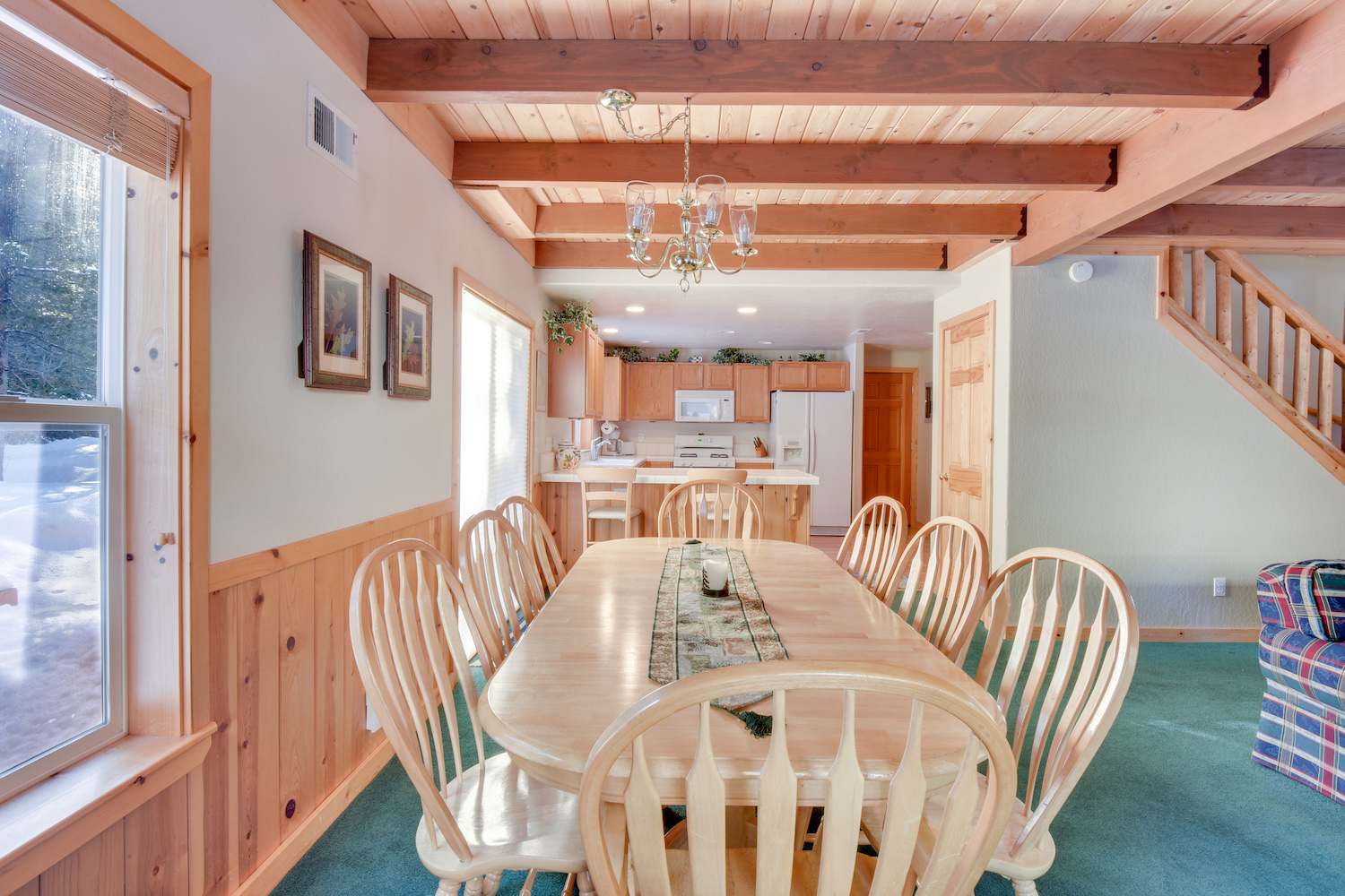 A fully equipped kitchen is perfect for homemade meals. Seating is available at the built-in breakfast bar alongside the dining table with 8 seats. A BBQ is available outside on the lower deck for summer day grill. A patio table and chairs are clad nearby - perfect for dining alfresco or enjoying a cold beverage while taking in the lush forest view Tahoma has to offer.