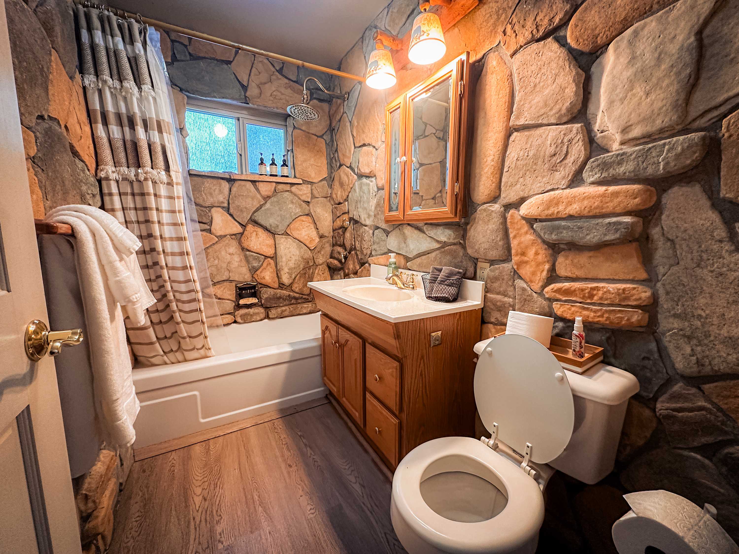 Easy to find with the instructions. Place is clean and peaceful. Nice and cute wood bear at the front of the house. We really like the kitchen, it is well-equipped. If you want to cook, you can drive 3mins to the nearest market to buy ingredients. Rooms are clean and quiet, the heater is efficient. But be attention about that there is only one full bathroom can be used to take shower at downstair. Also each time, the hot water is only enough for two people to shower. The next person needs to wait at least two hours for enough hot water, so shower times need to be planned accordingly.Anonymous - Posted: 3/6/2025