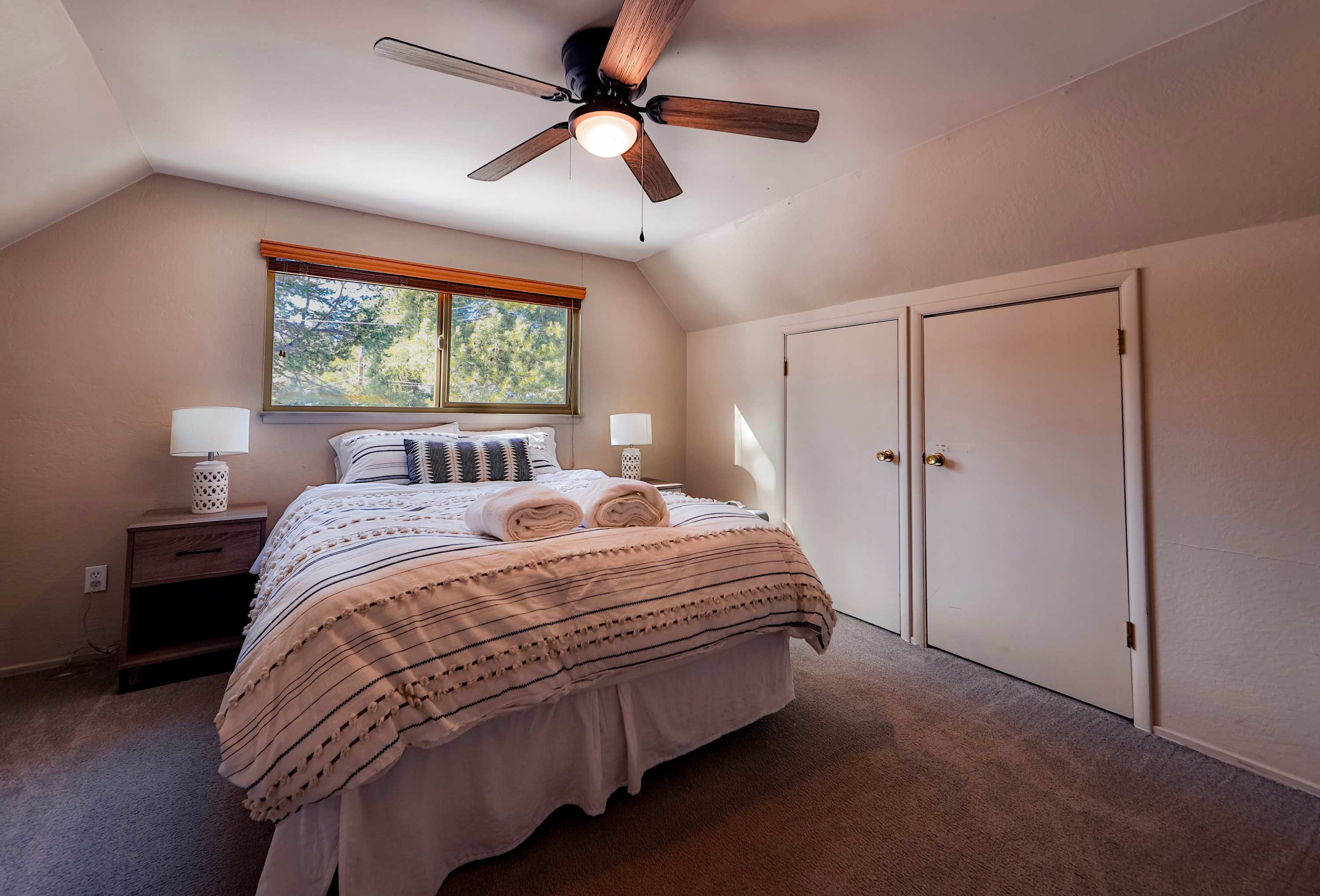 This cabin was perfect for our trip. It gave us all room to spread out and each have our own space. It was me, my husband and our two college age daughters. The beds were very clean and comfy and the cabin had everything we needed. It’s only about 15-20 mins to down town South Lake Tahoe. Also it was near plenty of shops, restaurants and stores. There is no AC but it was only 80 during the day and 57 at night so we were able to open windows and turn on fans to cool down. The hot water doesn’t last long for showers due to the amazing rainfall shower head so we just tried to spread showers out and time them well. It really wasn’t an issue since we were hot anyhow. We would definitely stay here again!Anonymous - Posted: 7/22/2025