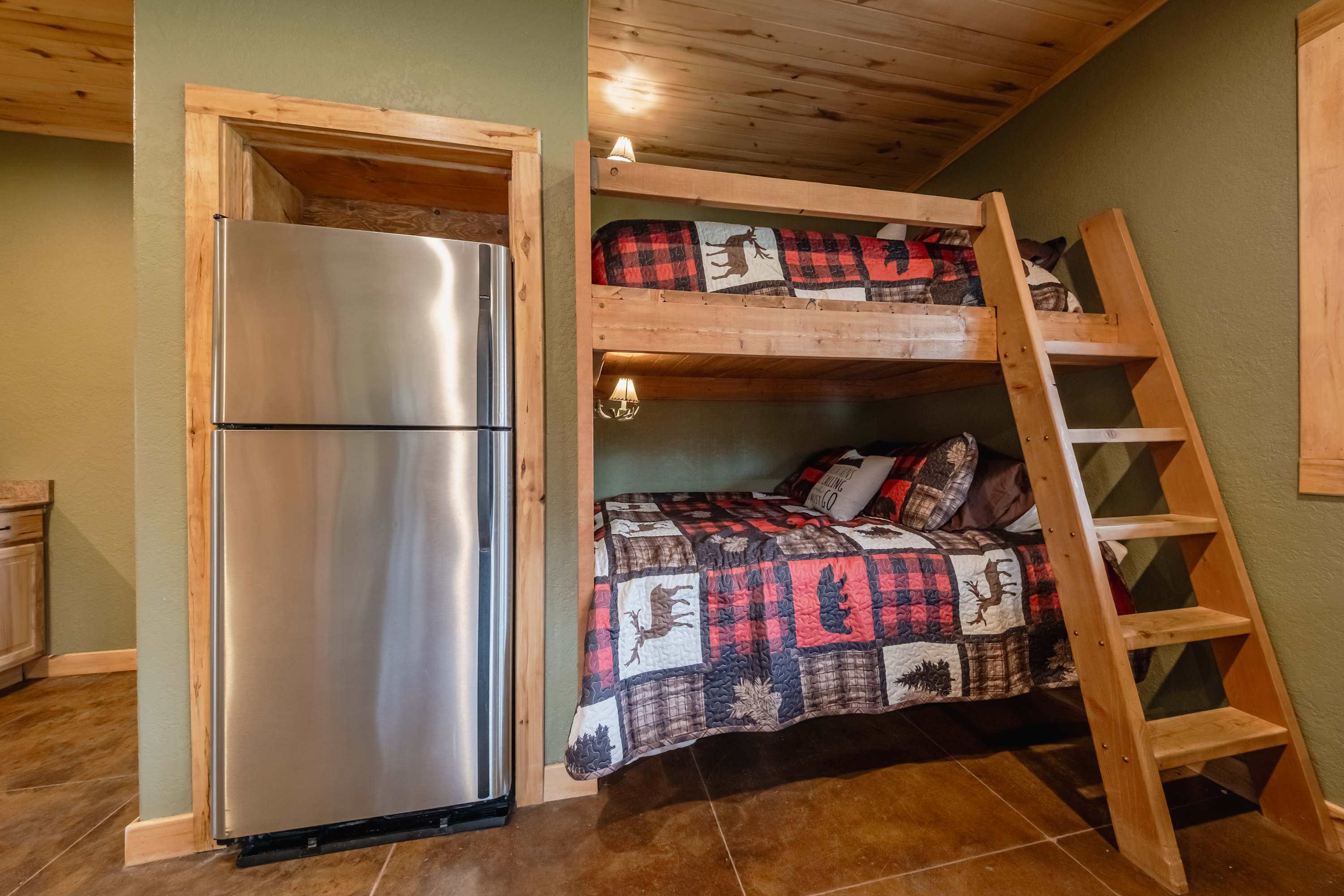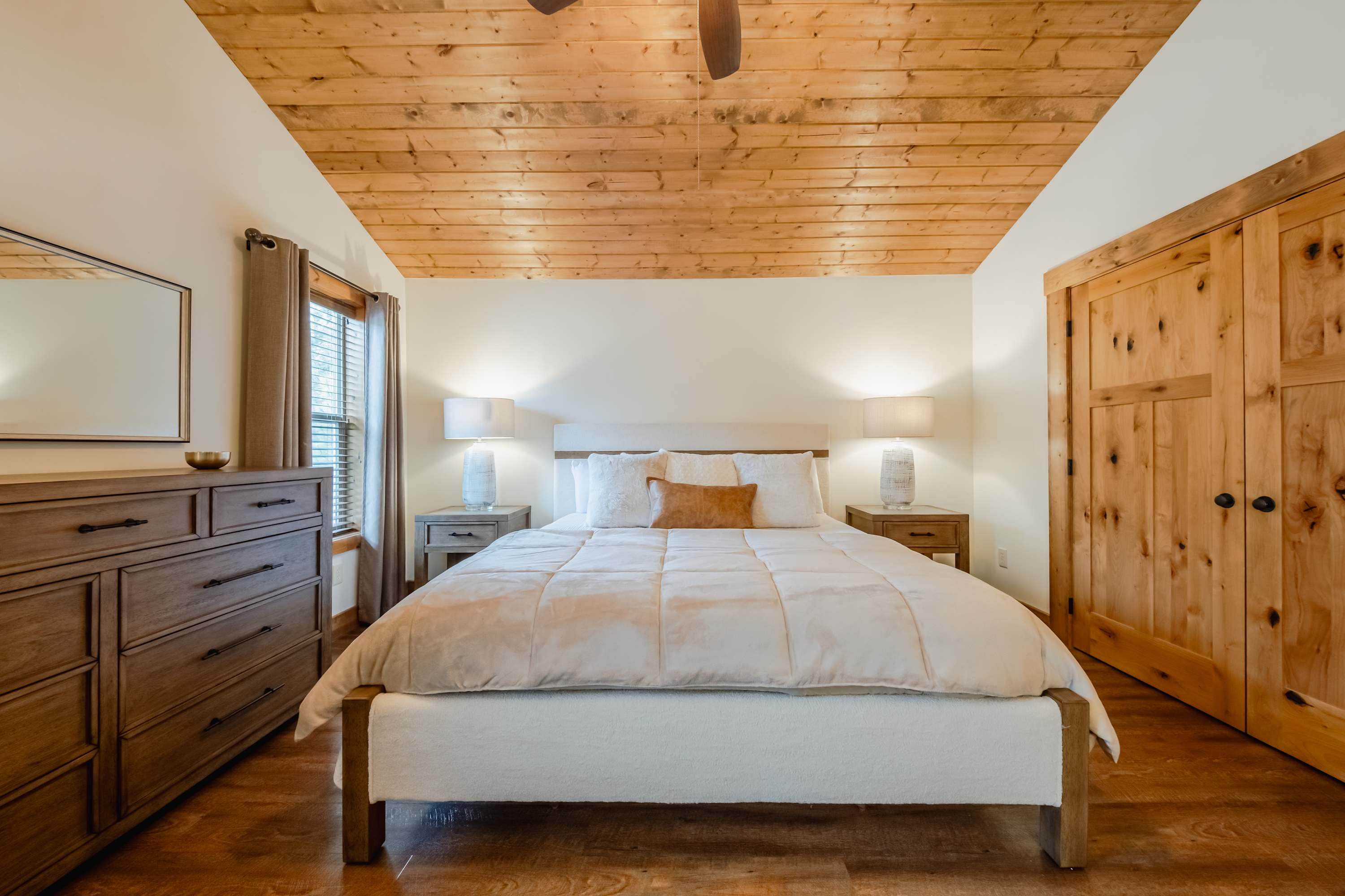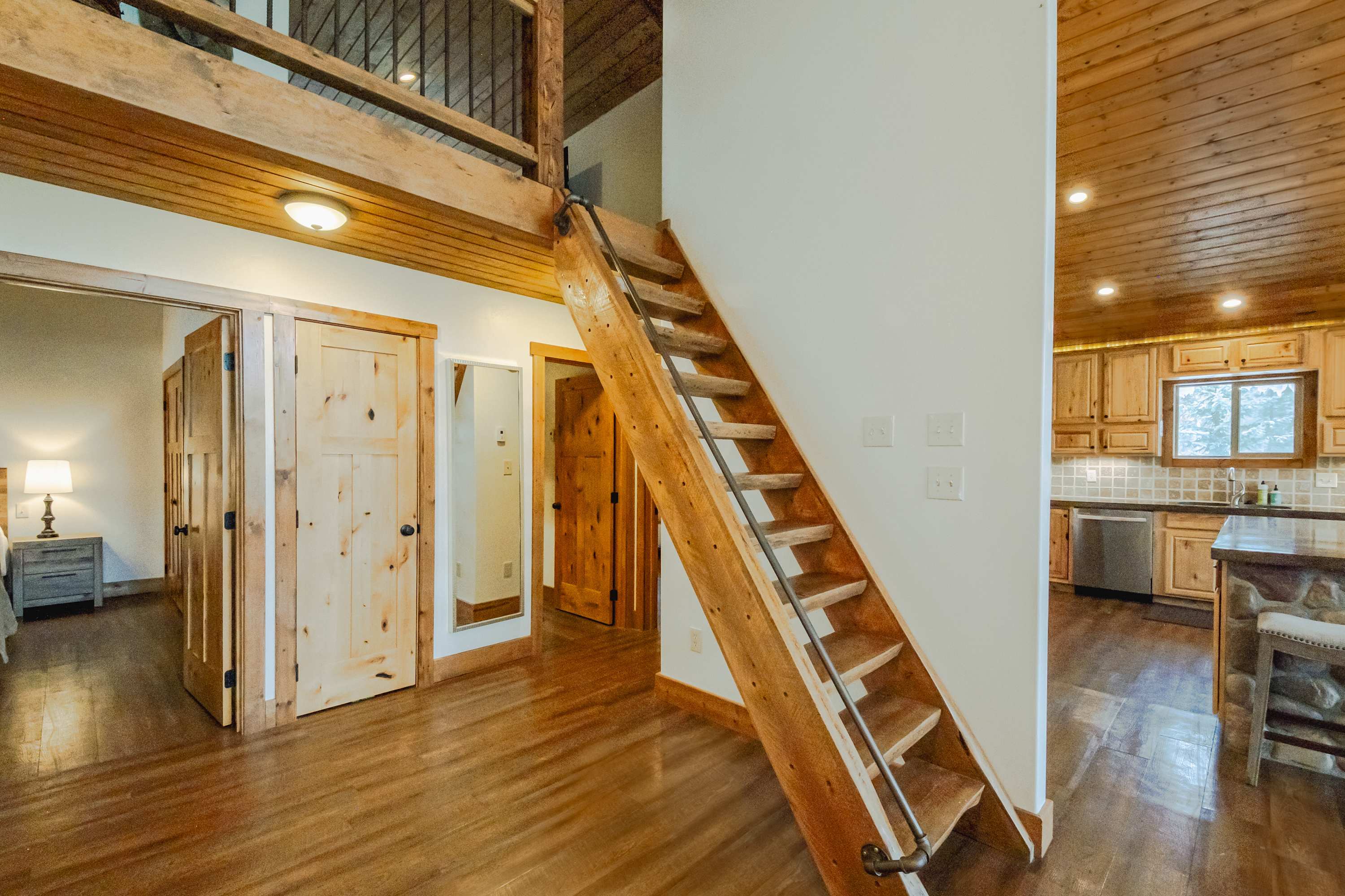 This home comfortably sleeps 8 guests between 4 private bedrooms, a queen-over-queen bunk bed in the downstairs living room, and a twin size bed in the loft.