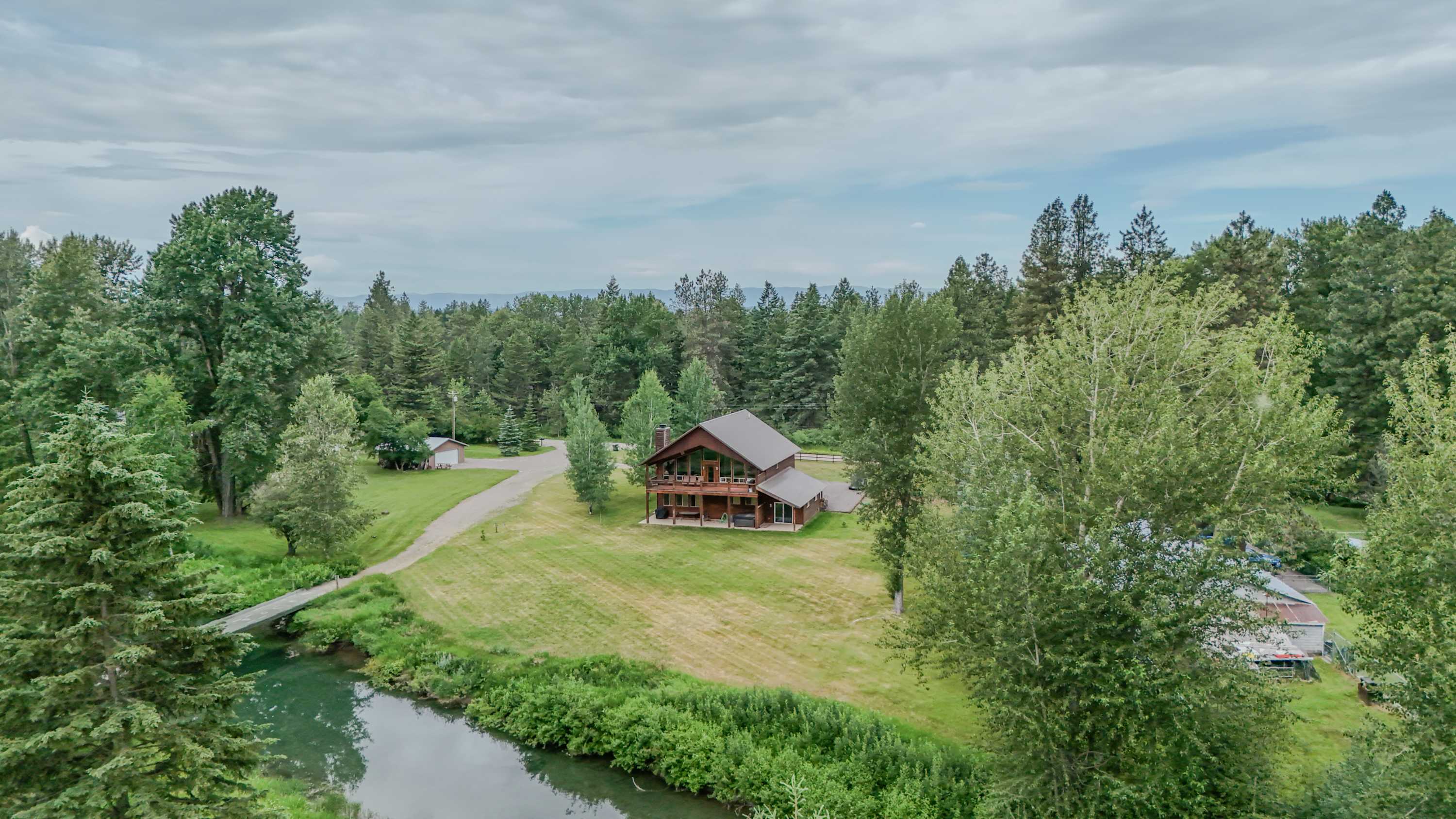 Set on a large plot of land, peace and privacy are high on the list of desirable features you’ll find here, offering plenty of space for family style yard games and taking quiet strolls along the tree-lined perimeter. If it’s sunshine and fresh air you’re after, you’ll find it up on the picturesque deck or on the lower, shaded patio, sipping on your favorite cocktail or dining on a meal al fresco fresh from the grill. Brew up your morning coffee and stroll about 150 yards down to the shores of the Flathead River, its tranquil sights and sounds carrying all your cares away with the current.