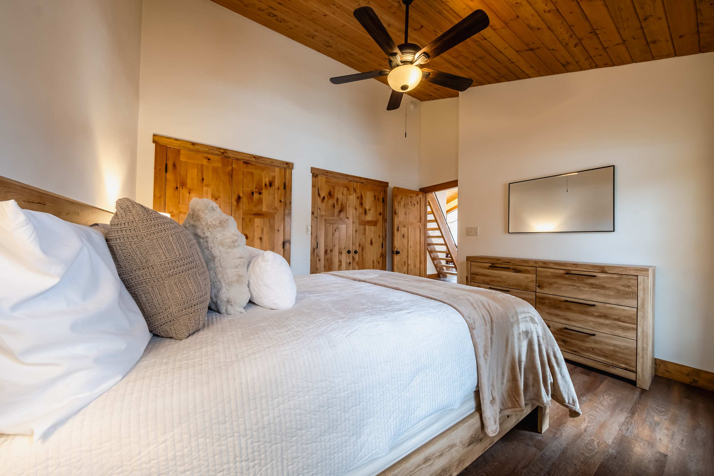 Bedroom #3 includes a queen size bed and smart TV.